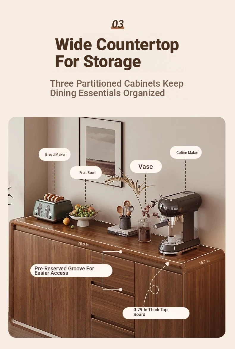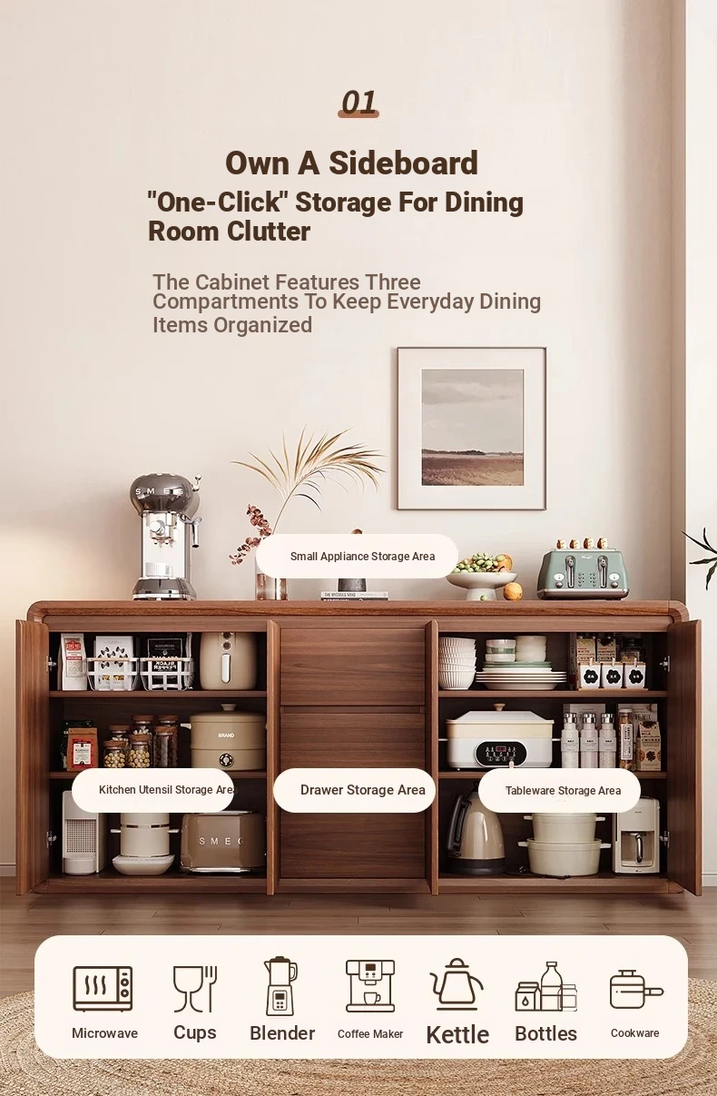 Stylish Solid Wood Sideboard Cabinet - Wall-Mounted Storage Unit for Living Room, Ideal for Tea and Beverage Organization, Perfect Home Storage Solution, Compact Design for Efficient Space Utilization