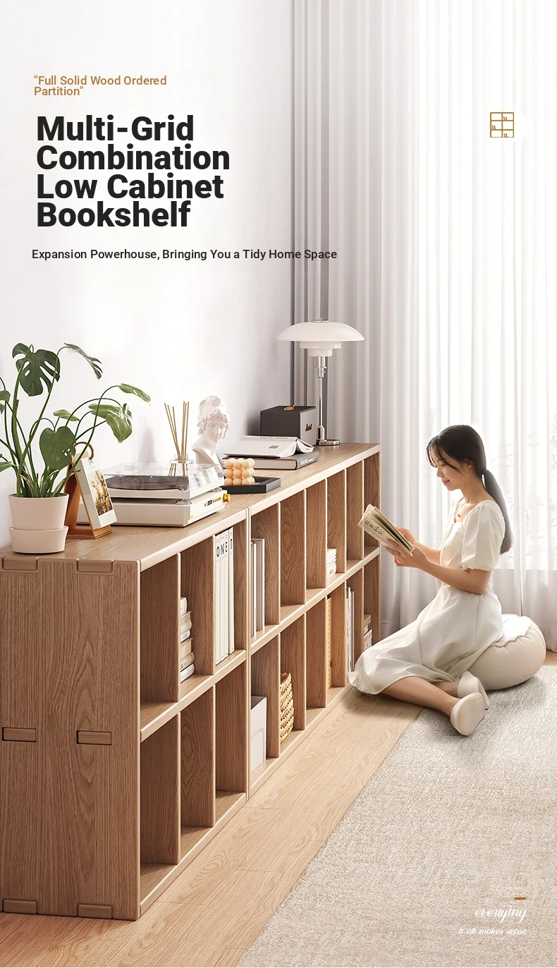 Stylish Solid Wood Storage Cabinet - Versatile Nine-Grid Bookshelf & Display Unit for Home or Student Use - Perfect for Organizing Your Space!