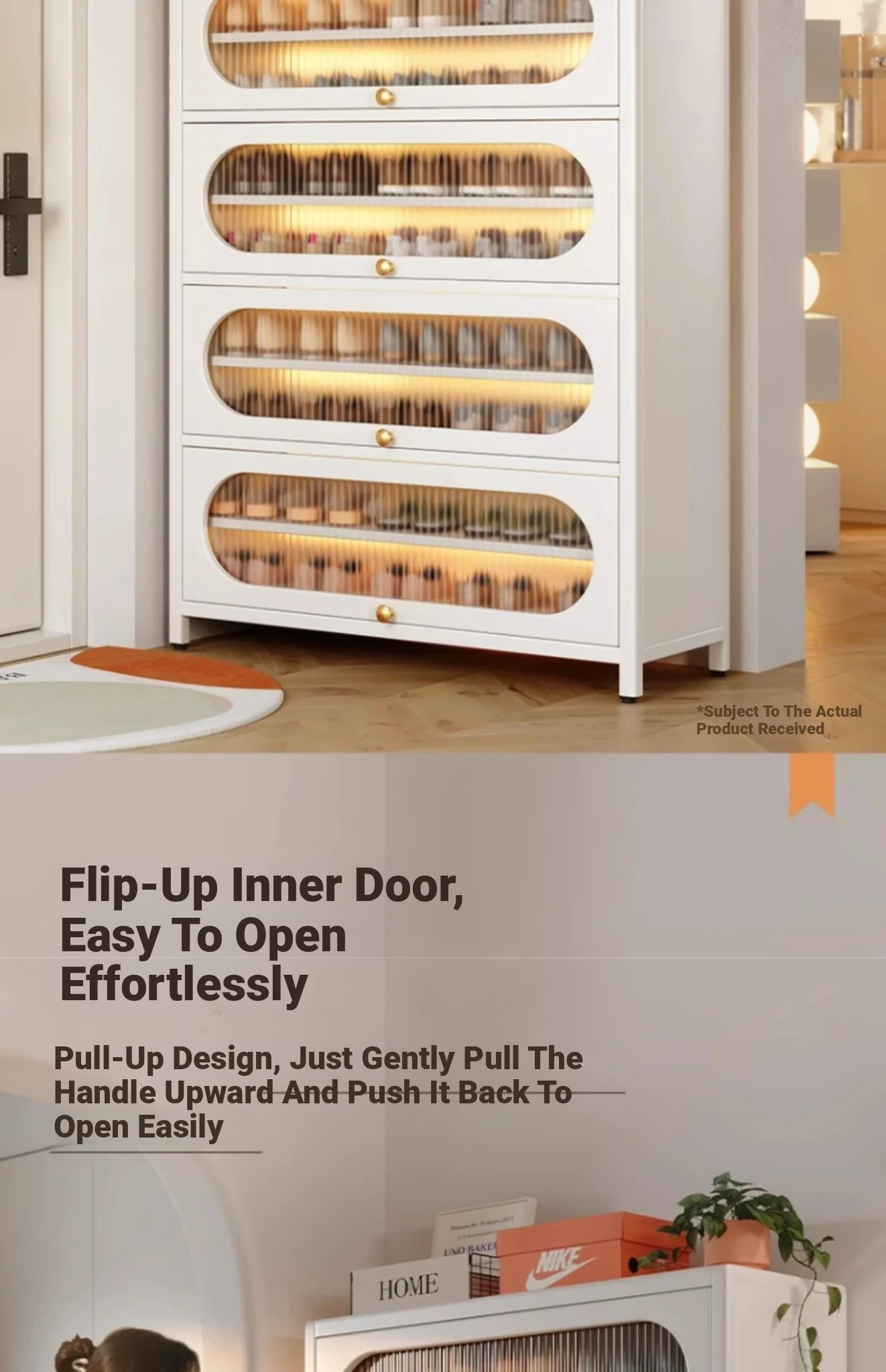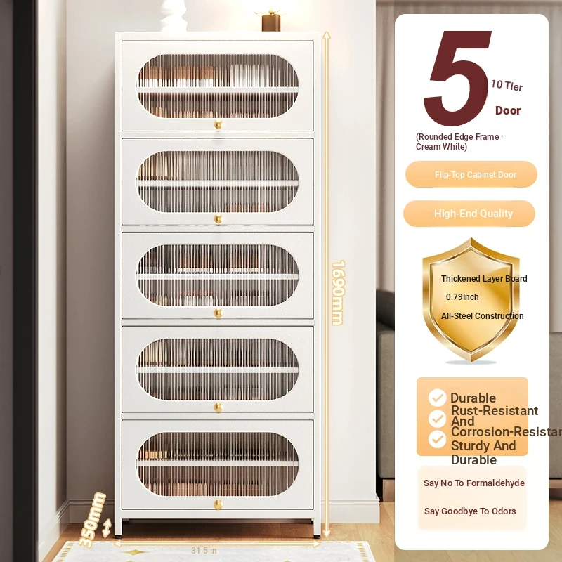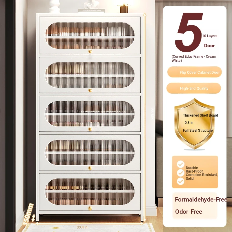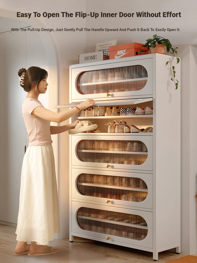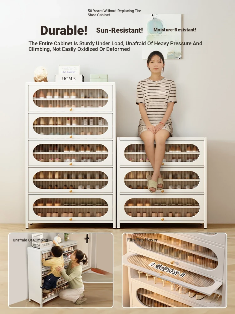 Thickened Steel Shoe Cabinet for Home - Wall-Mounted Entryway Storage Organizer with Dustproof Design and Flip-Top Lid for Shoe Storage