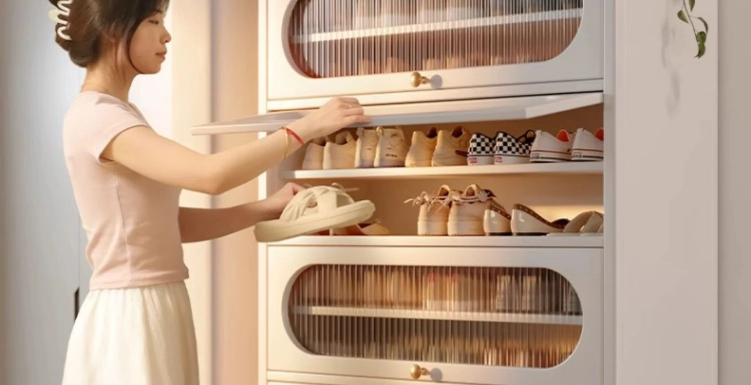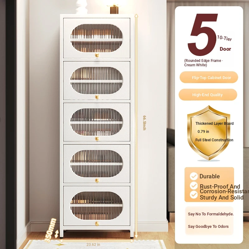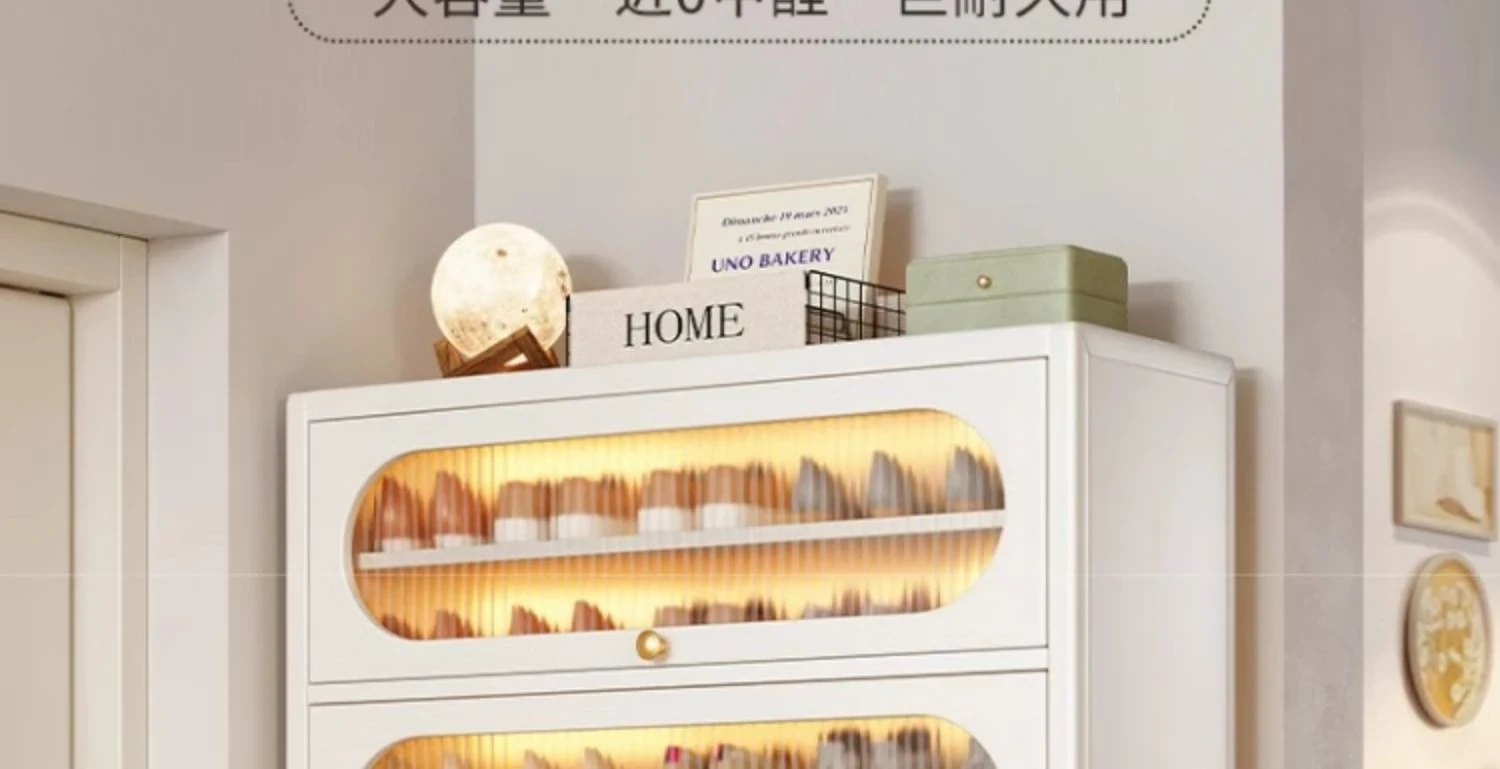 Thickened Steel Shoe Cabinet for Home - Wall-Mounted Entryway Storage Organizer with Dustproof Design and Flip-Top Lid for Shoe Storage