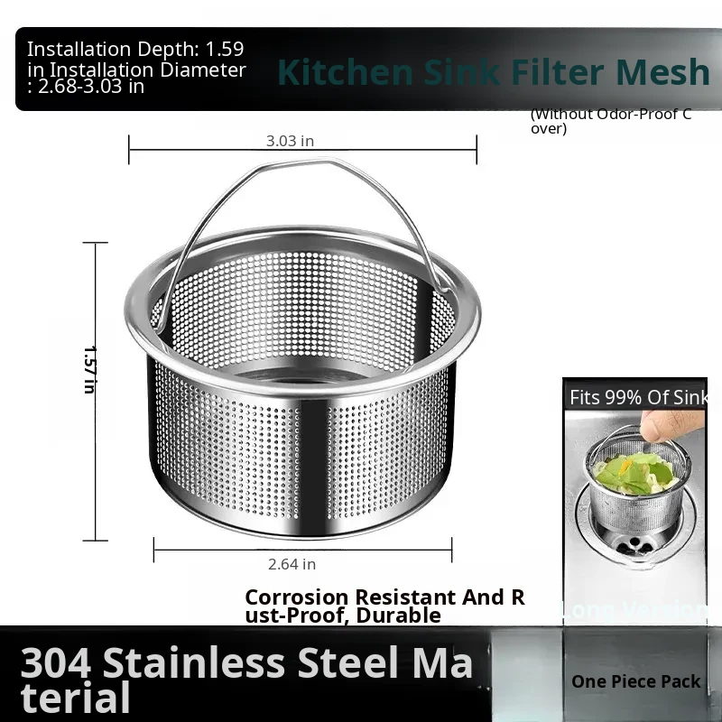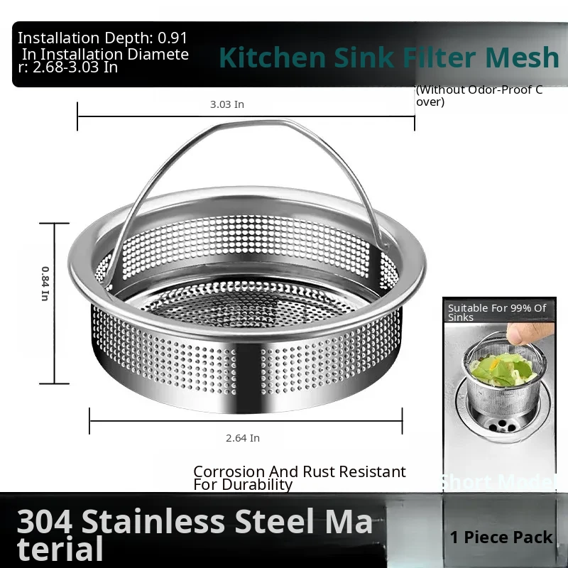 [Embedded Design] Short Style⭐304 Stainless Steel Sink Filter