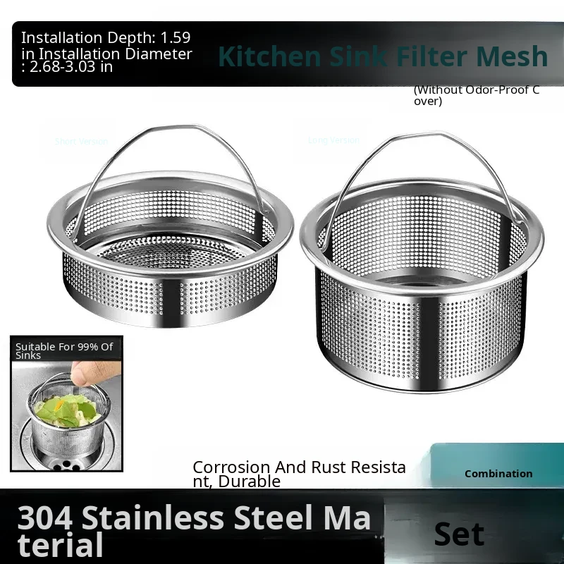 [Short + Long] Silver Sink Filter 304 Stainless Steel