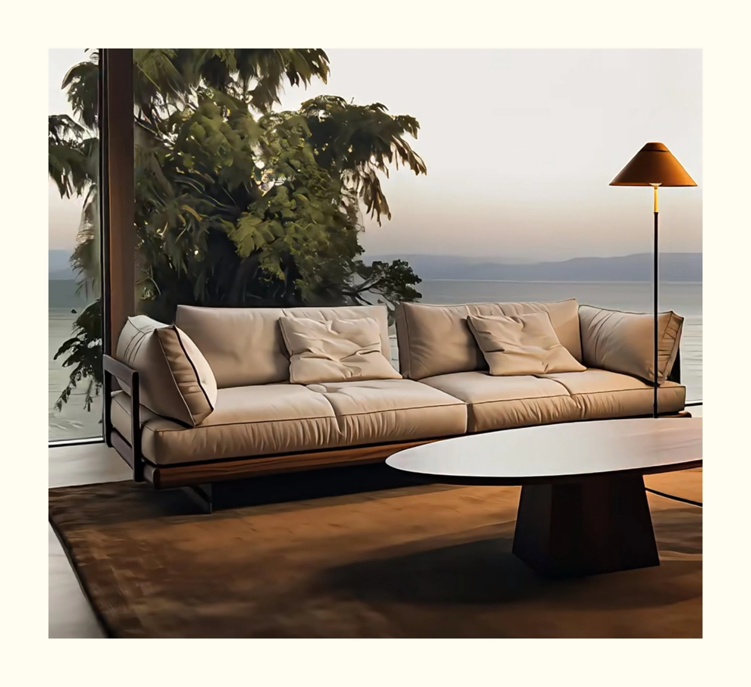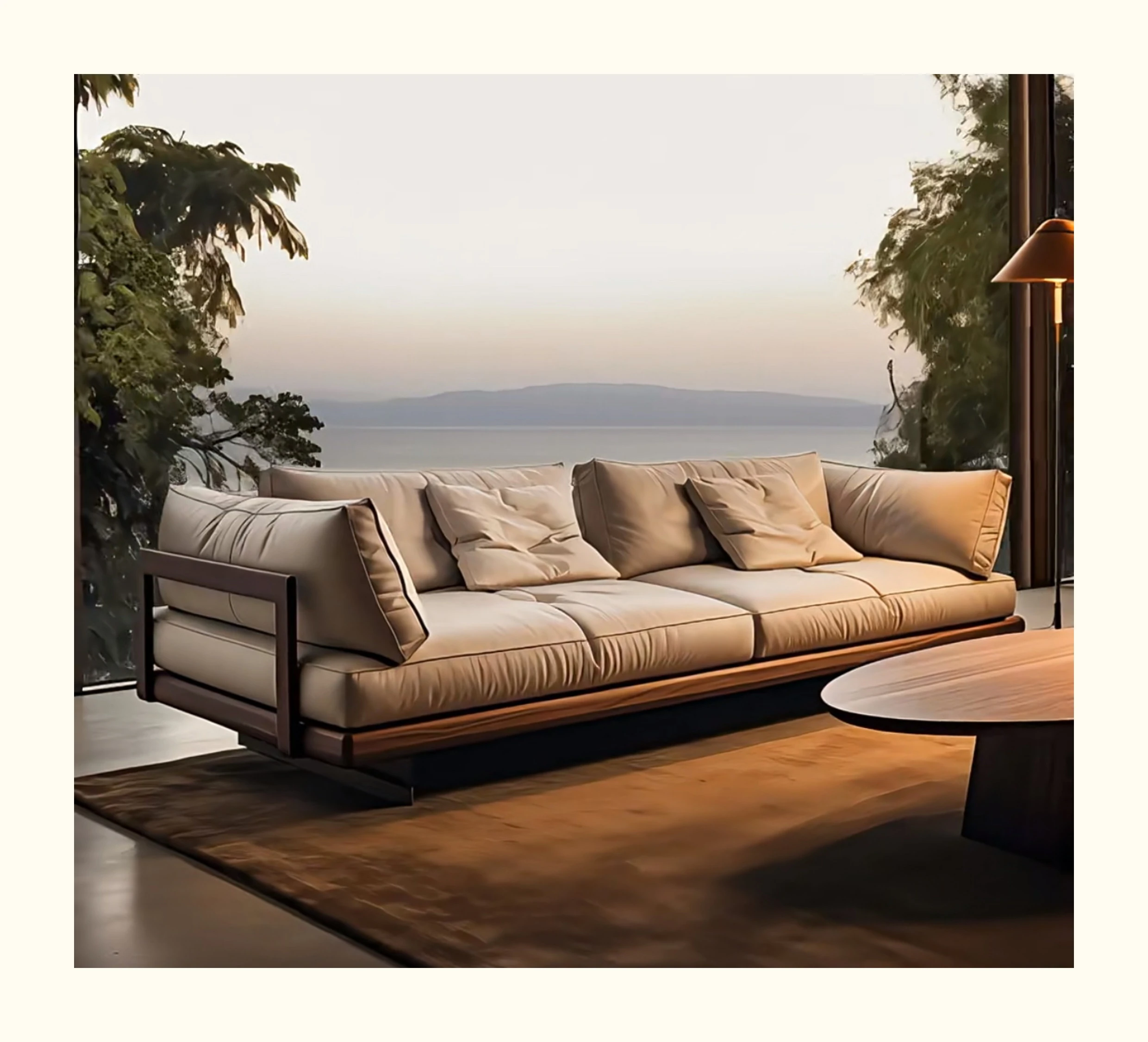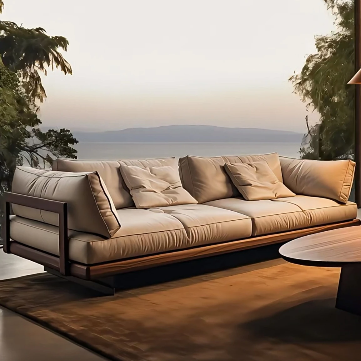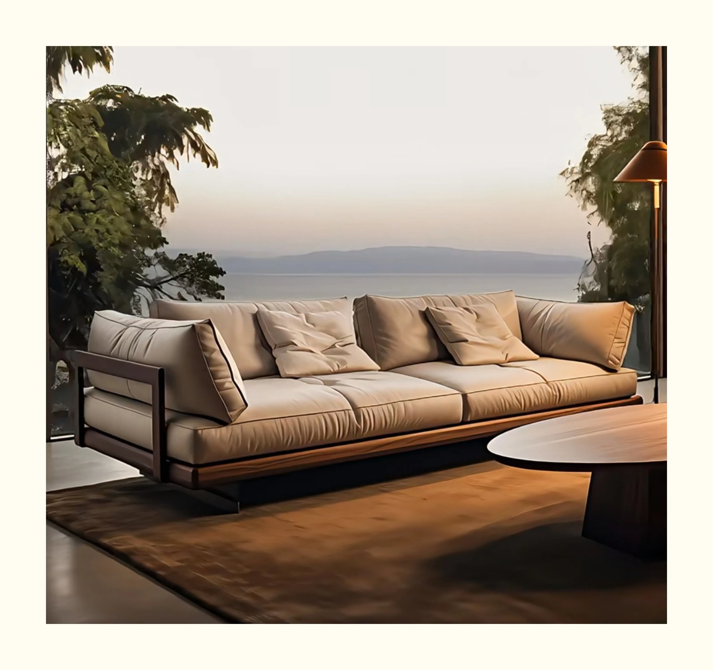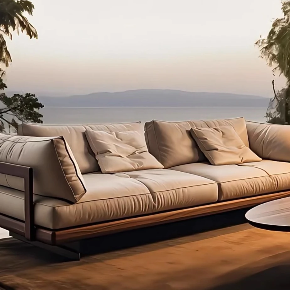 Wabi-Sabi Style Reception Sofa for Guesthouse and Hotel Lobby - Solid Wood Lounge Seating for Living Room and Home Use, Perfect for Creating a Cozy Atmosphere