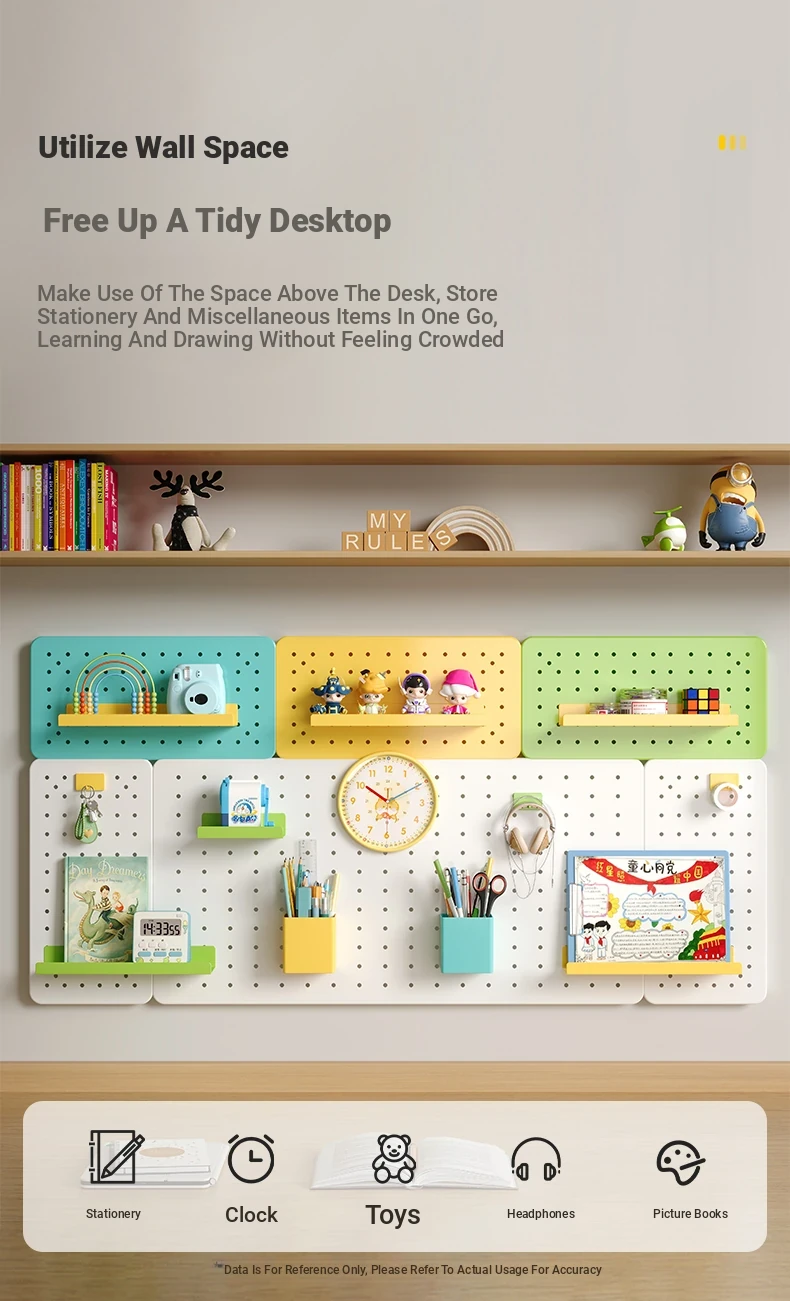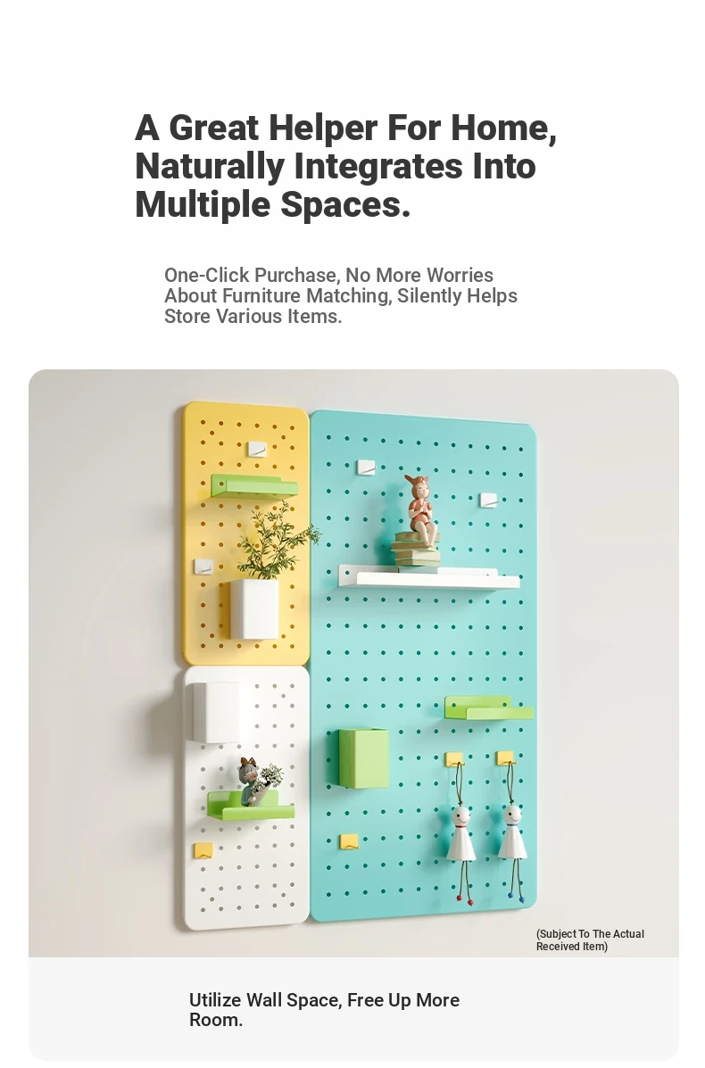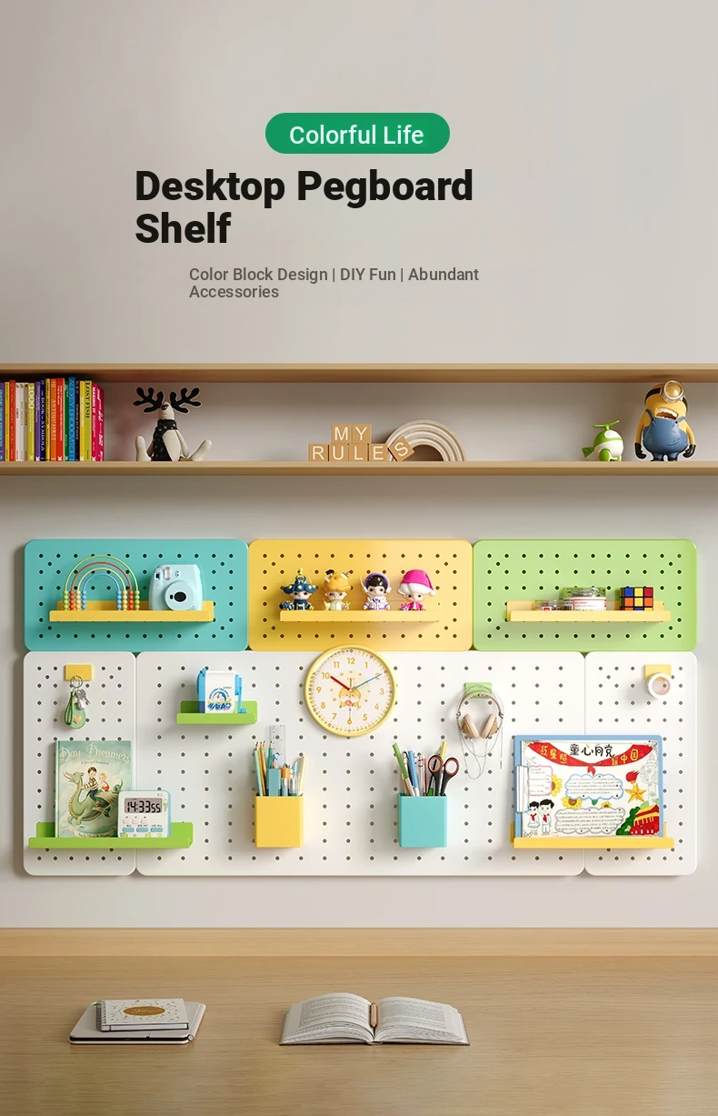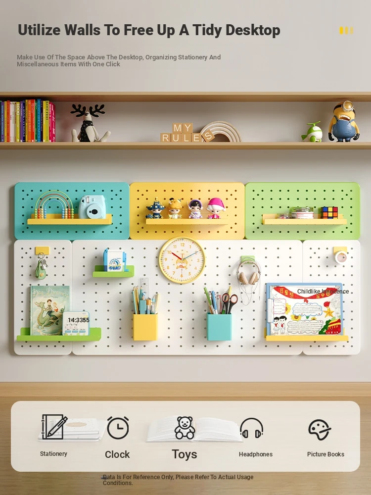 Wall-Mounted Perforated Panel Storage Shelf - Ideal for Students and Home Use, Perfect for Organizing Your Dorm Desk and Displaying Items with Durable Metal Design.