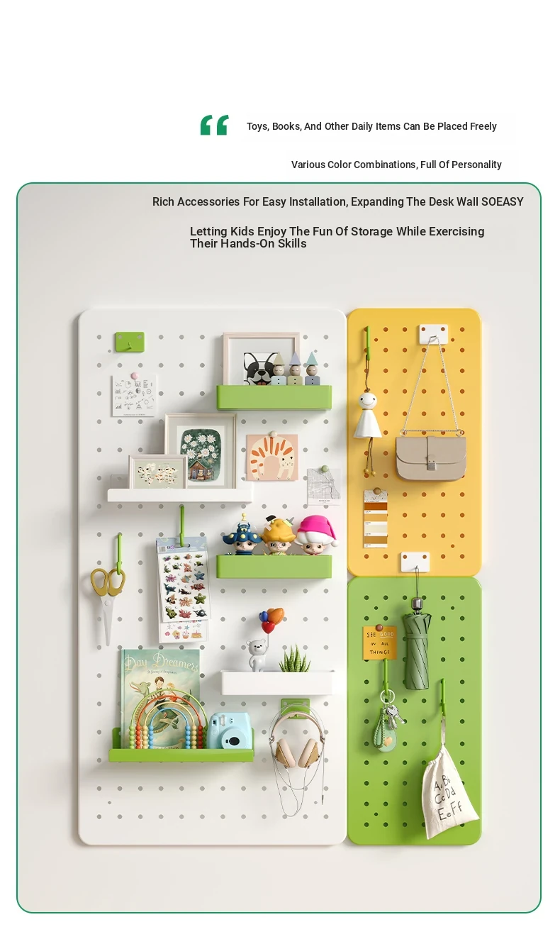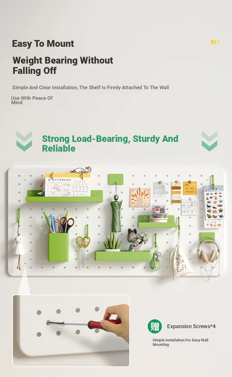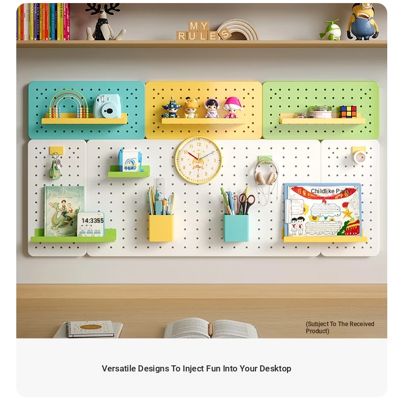Wall-Mounted Perforated Panel Storage Shelf - Ideal for Students and Home Use, Perfect for Organizing Your Dorm Desk and Displaying Items with Durable Metal Design.