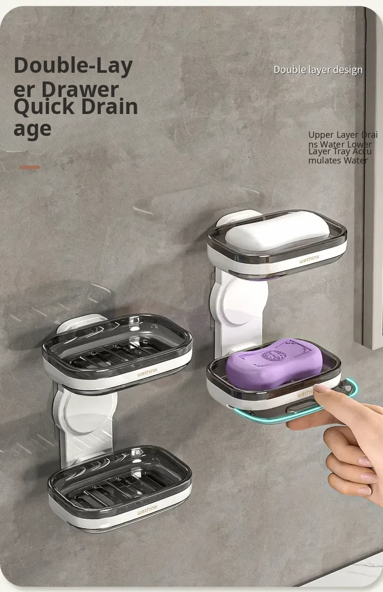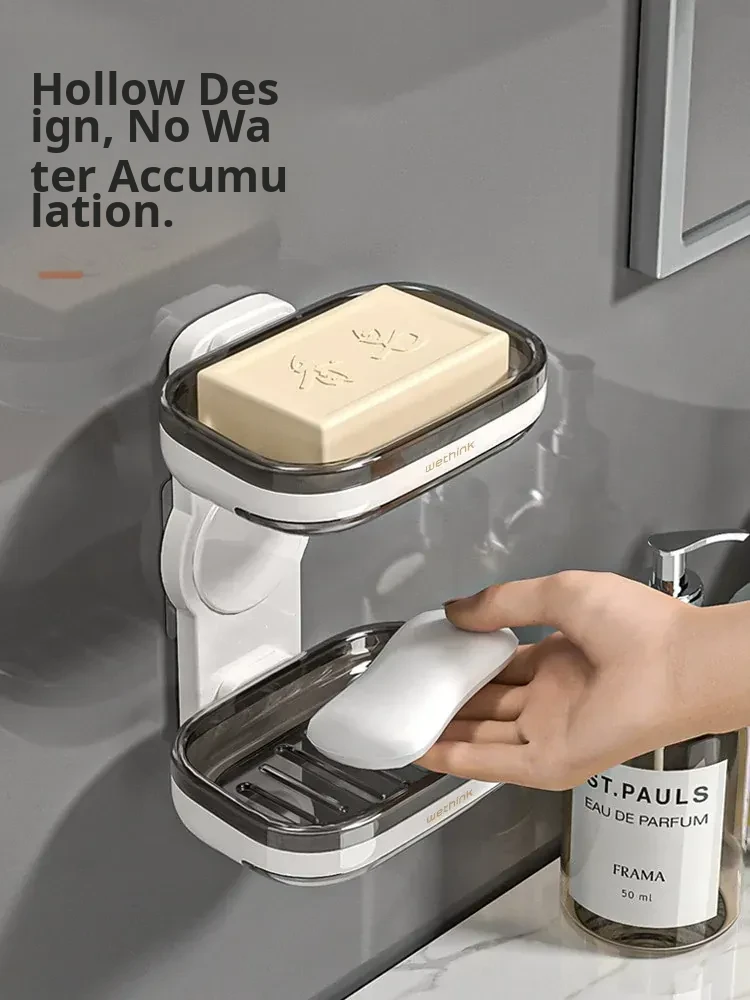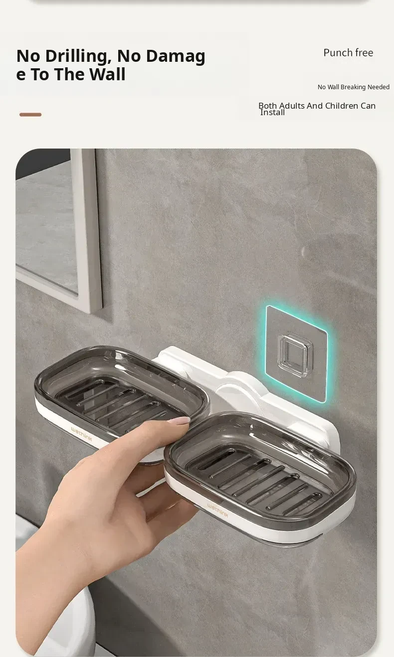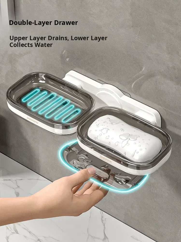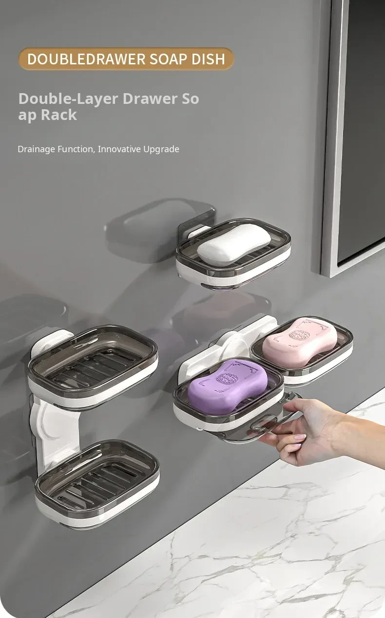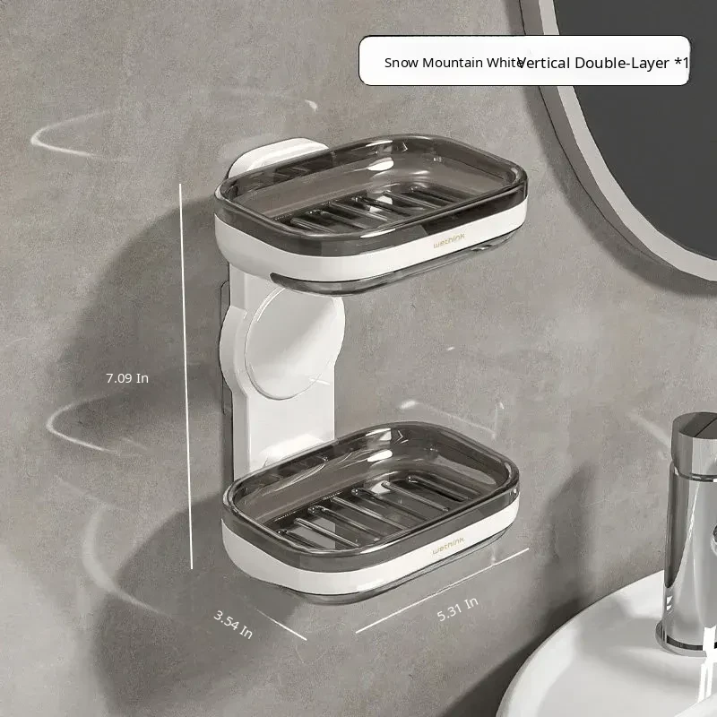 Wall-Mounted Soap Holder - No Drilling Required, Dual-Layer Soap Drainage Box for Bathroom Storage, Ideal for Organizing Soap in Your Home Bathroom