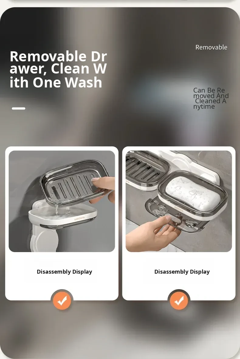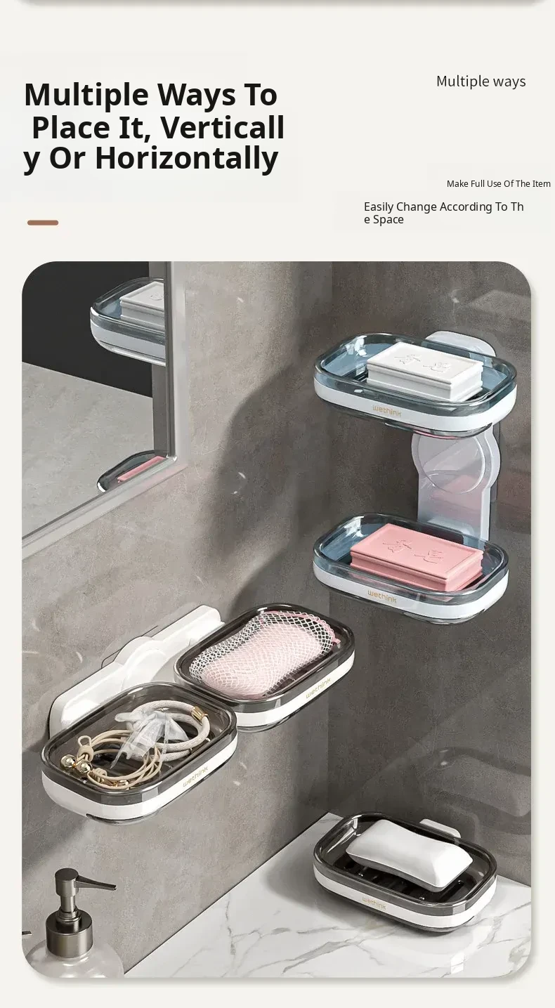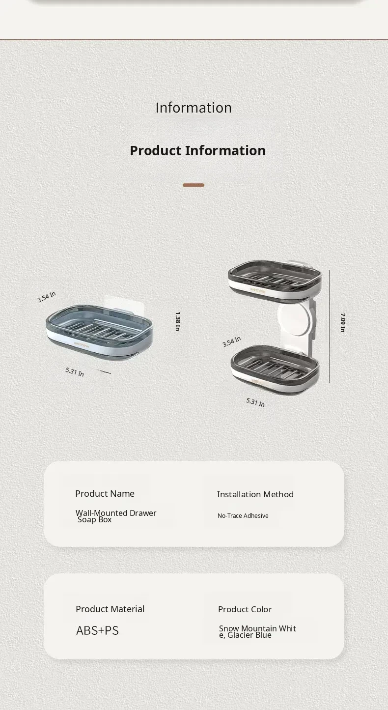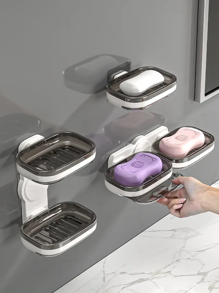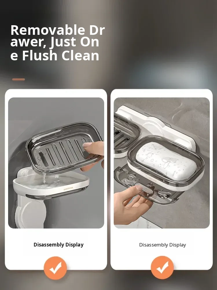 Wall-Mounted Soap Holder - No Drilling Required, Dual-Layer Soap Drainage Box for Bathroom Storage, Ideal for Organizing Soap in Your Home Bathroom