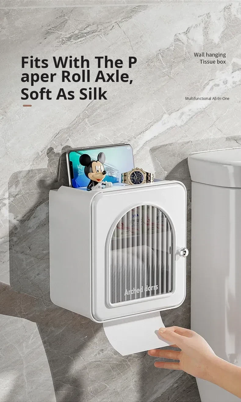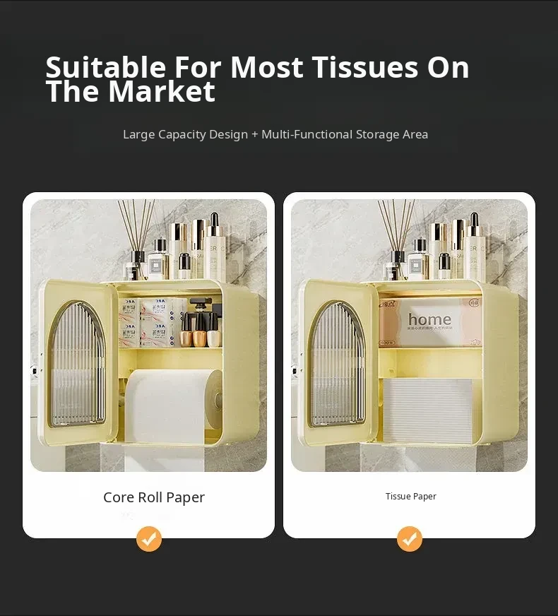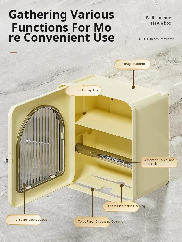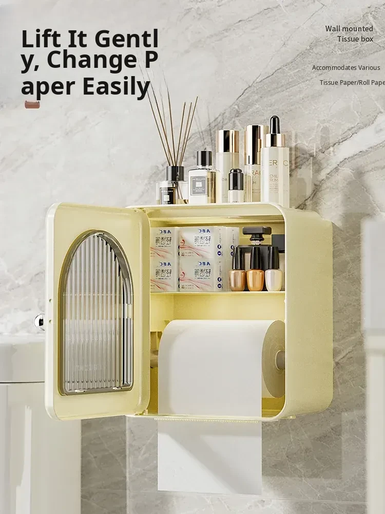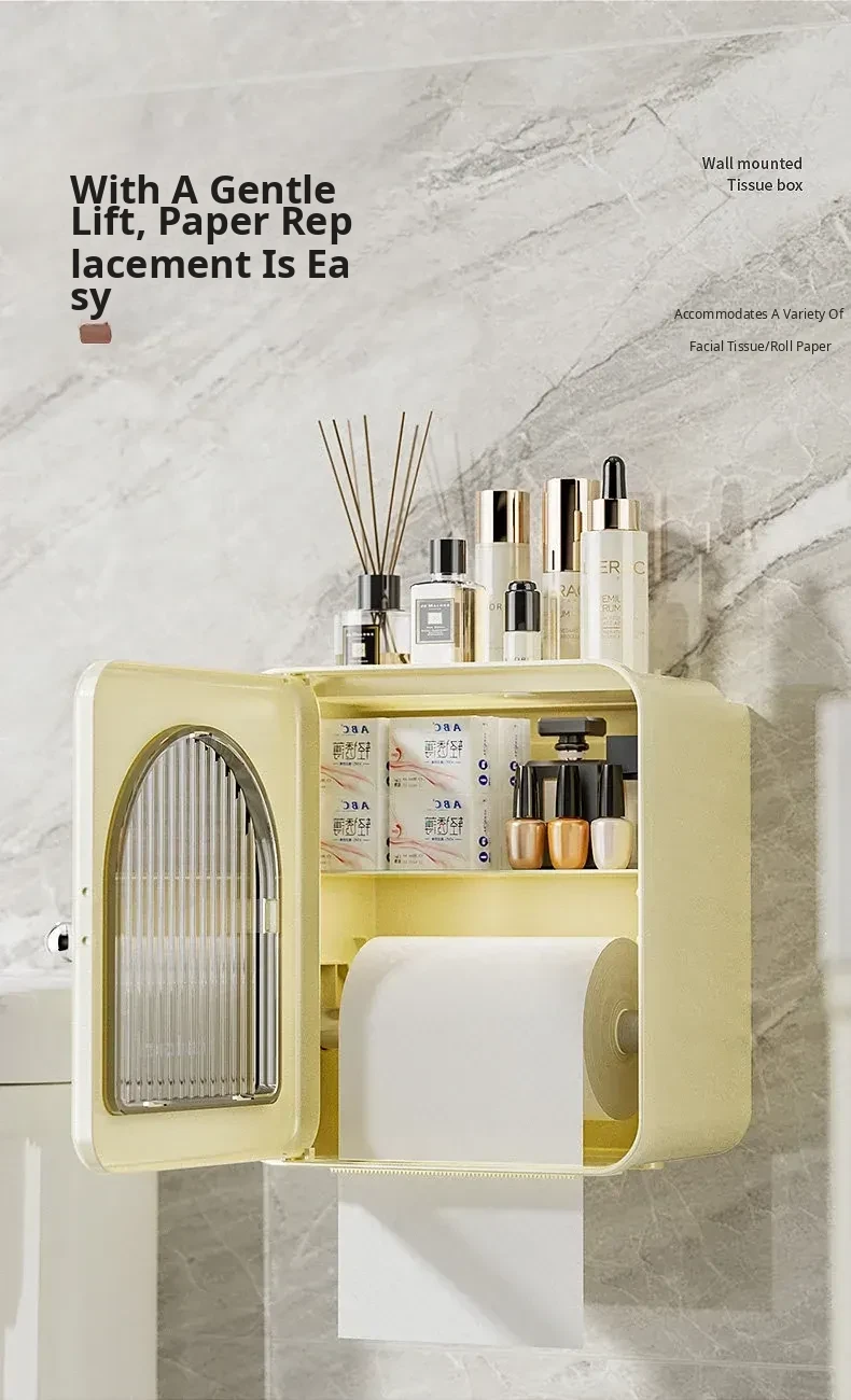 Wall-Mounted Toilet Paper Holder - No Drilling Required, Waterproof Bathroom Tissue Box and Storage Shelf for Convenient Access to Roll and Facial Tissues