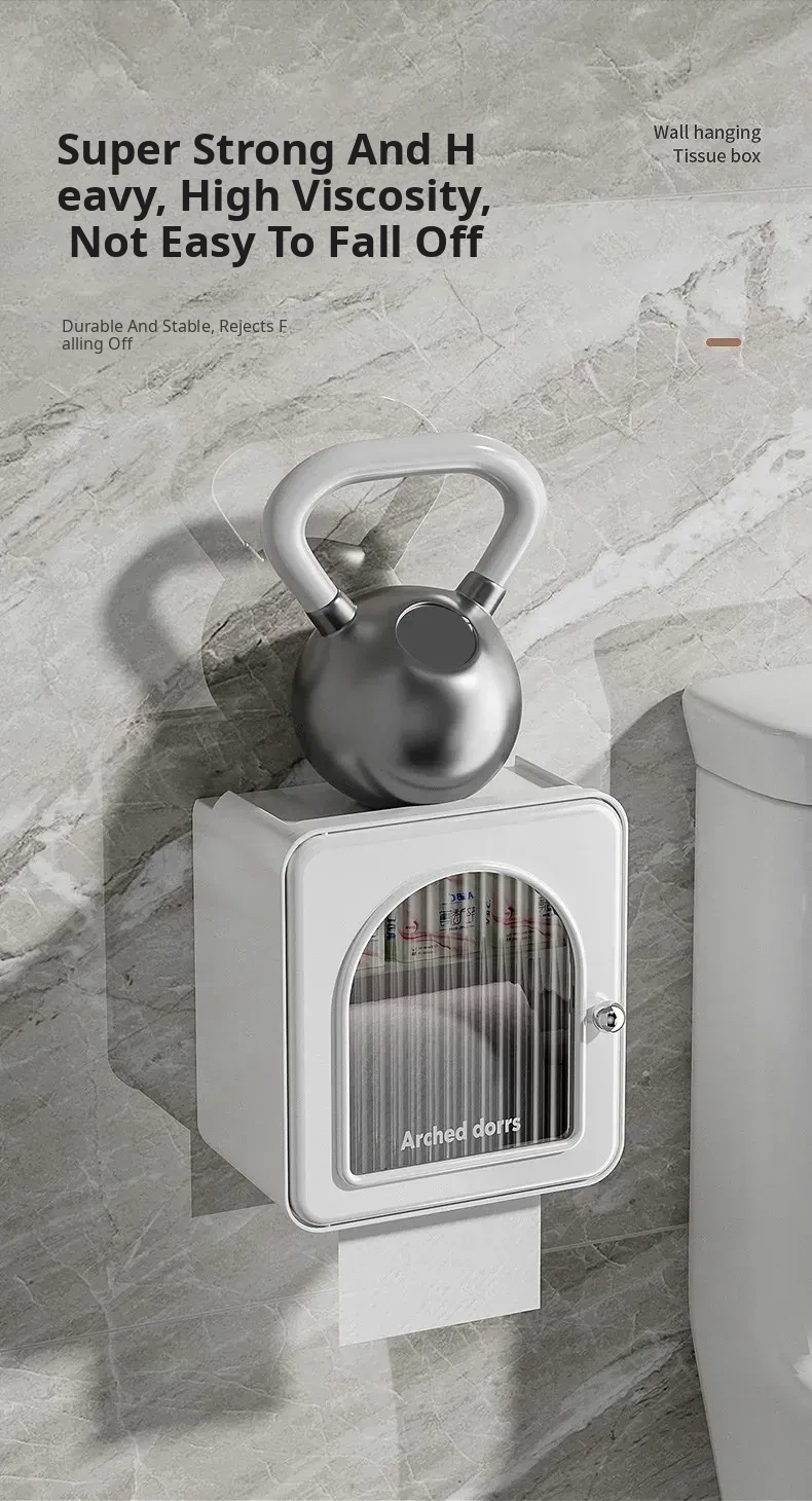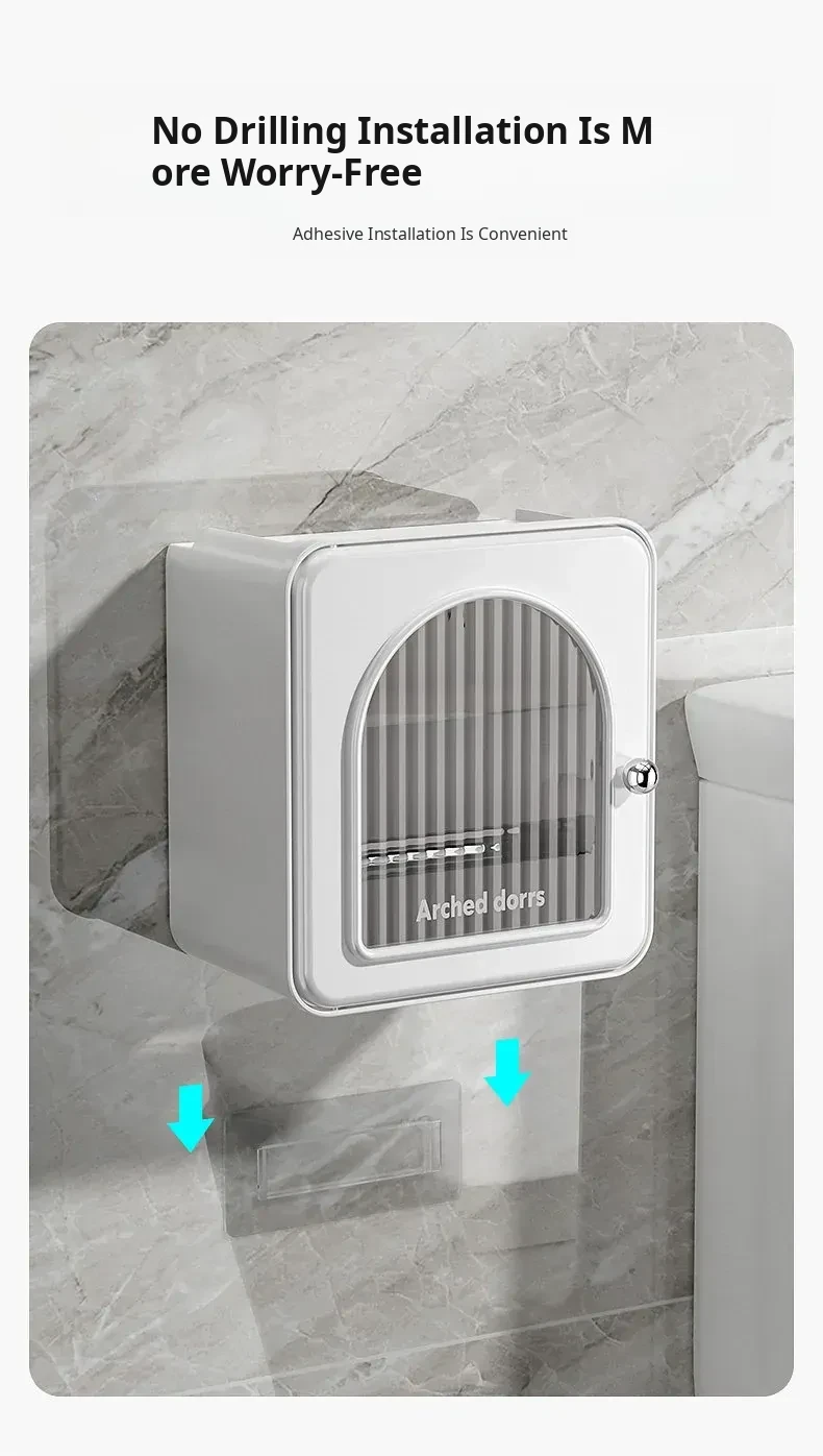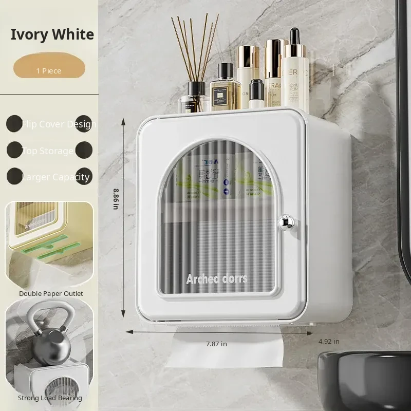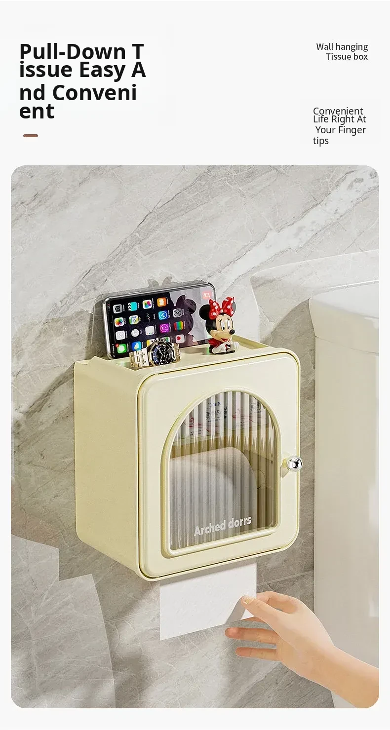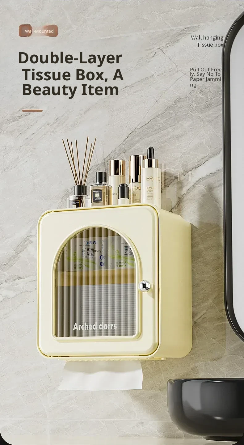 Wall-Mounted Toilet Paper Holder - No Drilling Required, Waterproof Bathroom Tissue Box and Storage Shelf for Convenient Access to Roll and Facial Tissues