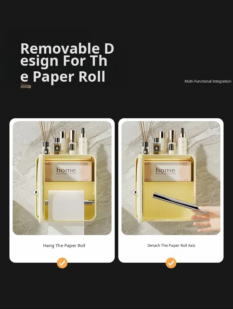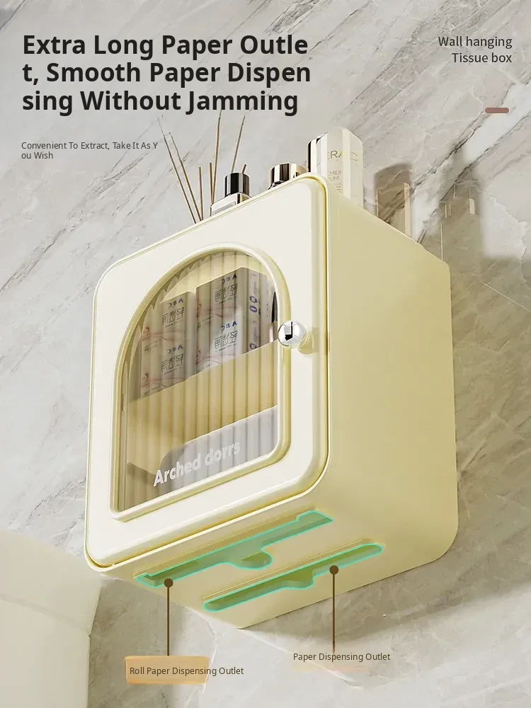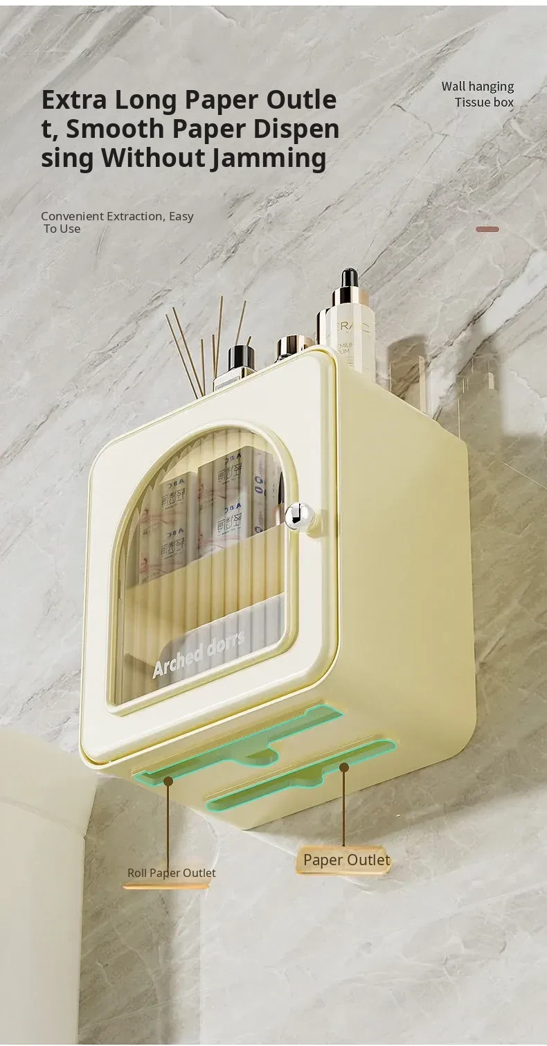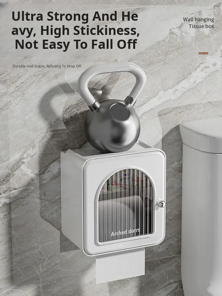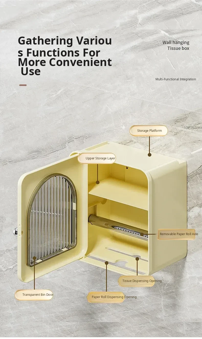 Wall-Mounted Toilet Paper Holder - No Drilling Required, Waterproof Bathroom Tissue Box and Storage Shelf for Convenient Access to Roll and Facial Tissues