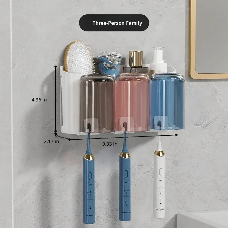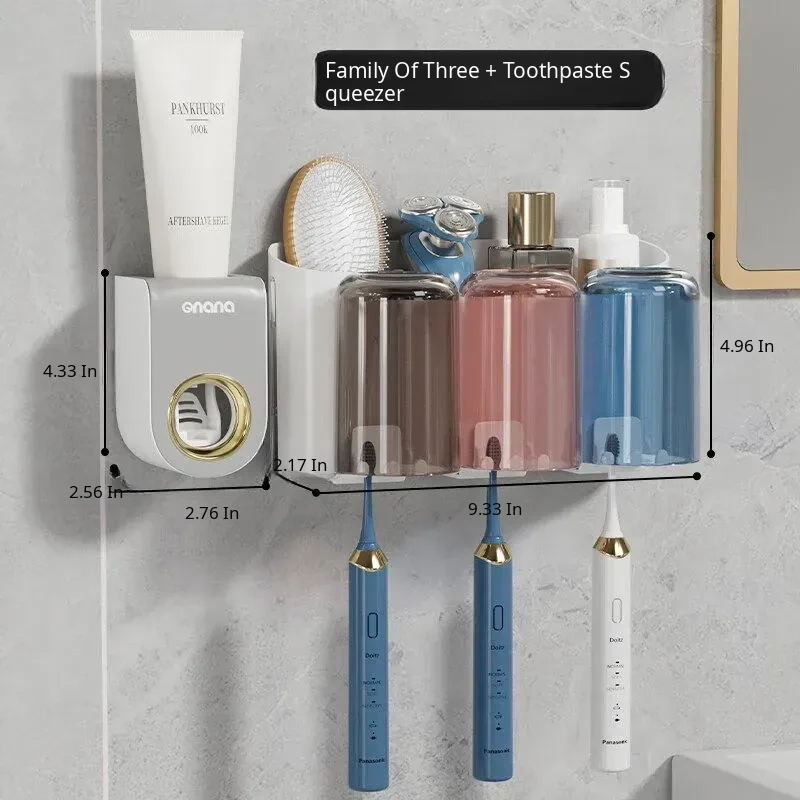 Toothbrush Rack - Three Cups + Toothpaste Squeezer