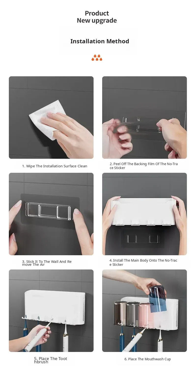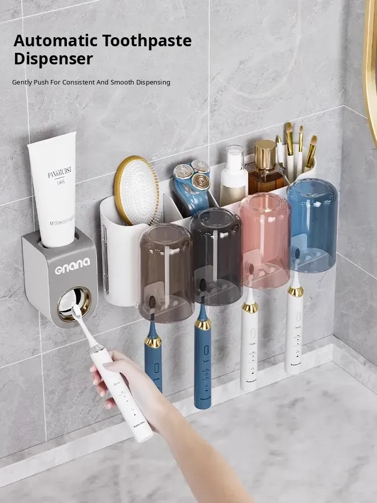 Wall-Mounted Toothbrush Holder with Transparent Toothbrush Cups - No Drilling Required! Includes Convenient Wall-Mounted Toothpaste Dispenser for a Tidy Bathroom Solution. Perfect for Organized Oral Care!