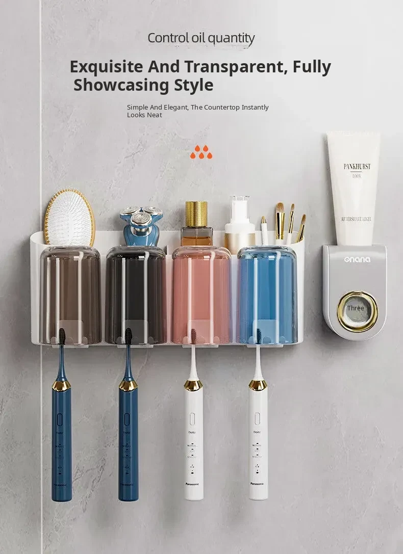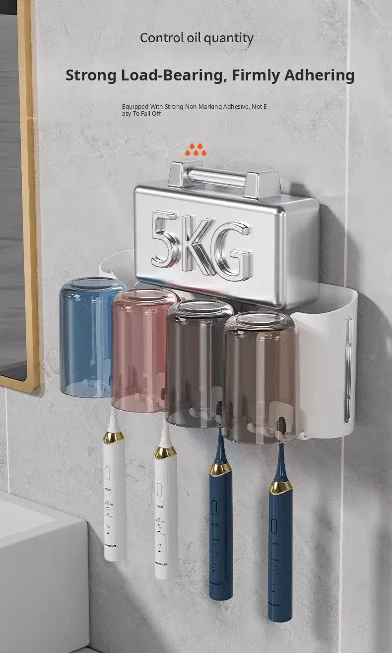 Toothbrush Rack - Four Cups + Toothpaste Squeezer