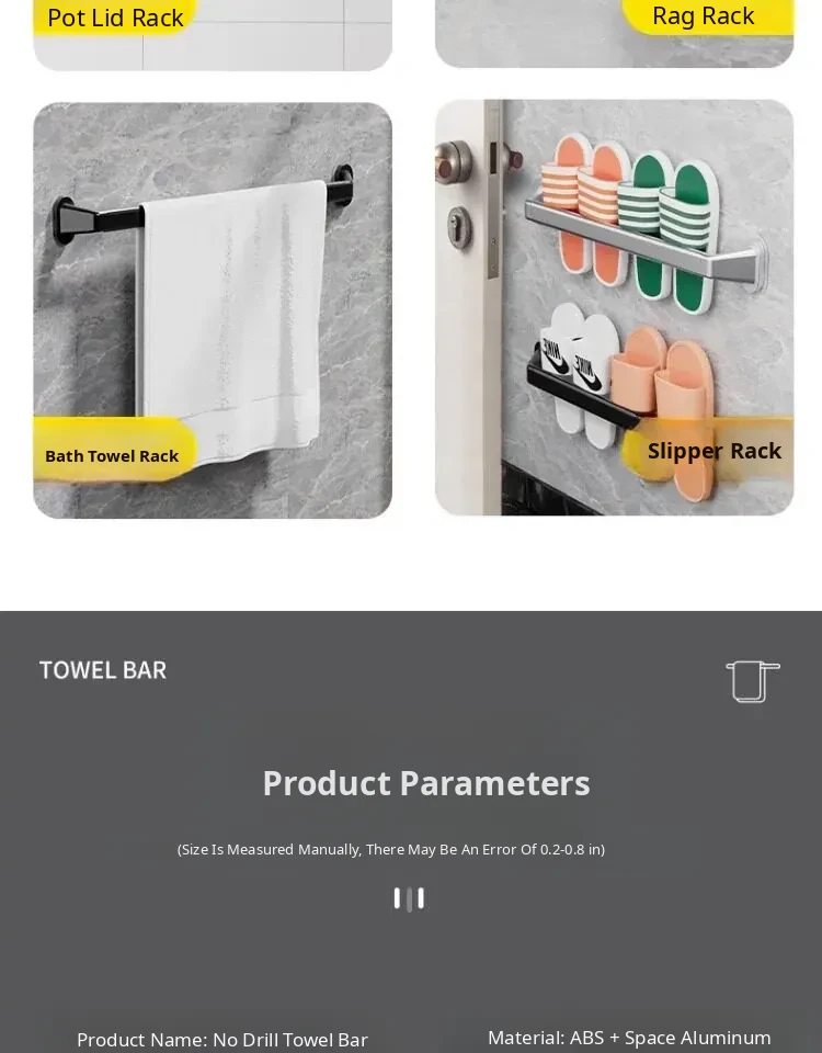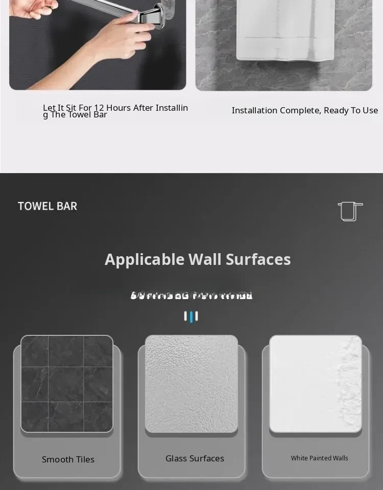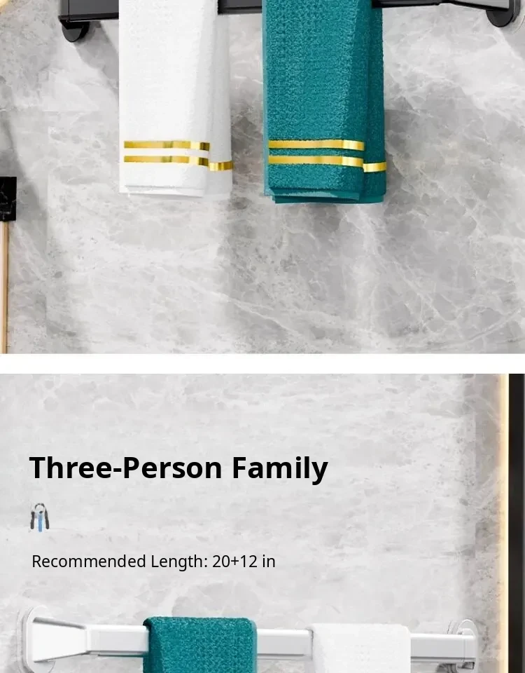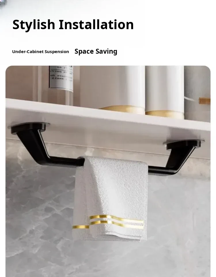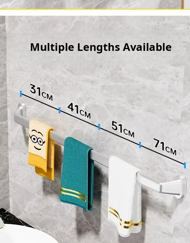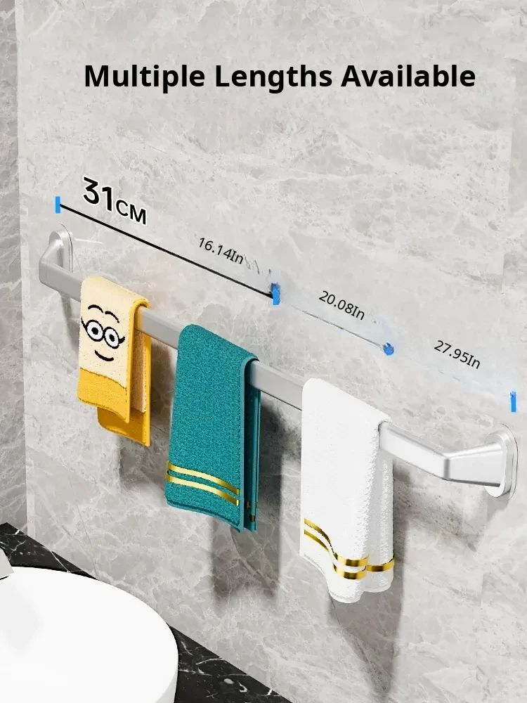 Wall-Mounted Towel Rack - No Drilling Required, Space-Saving Storage for Bathroom and Toilet, Premium Space Aluminum Towel Holder for Towels and Essentials
