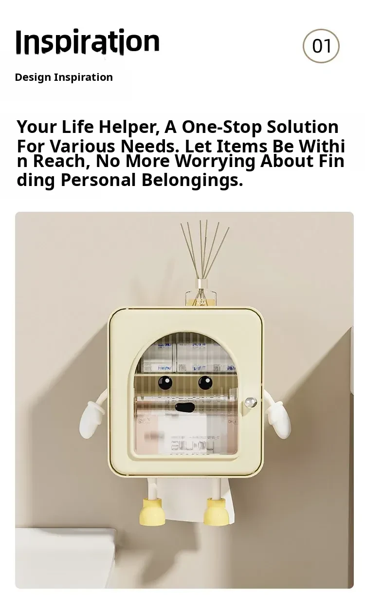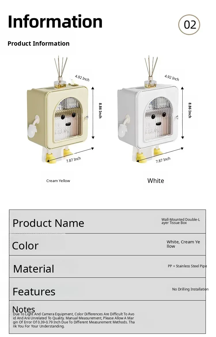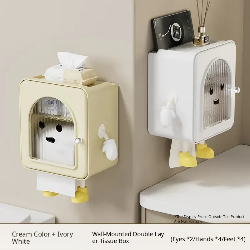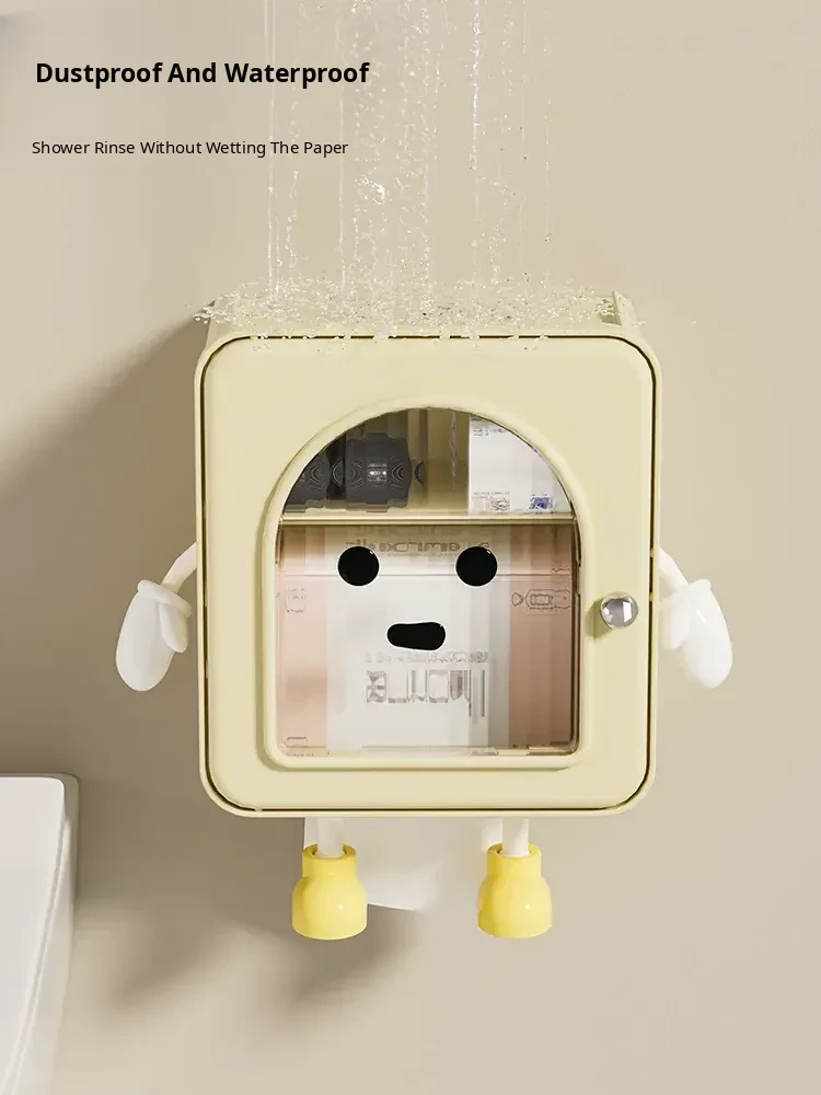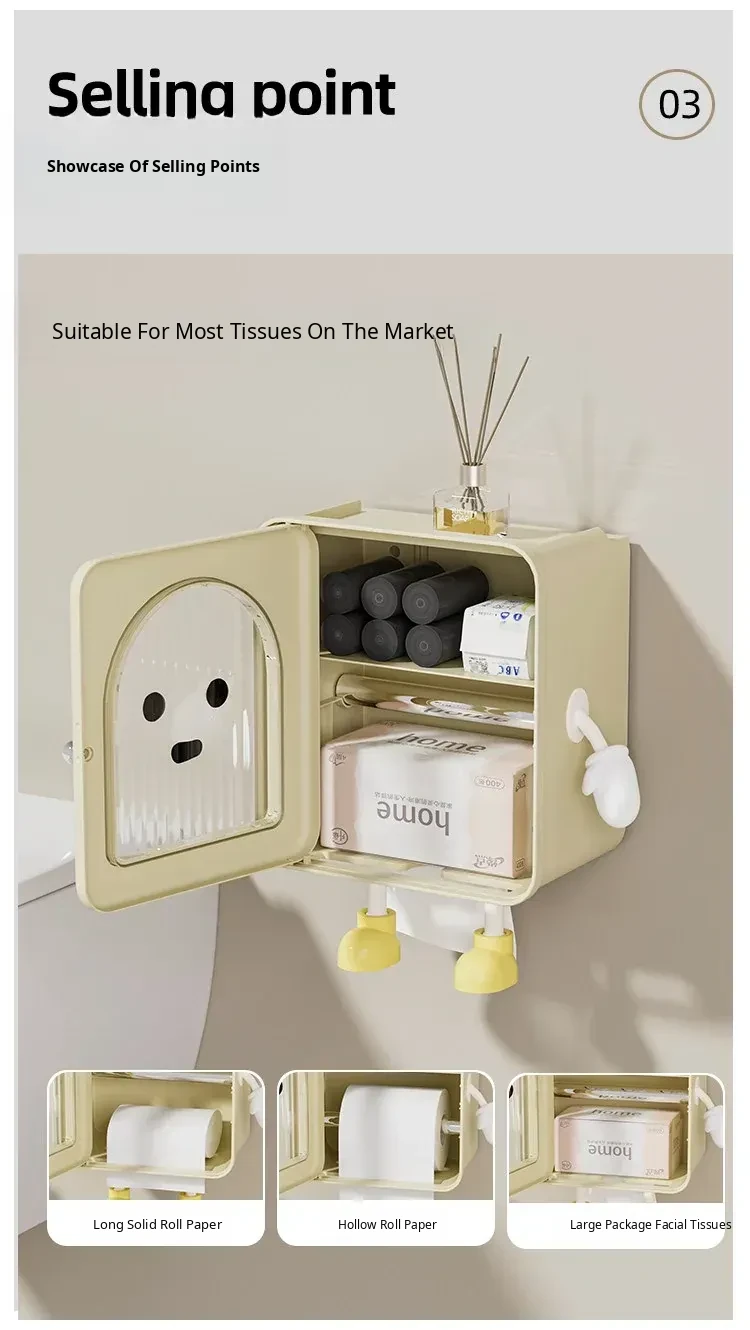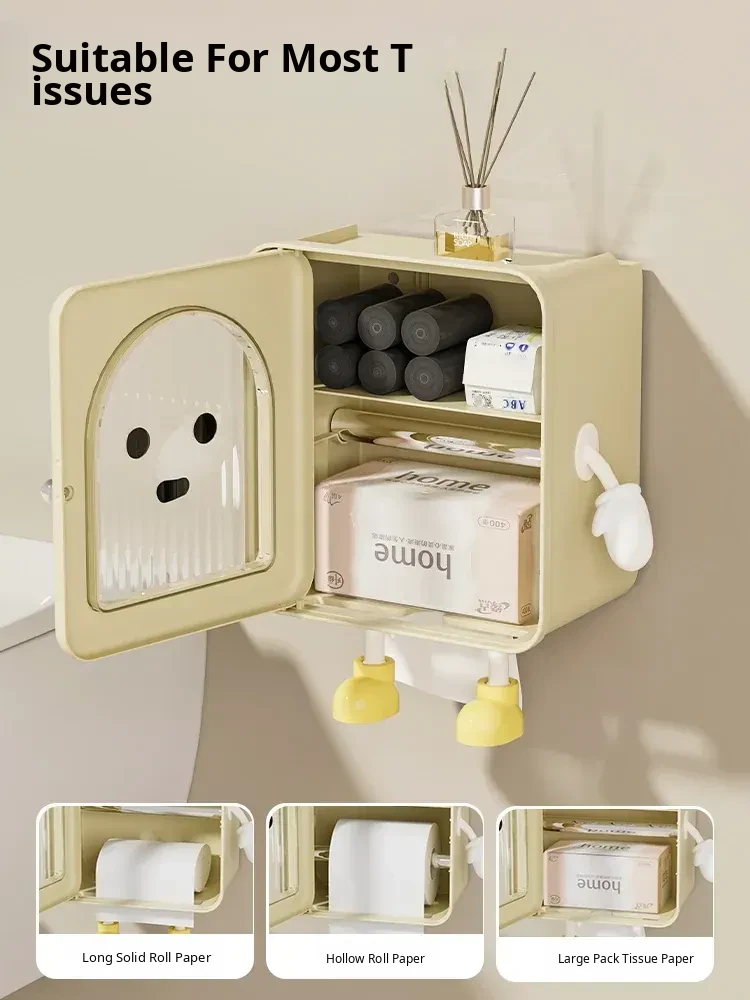 Waterproof Wall-Mounted Toilet Paper Holder – No Drilling Required, Stylish Bathroom Tissue Storage Organizer for Convenient Access to Toilet Paper and Wipes