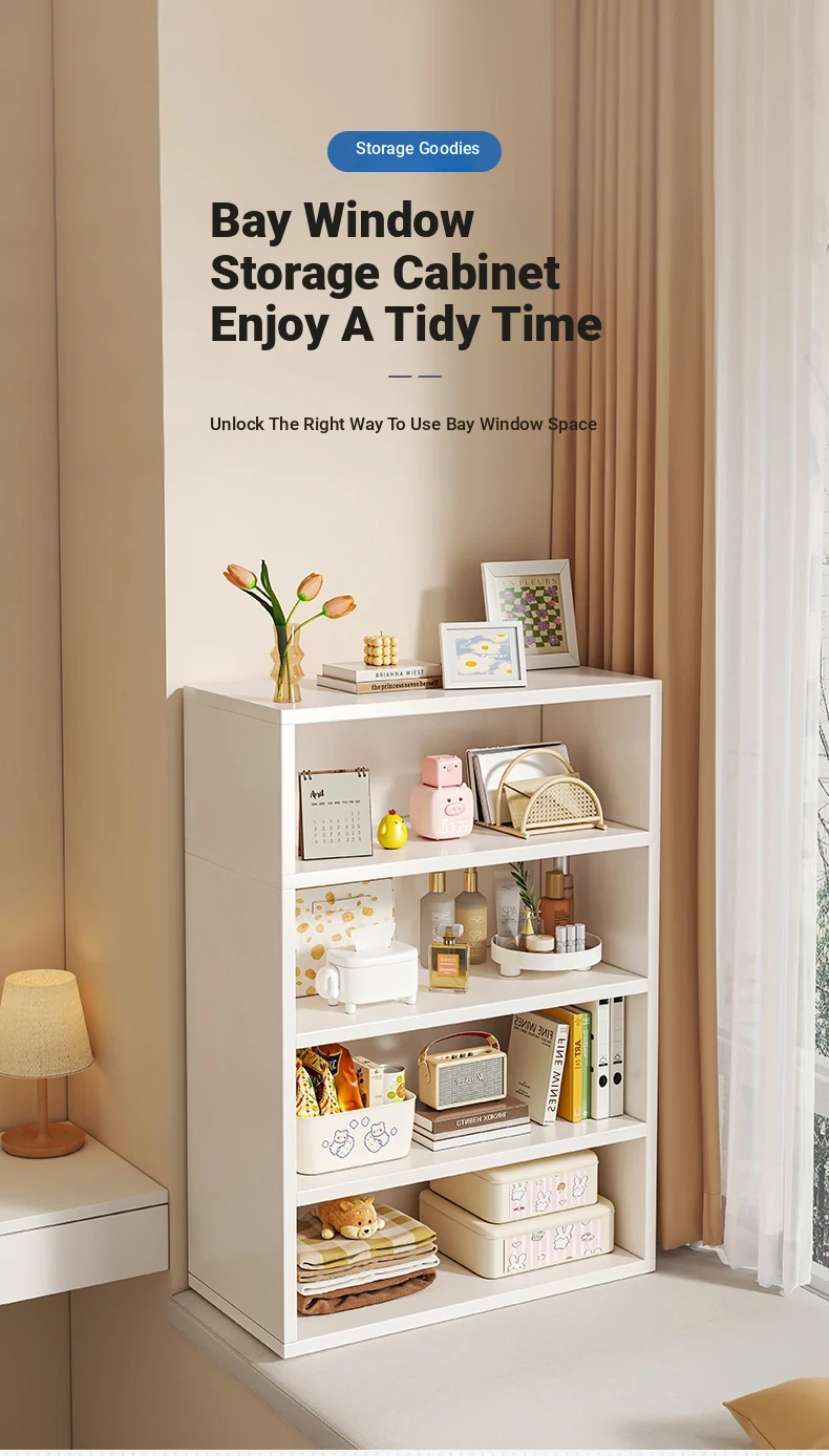 Window Sill Storage Cabinet - Stylish Bookshelf for Home, Perfect for Balconies and Small Spaces, Featuring Doors for Organized Storage Solutions.
