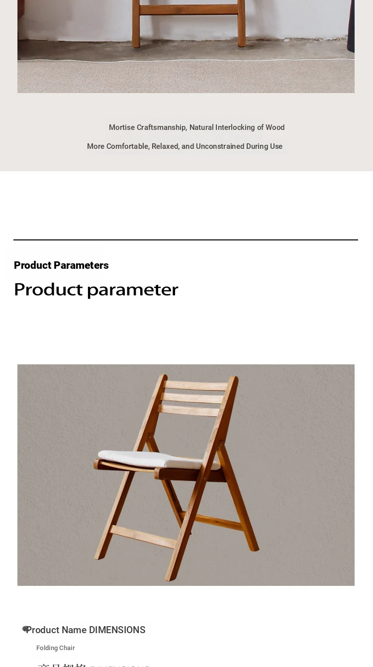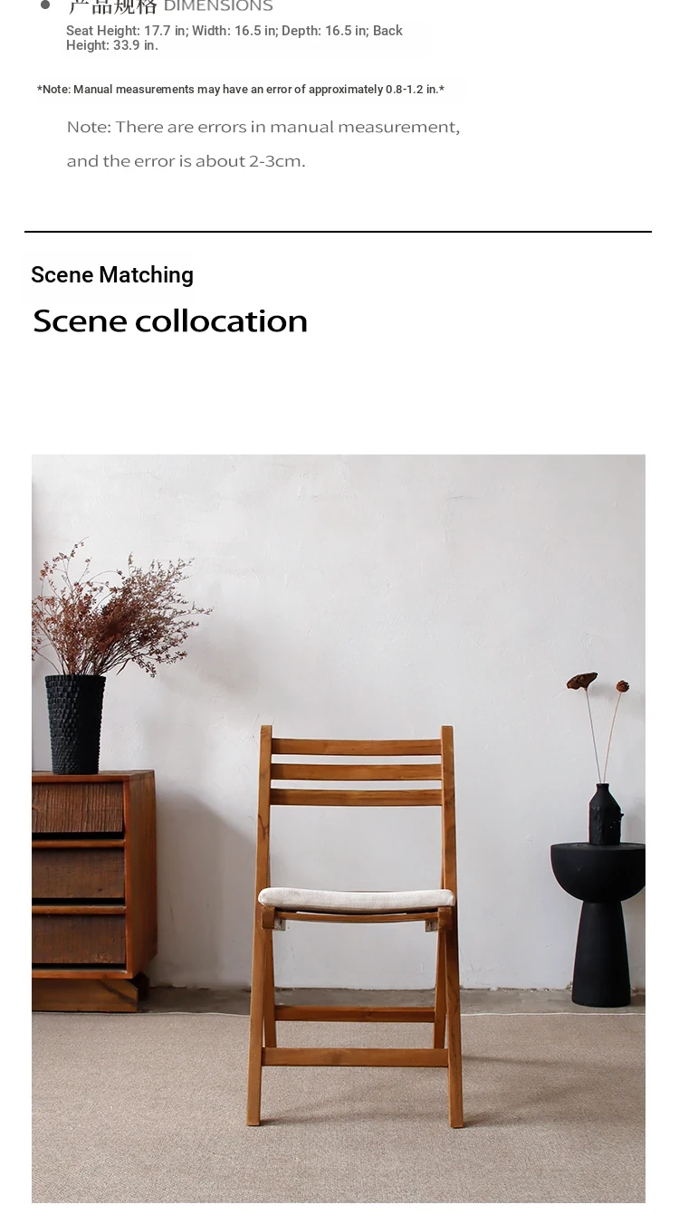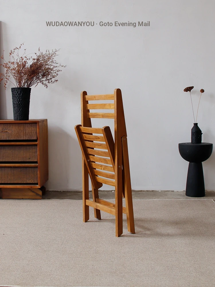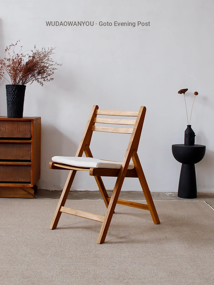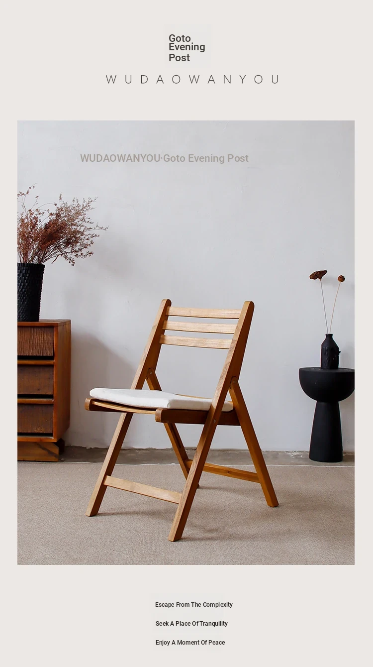 Wudao Folding Chair - Solid Wood Rustic Dining Chair for Tea Tables, Backrest Design, Portable and Foldable for B&Bs, Relaxing Outdoor Use