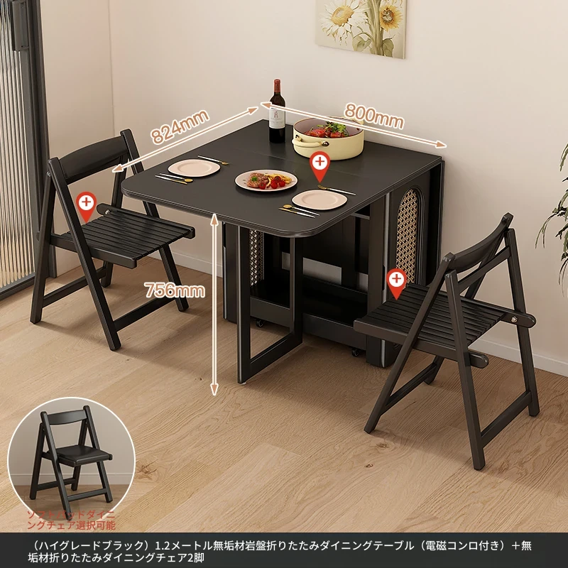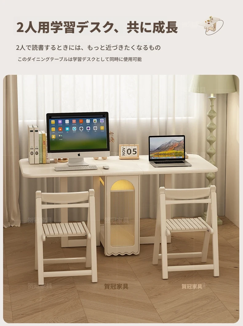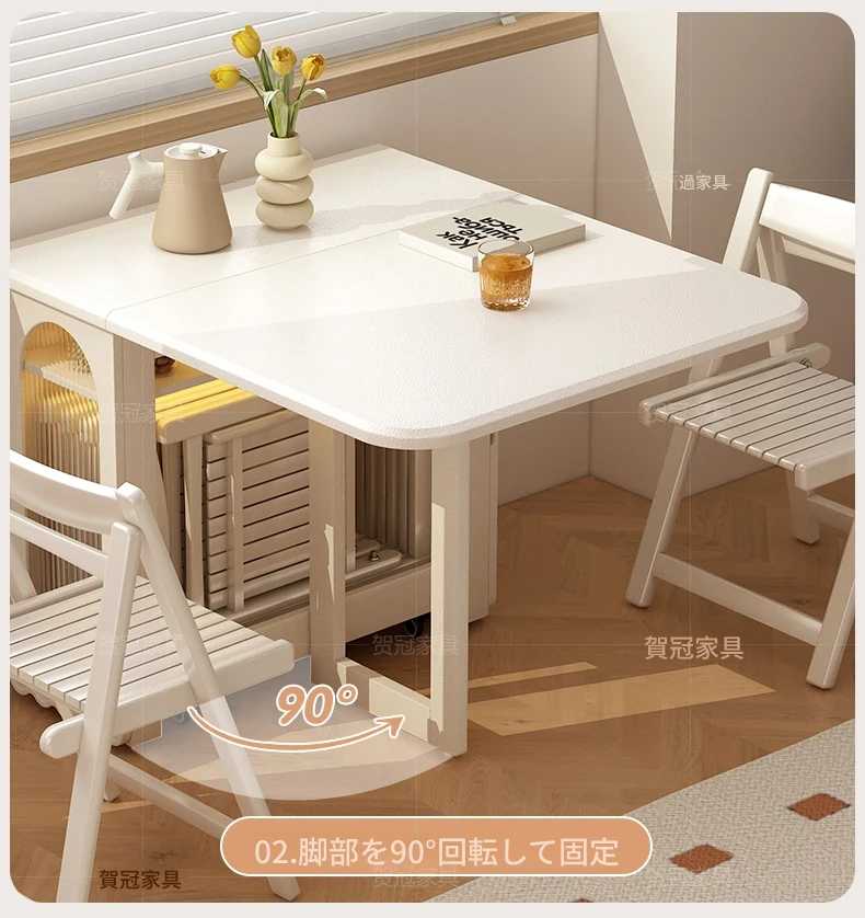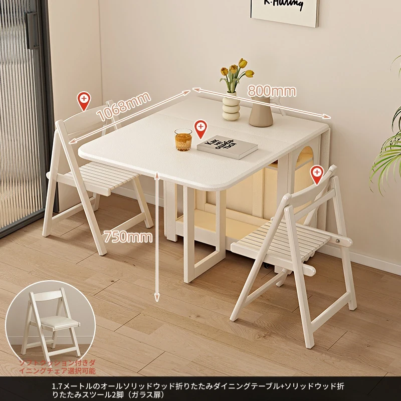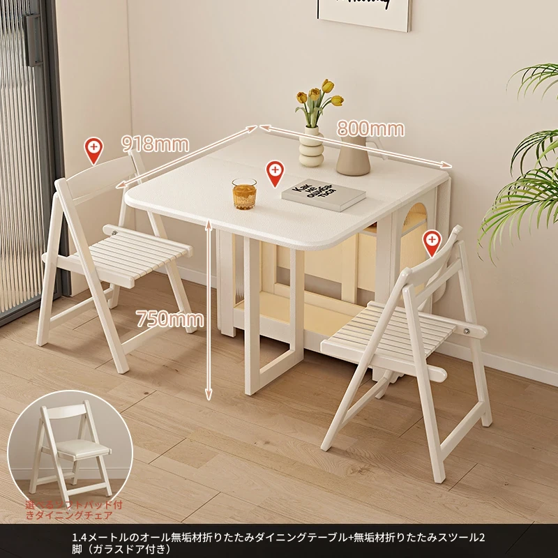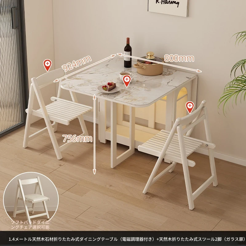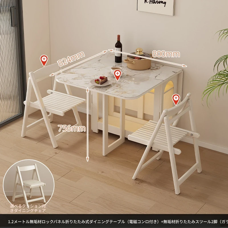2024年最新モデル!クリーム風折りたたみ式ダイニングテーブル&チェアセット(電磁調理器付き) - コンパクトな居住空間に最適な2人用