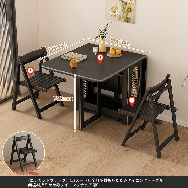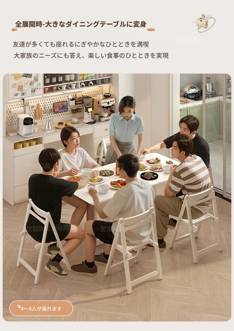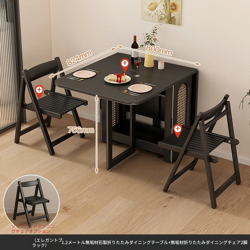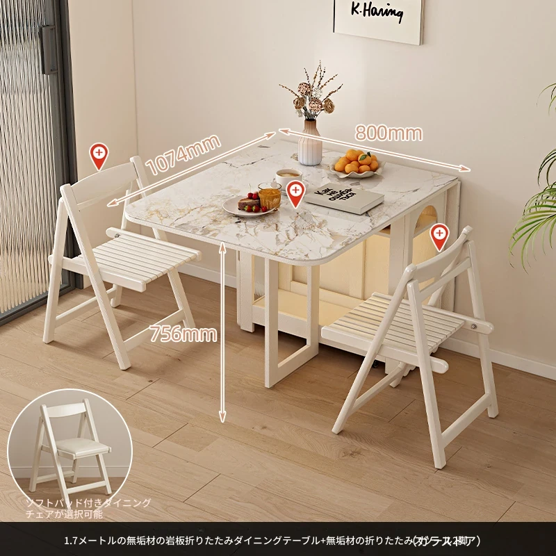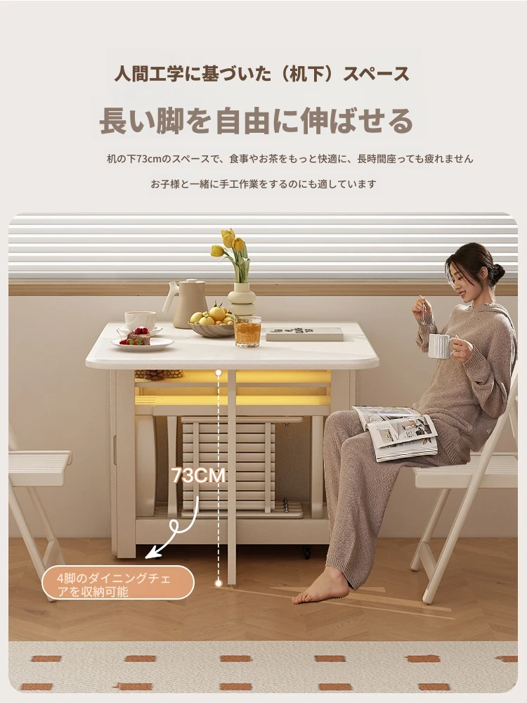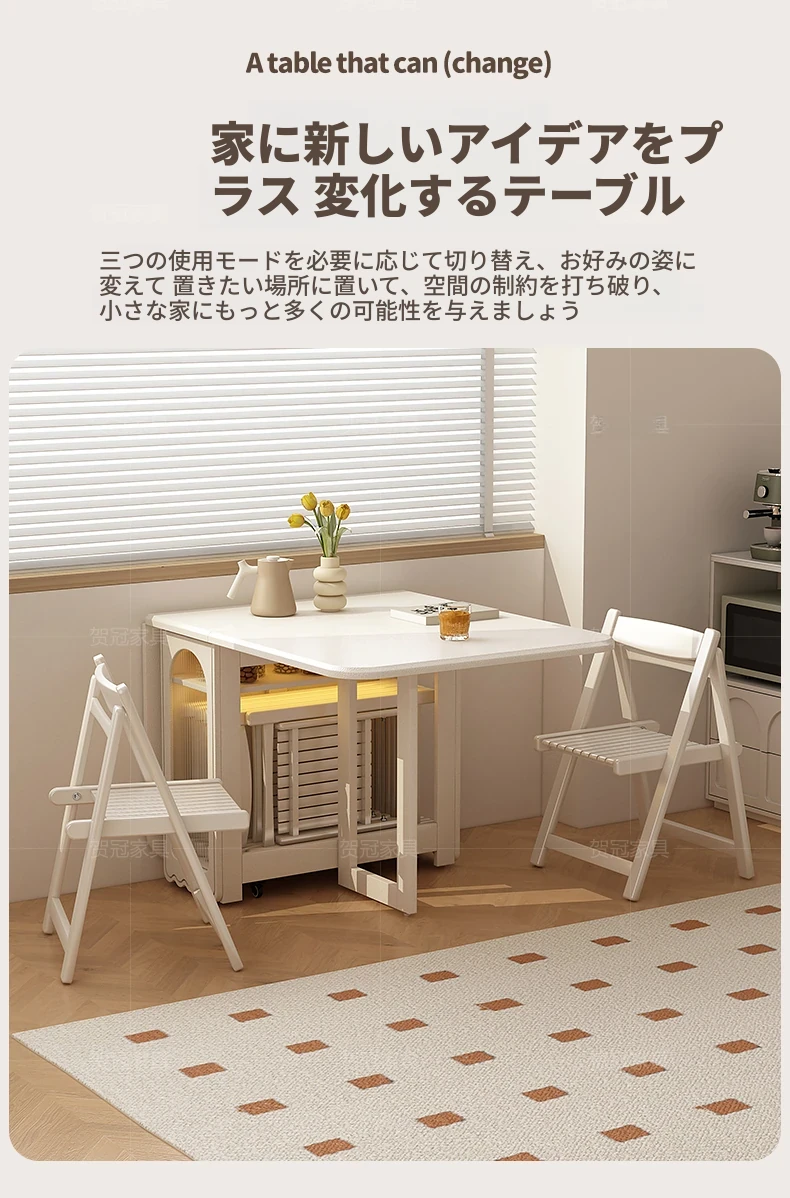 2024年最新モデル!クリーム風折りたたみ式ダイニングテーブル&チェアセット(電磁調理器付き) - コンパクトな居住空間に最適な2人用
