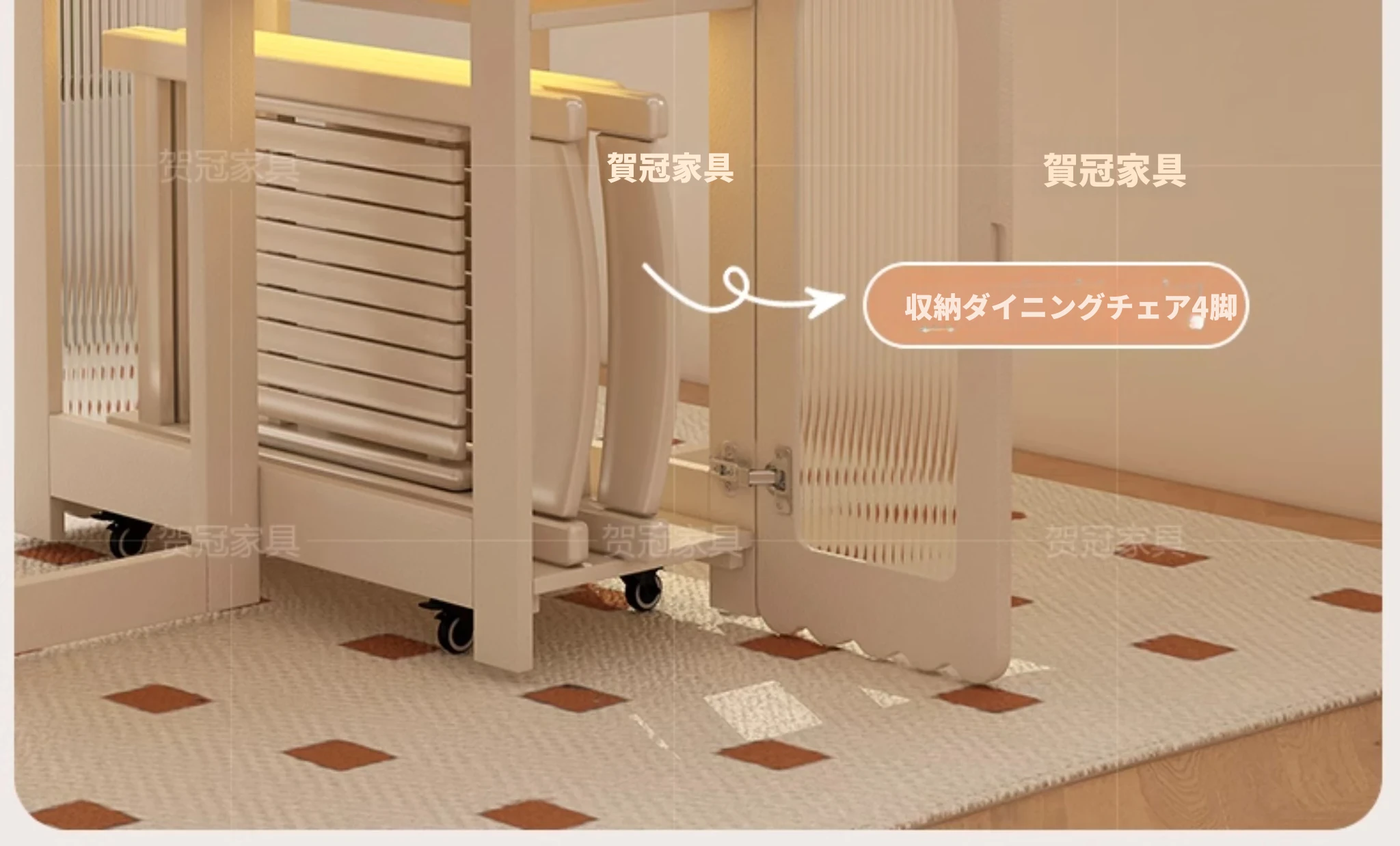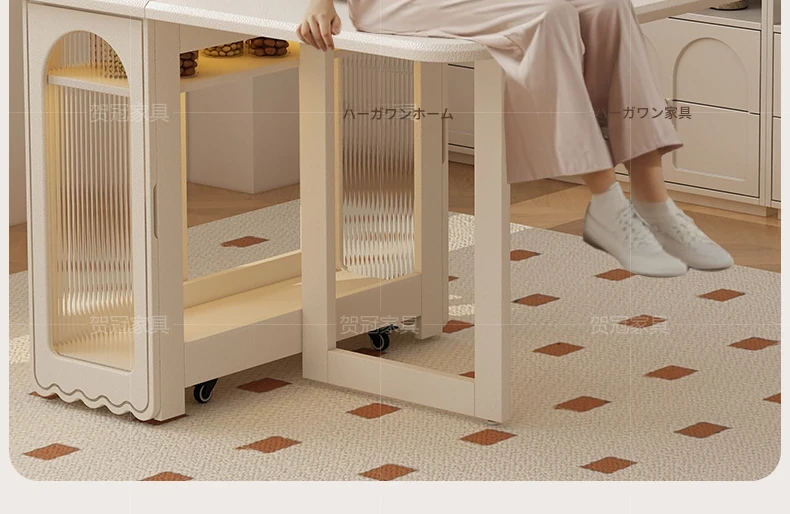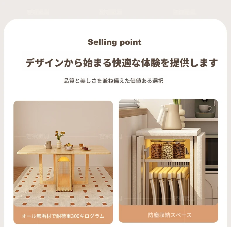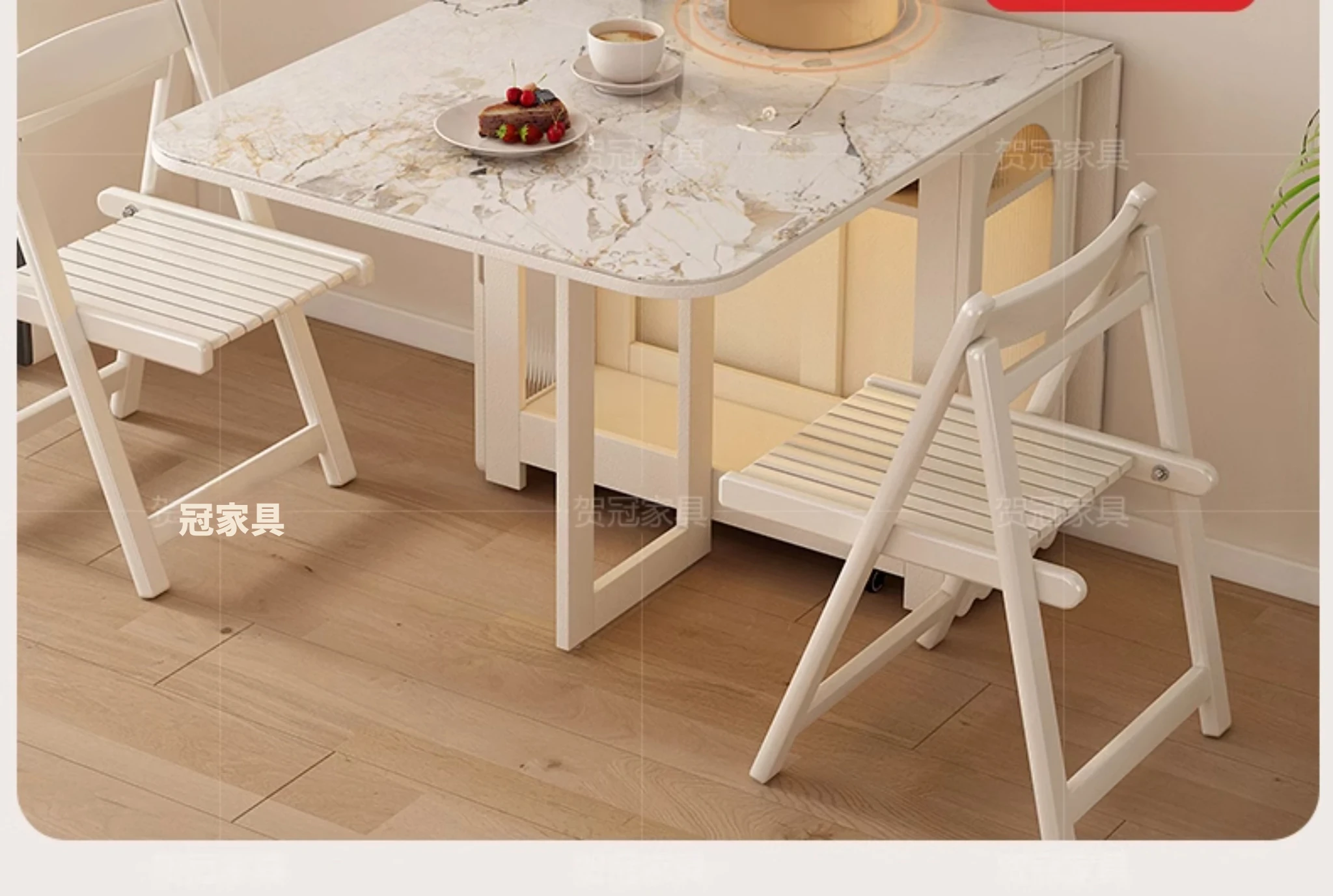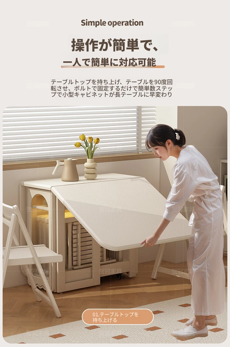 2024年最新モデル!クリーム風折りたたみ式ダイニングテーブル&チェアセット(電磁調理器付き) - コンパクトな居住空間に最適な2人用