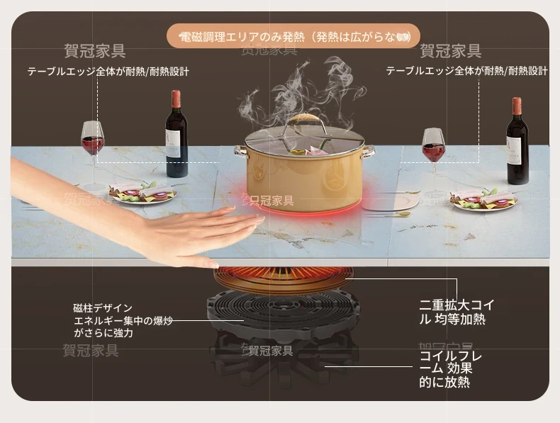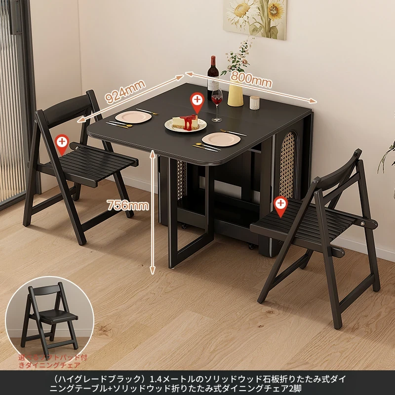 1.4メートル無垢材セラミックトップ【プレミアムブラック】+ IH調理器 + 無垢材ダイニングチェアx2