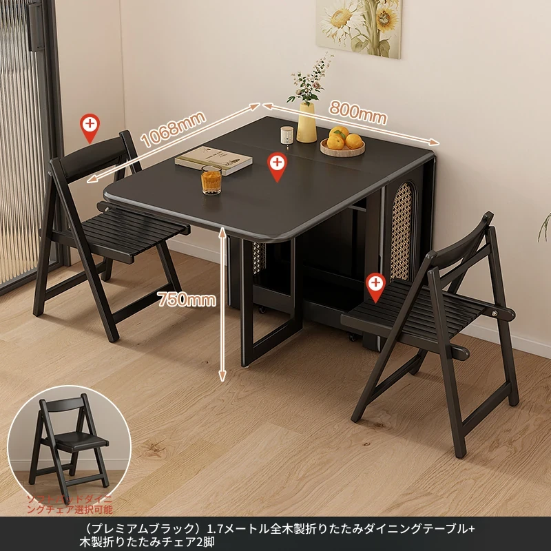 1.7メートル全無垢材【プレミアムブラック】+ 無垢材ダイニングチェアx2