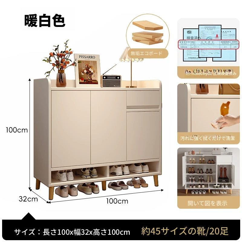 自宅配送【三扉一引き出し⭐アップグレード耐圧高品質密度板】暖白100*32*100
