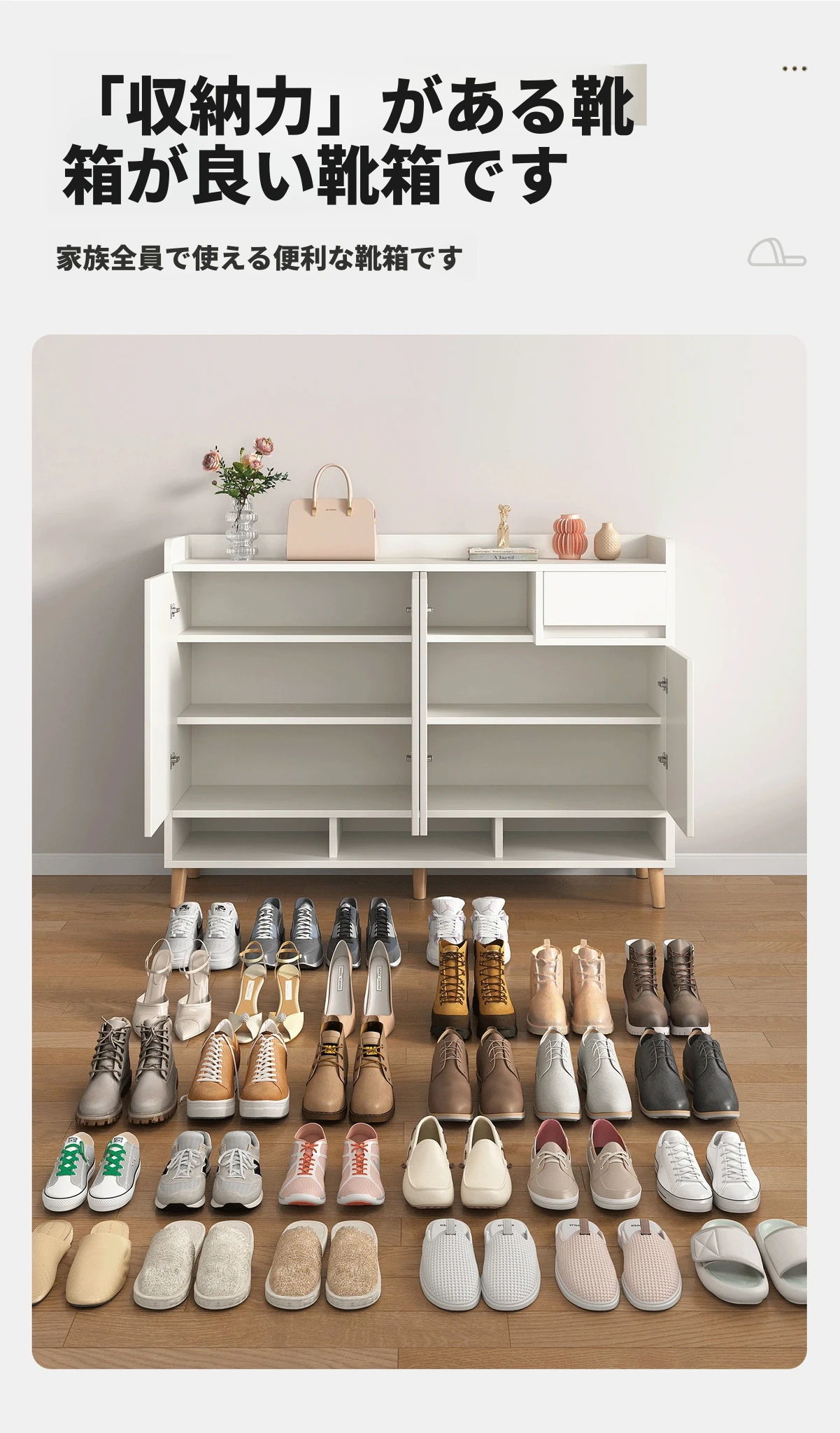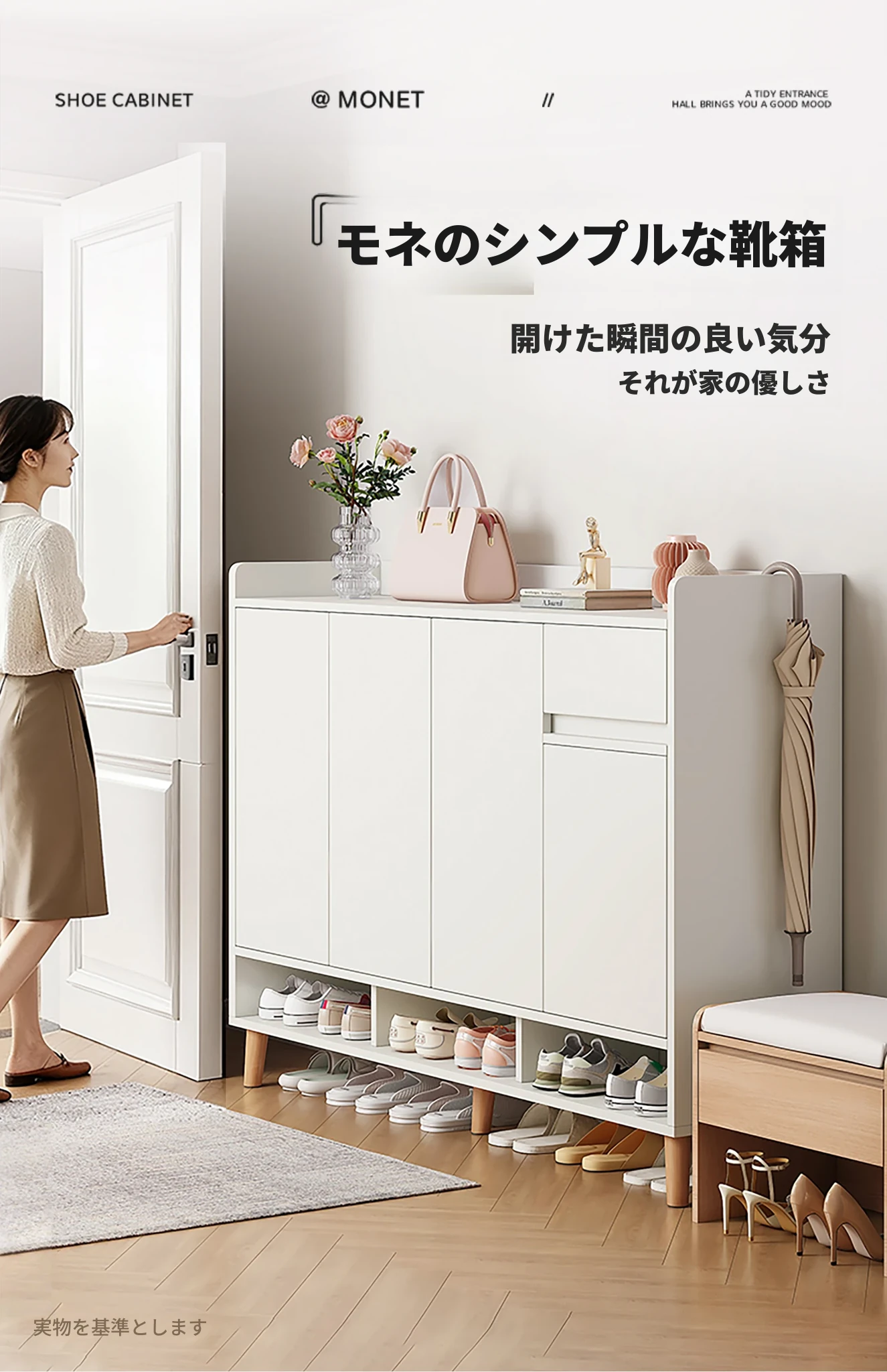 2025年新作!高級感溢れる実木製玄関用シューズキャビネット - 壁掛け一体型収納でスッキリ整理!家庭用に最適な靴ラックで、エレガントな空間を演出します。