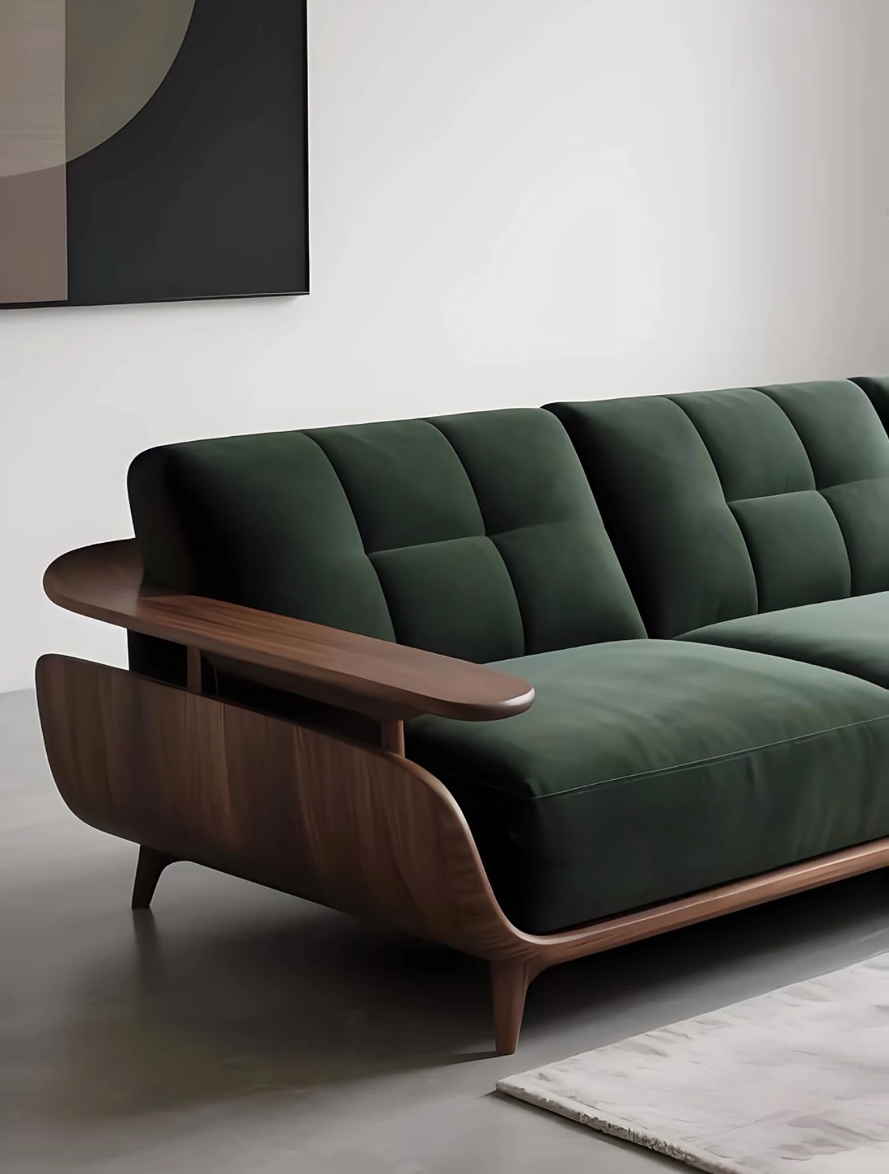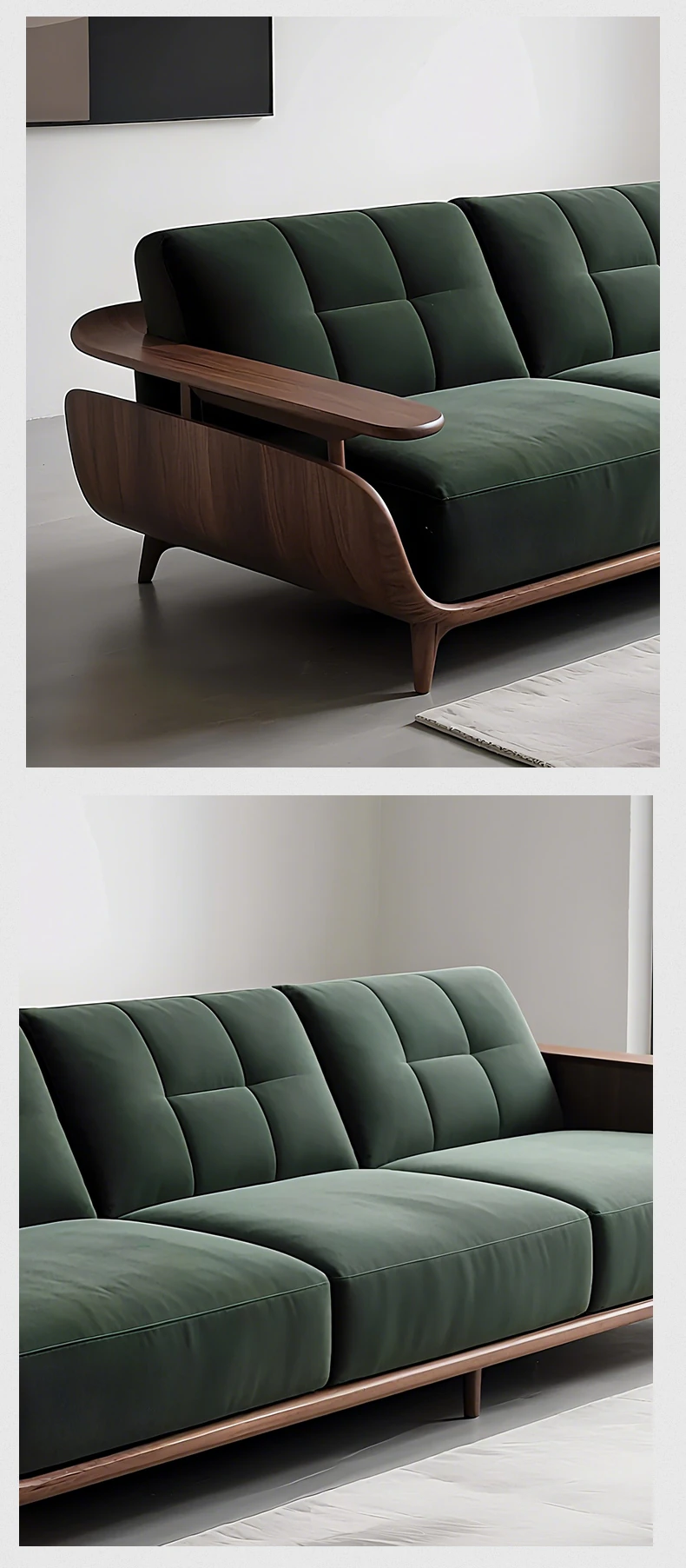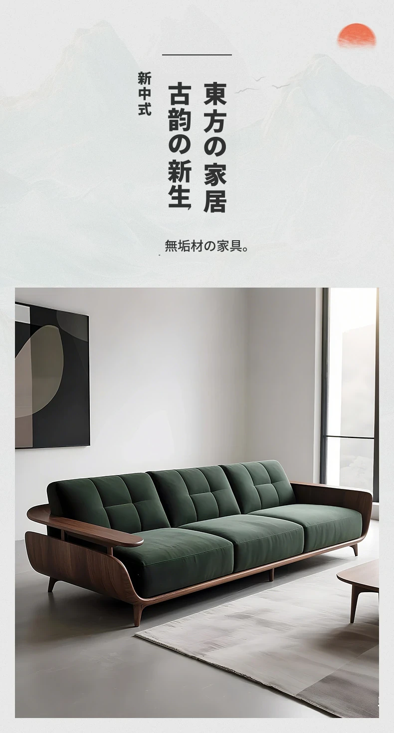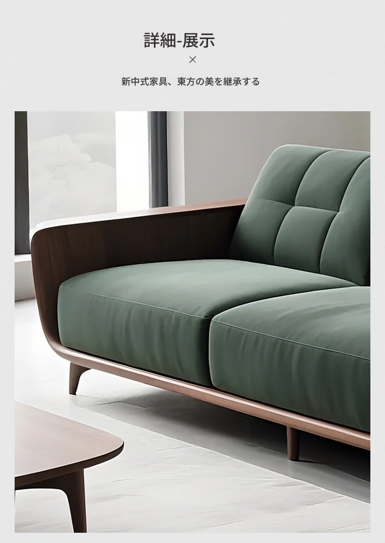 イタリアンミニマルな侘び寂びスタイルの北米産ブラックウォールナットソファ 2025年新作シンプルな無垢材ストレートソファで、洗練された空間を演出し、心安らぐリビングを実現します。