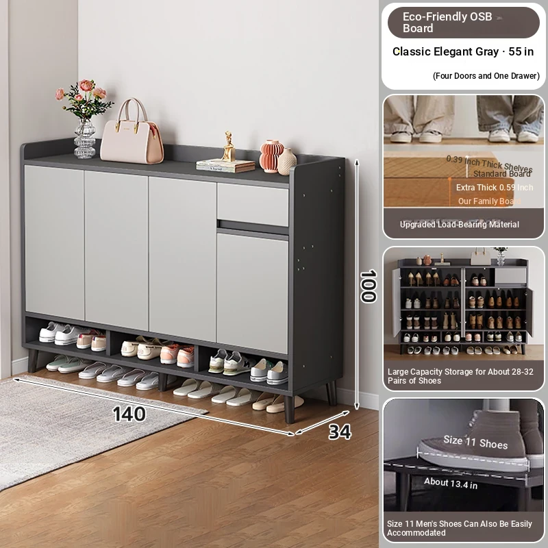 Super Load-Bearing [Solid Wood Ecological Board★Four Doors and One Draw] Mist Gray + Gold Elegant Gray 55.12in-12.60in-39.37in