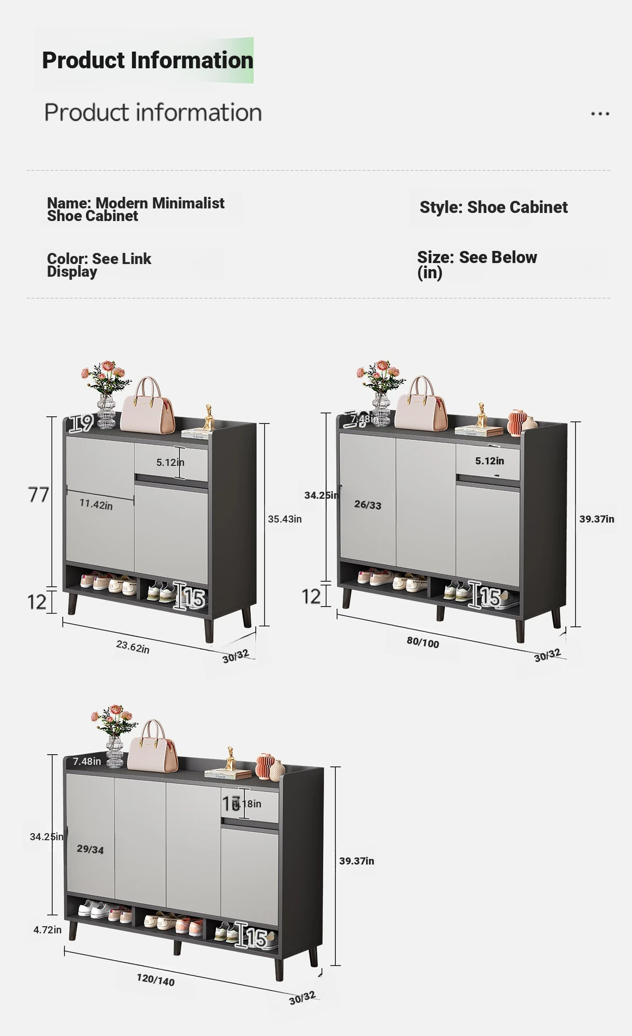 Carefully Selected High-Density Hdf Boards★Three Doors and One Draw] Mist Gray + Gold Elegant Gray 31.50in-12.60in-39.37in