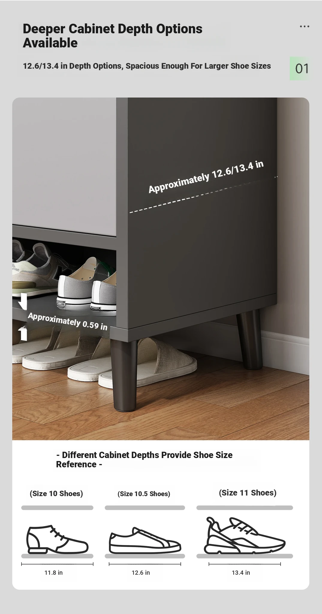 Wider Depth [Eco-Friendly European Pine Board]★Three Doors and One Draw] Mist Gray + Gold Elegant Gray 31.50in-13.39in-39.37in