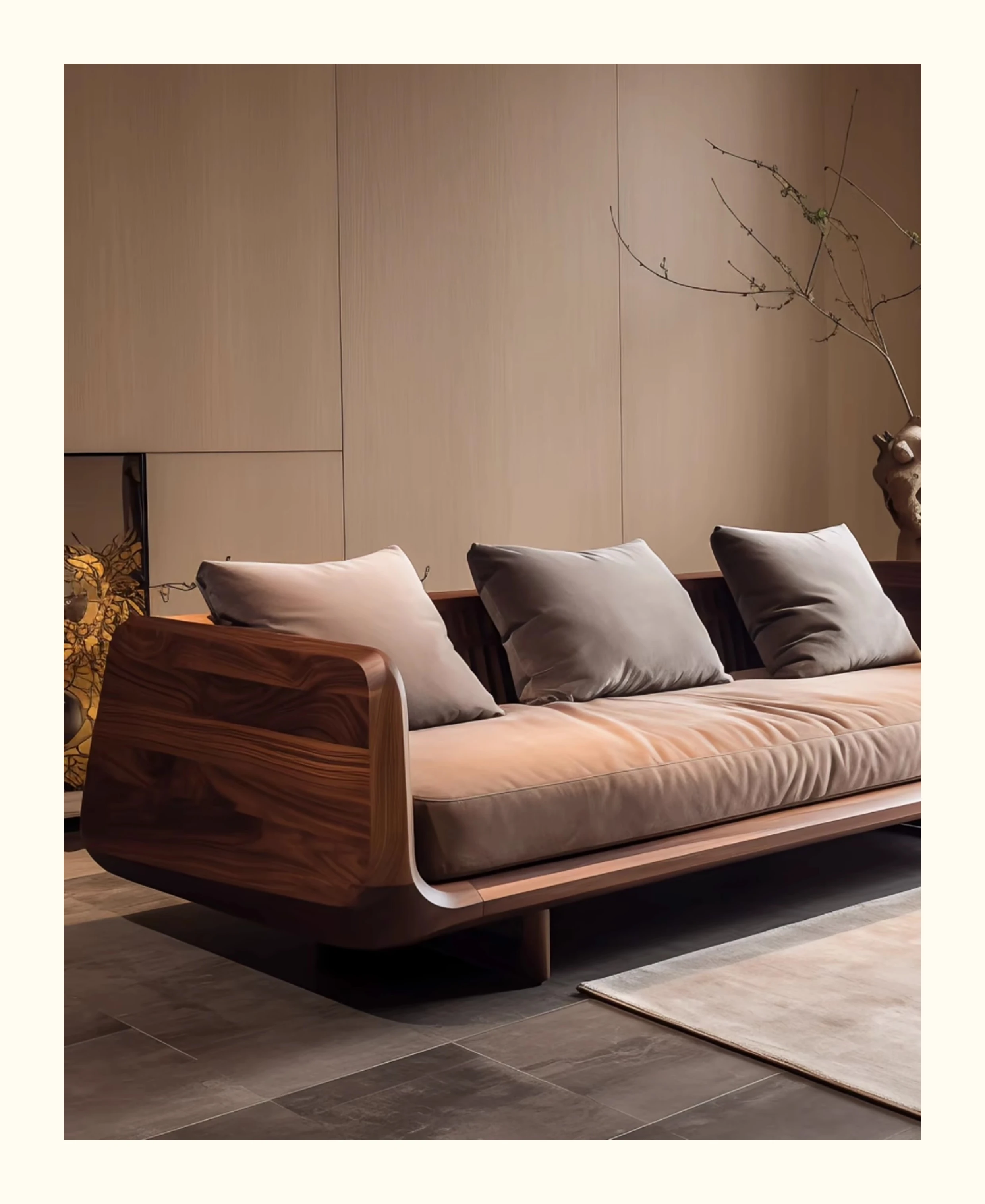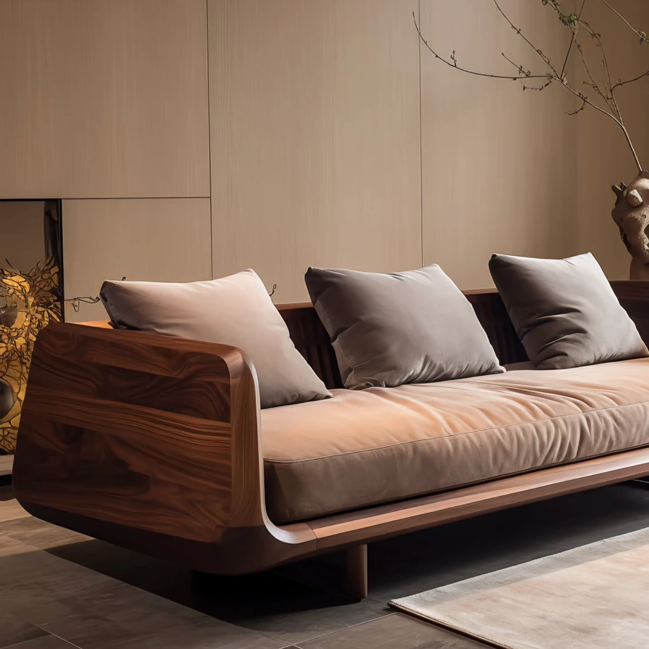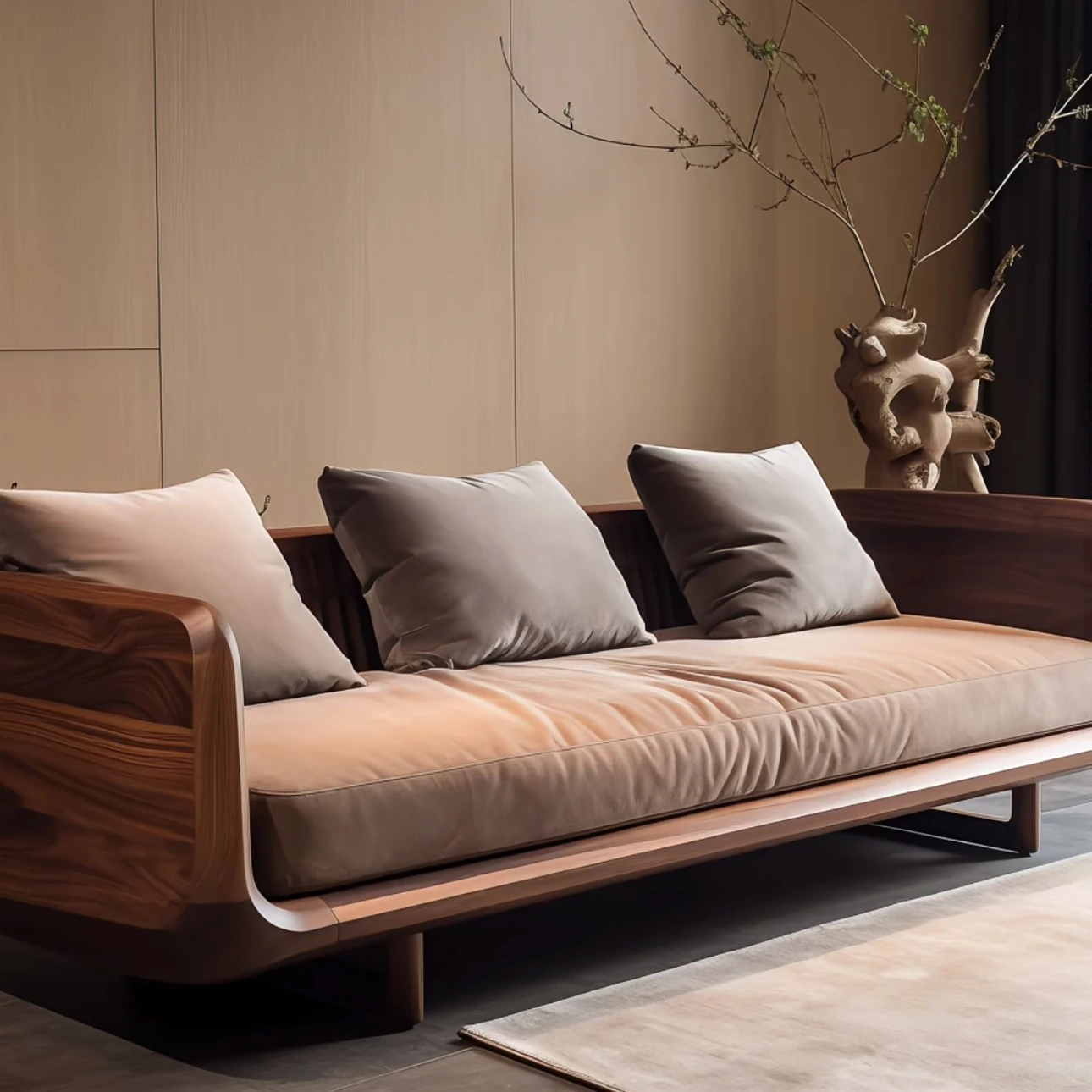 新中式高級感あふれる実木ソファ 2025年新作 軽やかで洗練されたデザイン リビングや休息エリアに最適な貴妃榻付きソファ これでおしゃれな空間を演出!