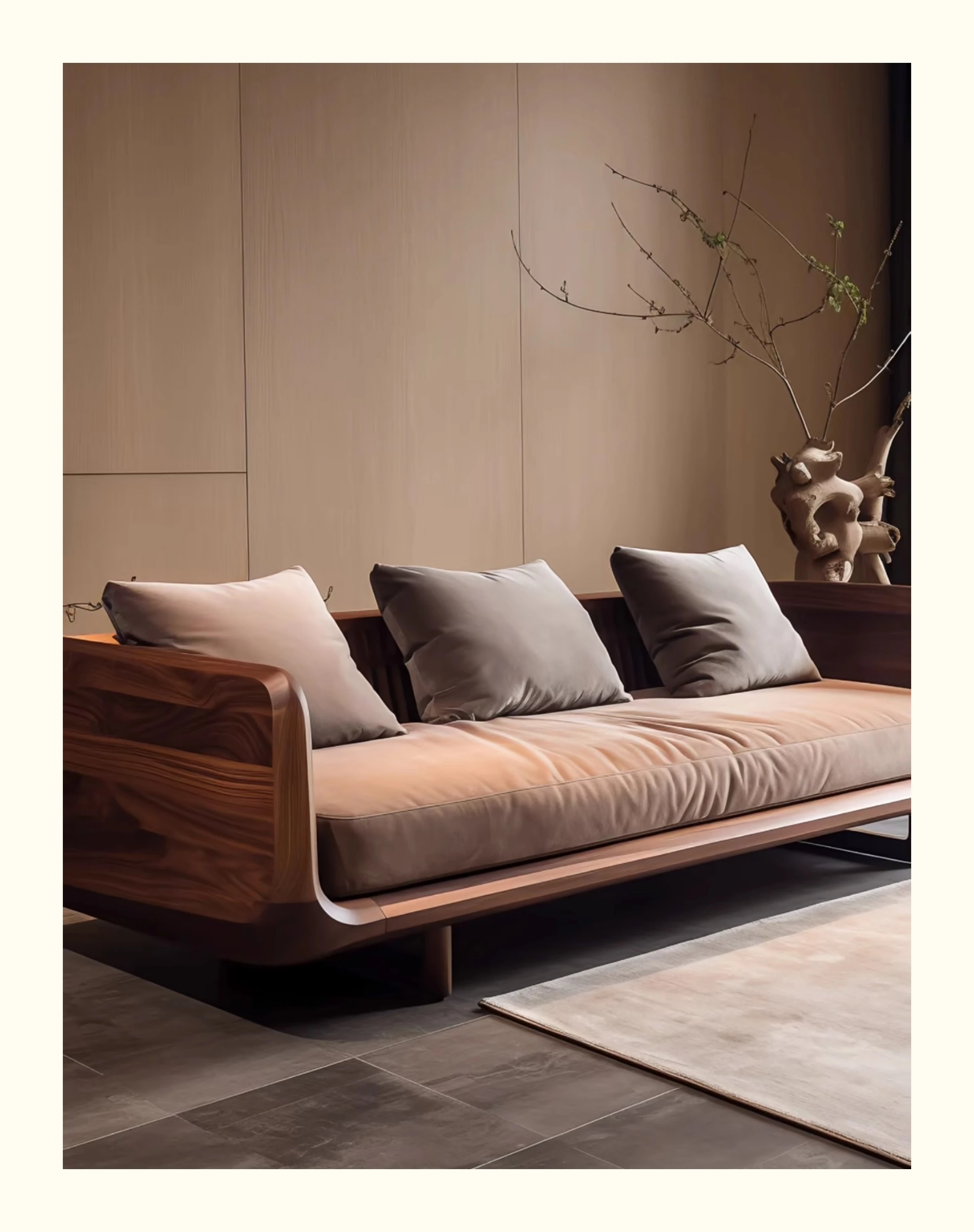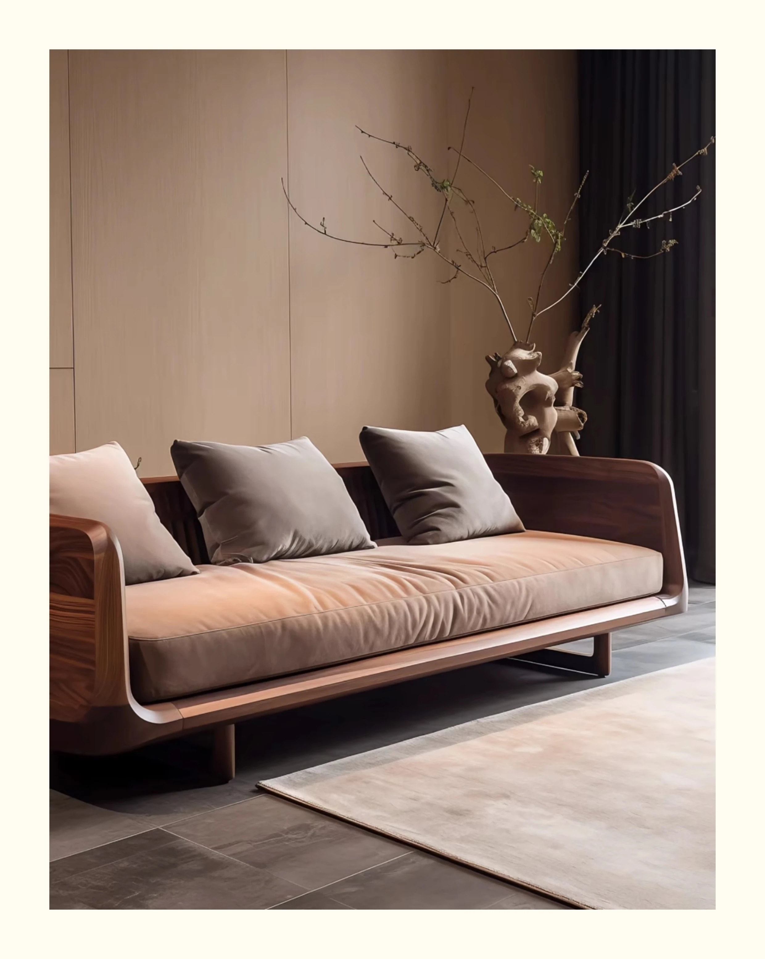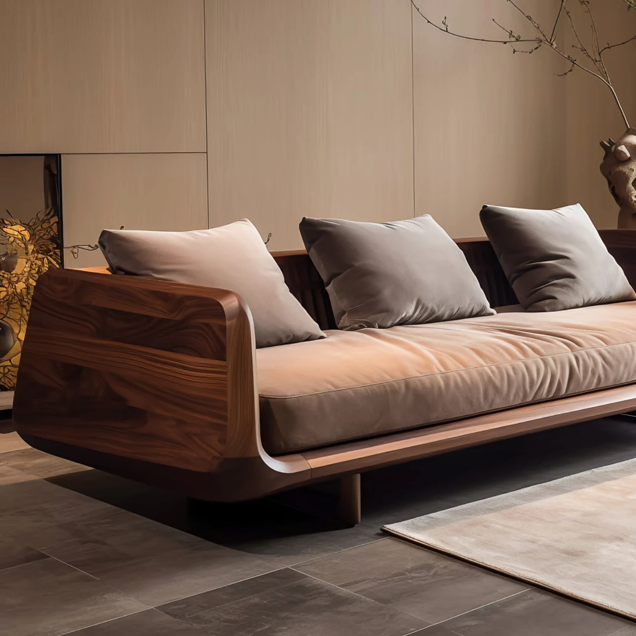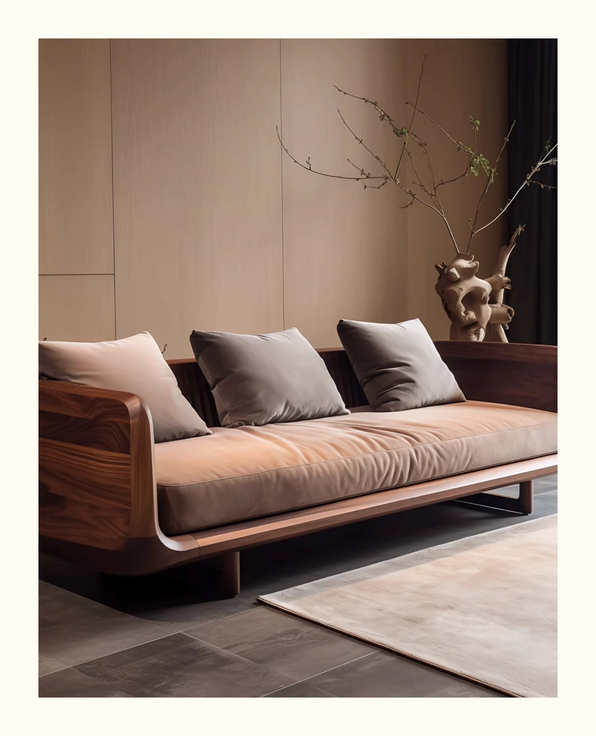 新中式高級感あふれる実木ソファ 2025年新作 軽やかで洗練されたデザイン リビングや休息エリアに最適な貴妃榻付きソファ これでおしゃれな空間を演出!