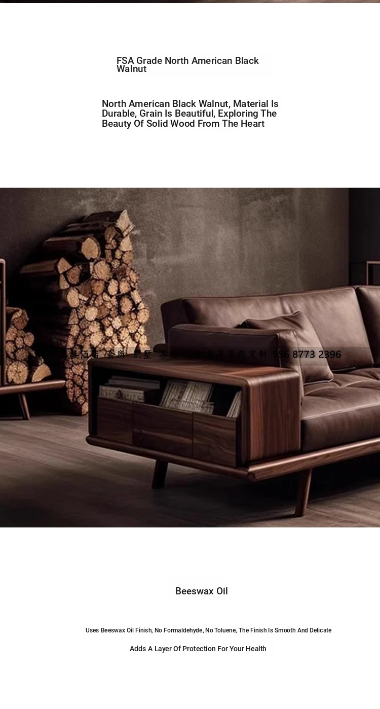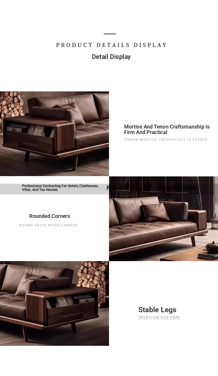 2025 New Chinese Style Solid Wood Sofa - Modern Minimalist Leather Sofa for Living Room, Villa Walnut Wood Design