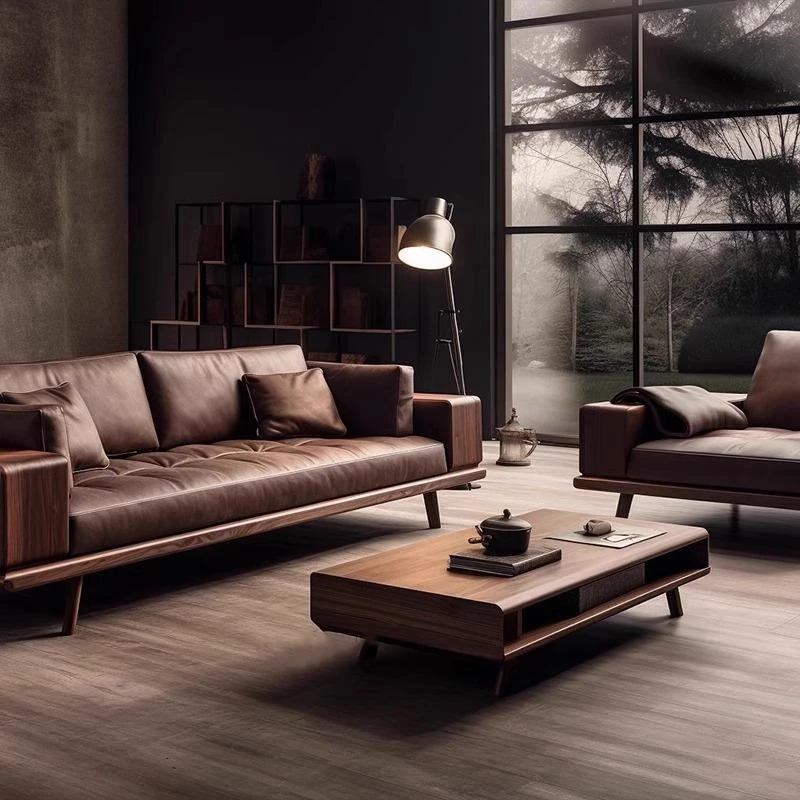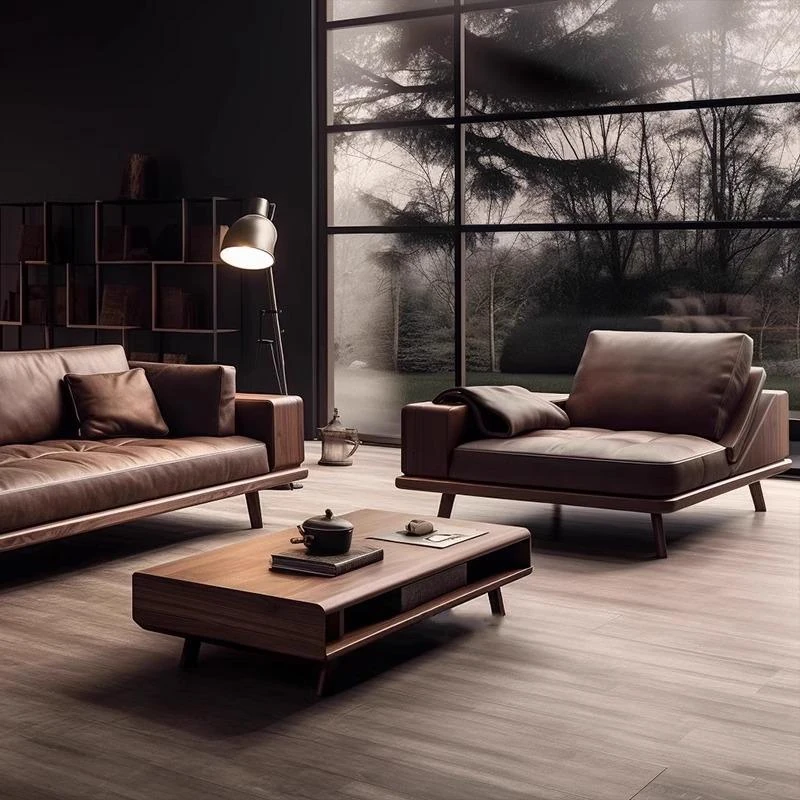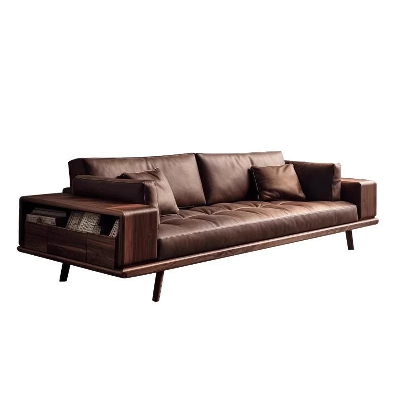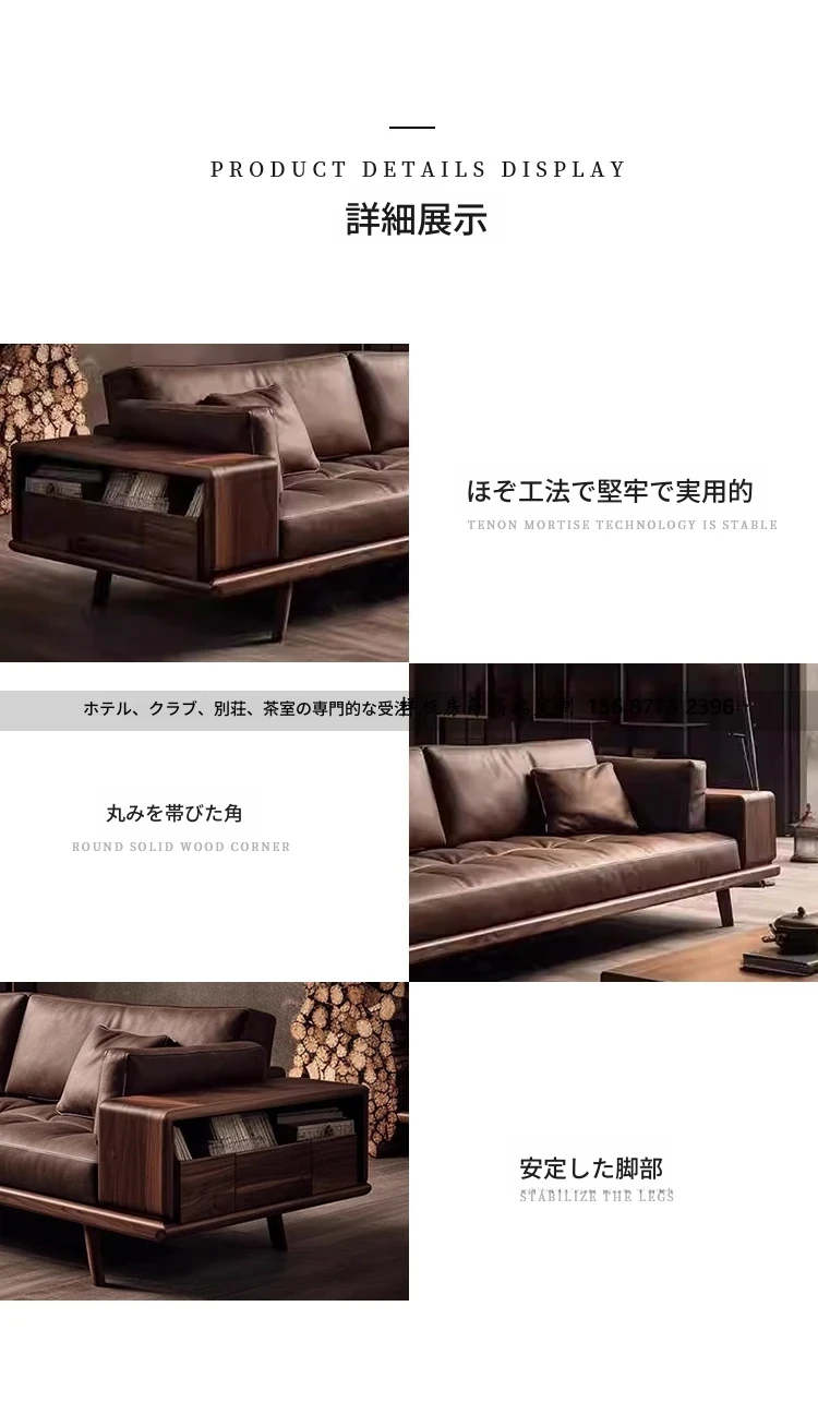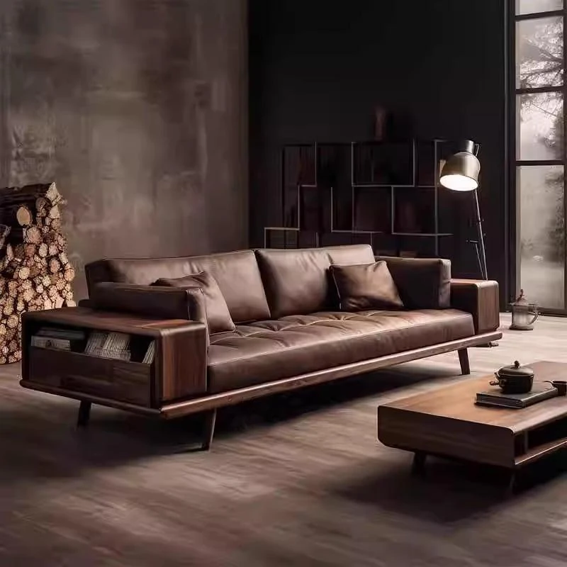 新中式の無垢材ソファ2025新作!リビングにぴったりの本革製、モダンでシンプルなデザイン。高級ウォールナット材を使用した、別荘風のスタイリッシュな一品。快適な座り心地で、上質なひとときをお楽しみください!