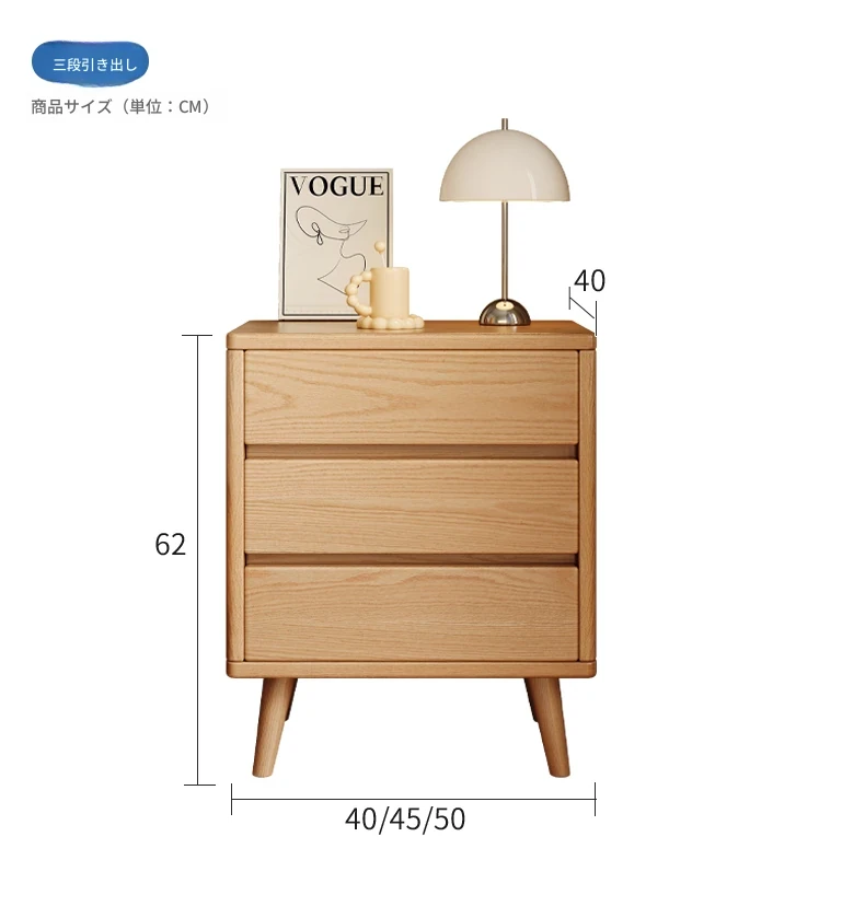 【無垢エコボード】ナチュラルウッドカラー トリプル引き出し 40*40*62cm