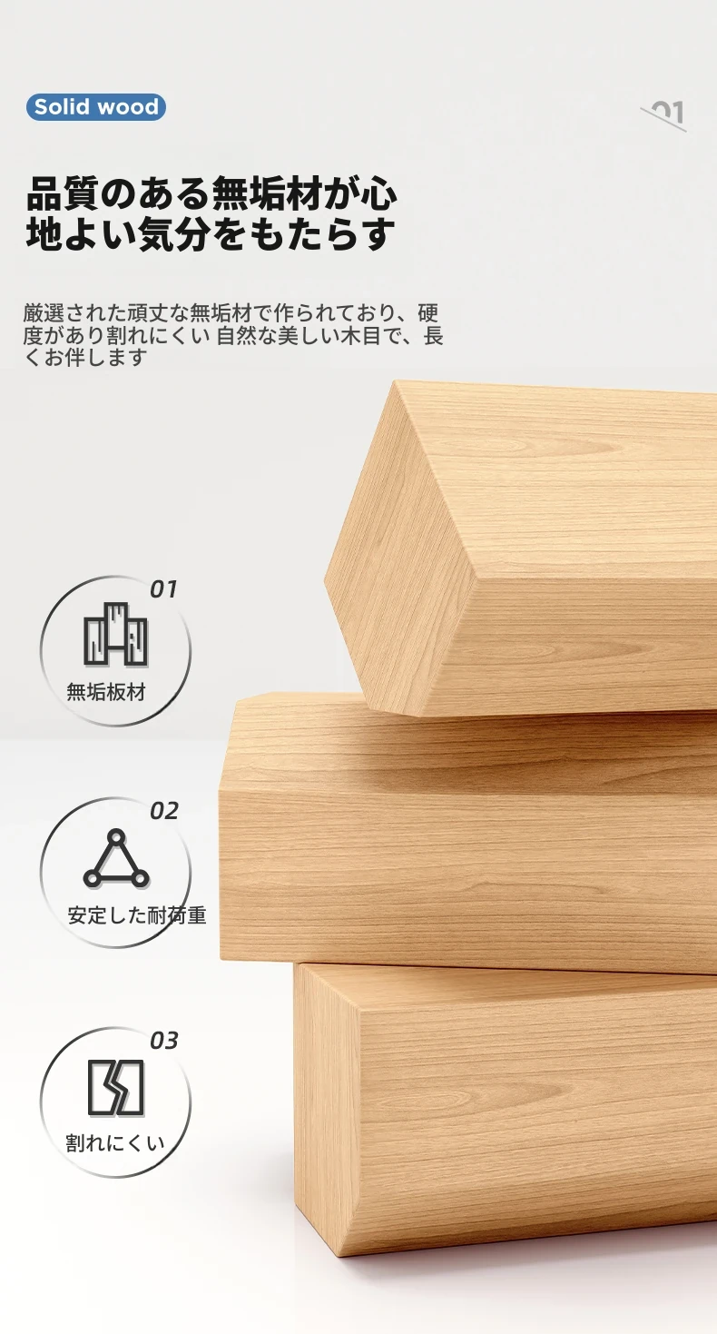 【無垢エコボード】ナチュラルウッドカラー トリプル引き出し 50*40*62cm