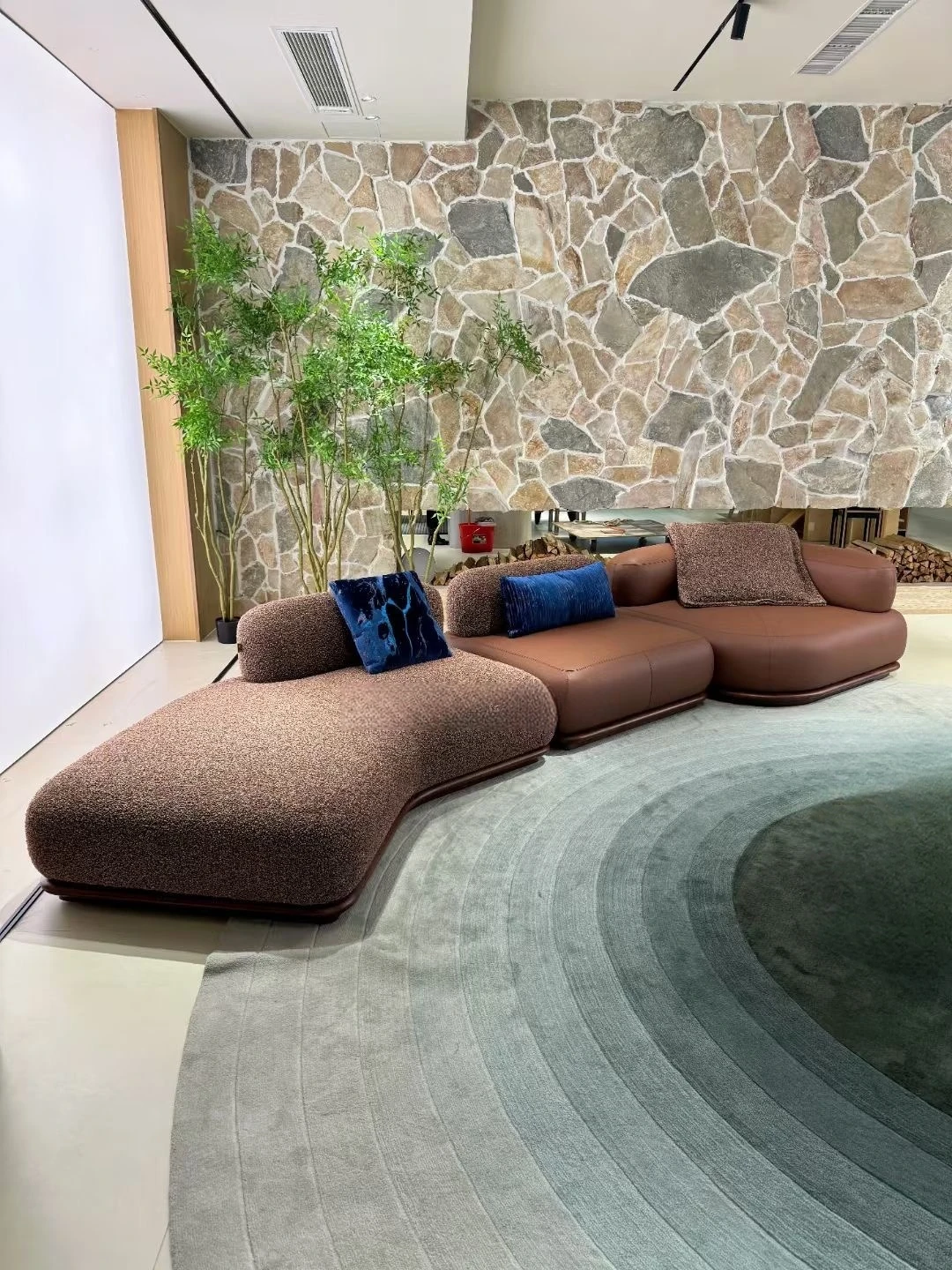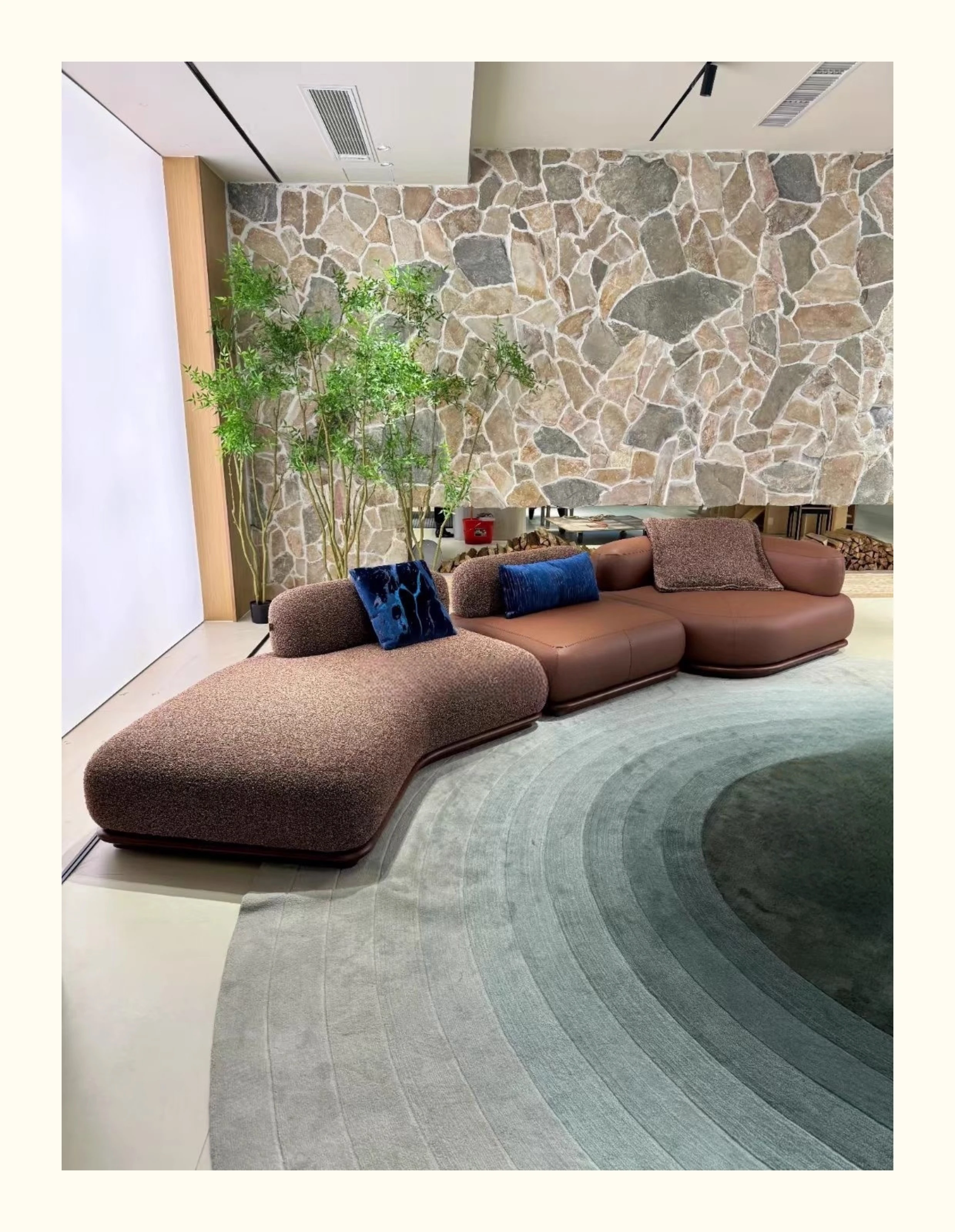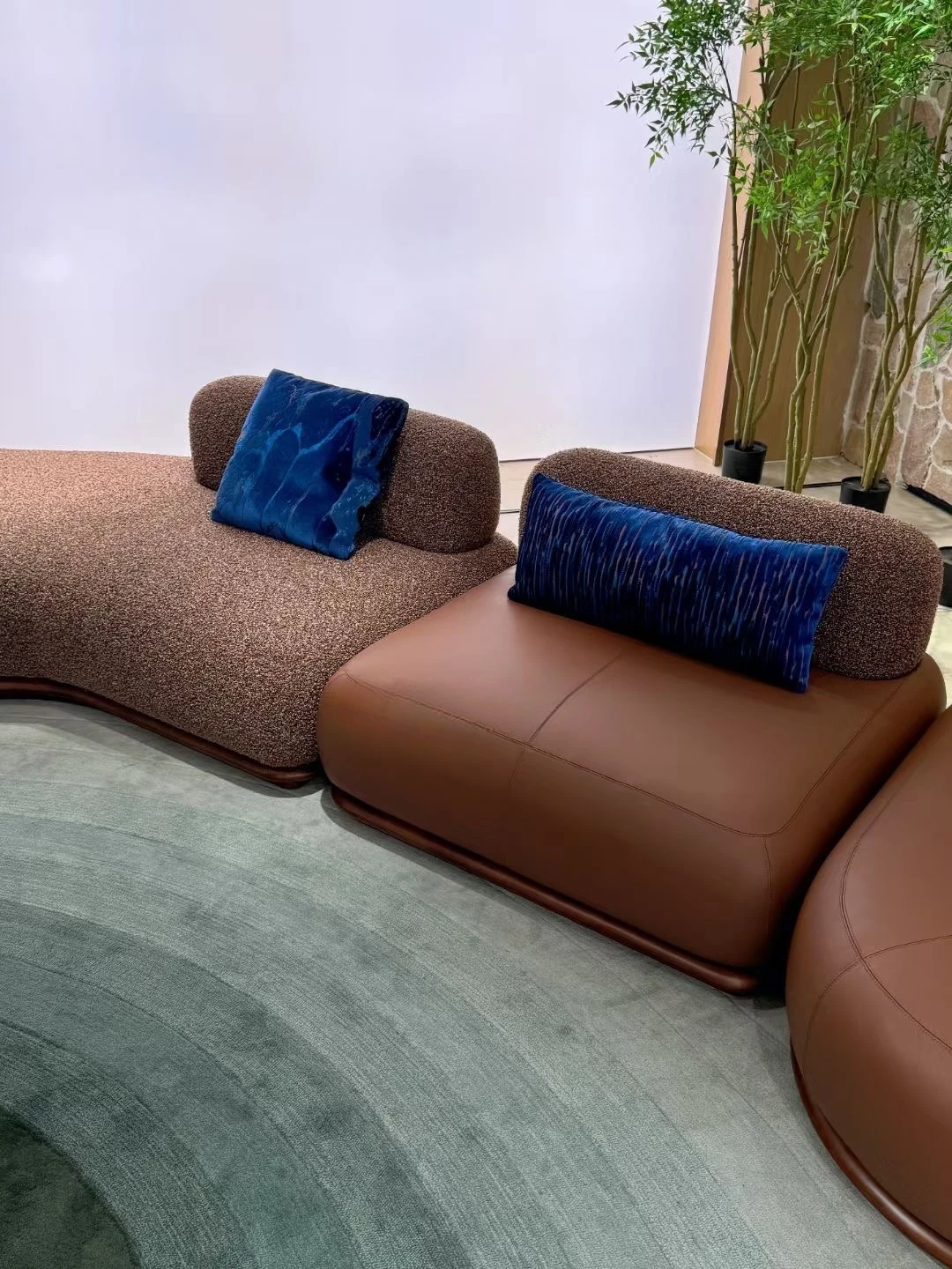 2025年新作!イタリアンミニマルデザインの無垢材ソファセット - シンプルで洗練されたリビング、別荘にぴったり!ラグジュアリーな曲線デザインで、家の空間を優雅に演出します。