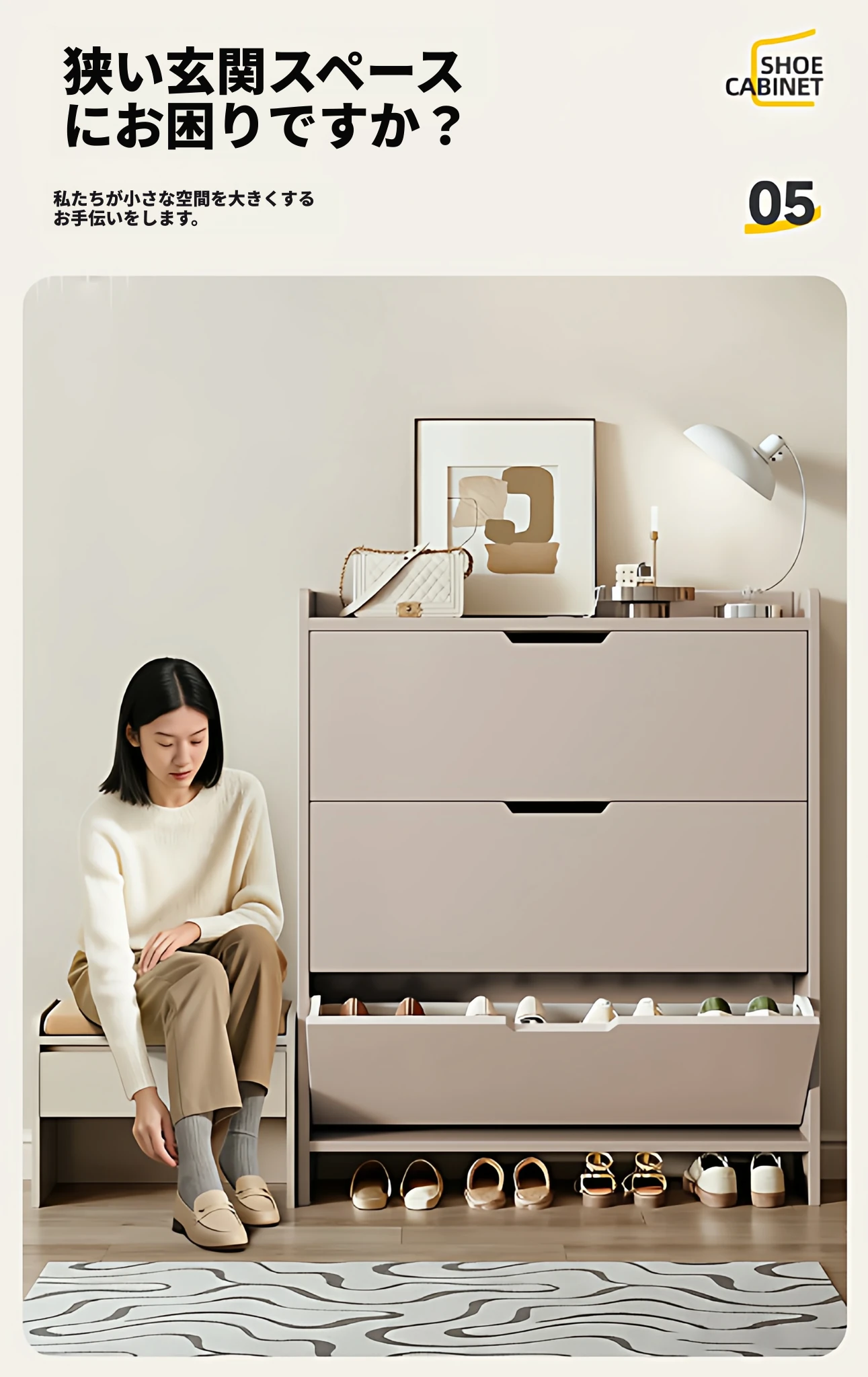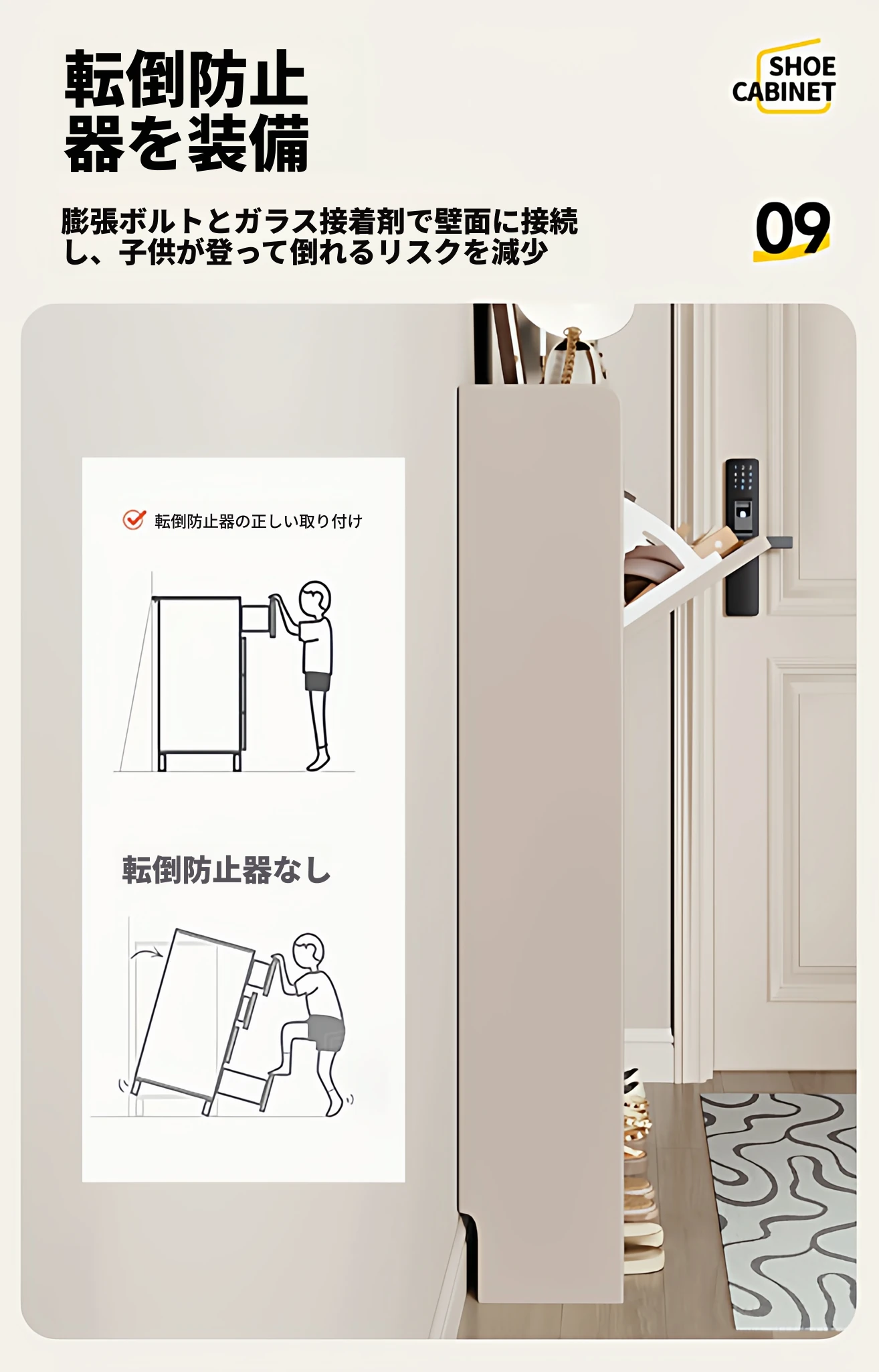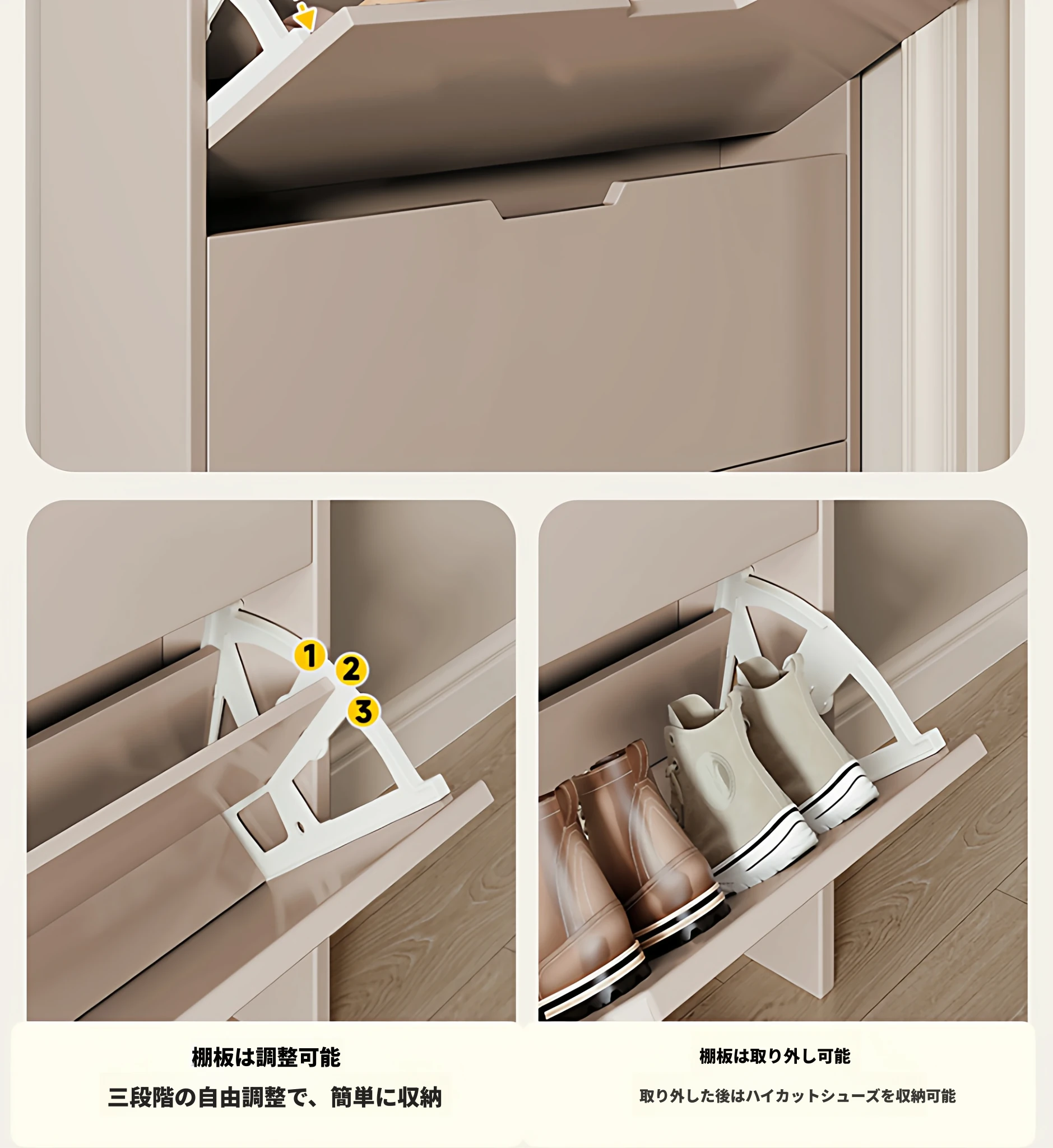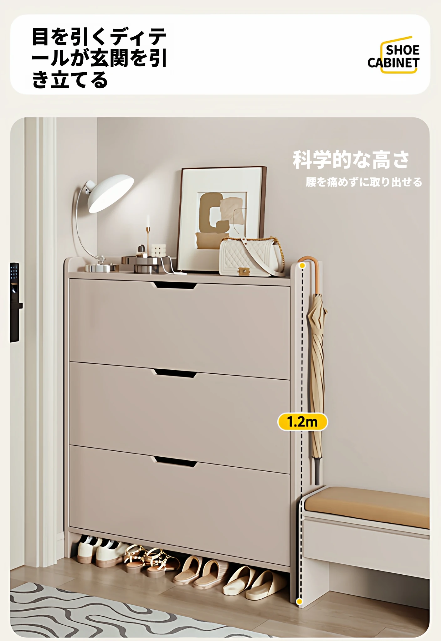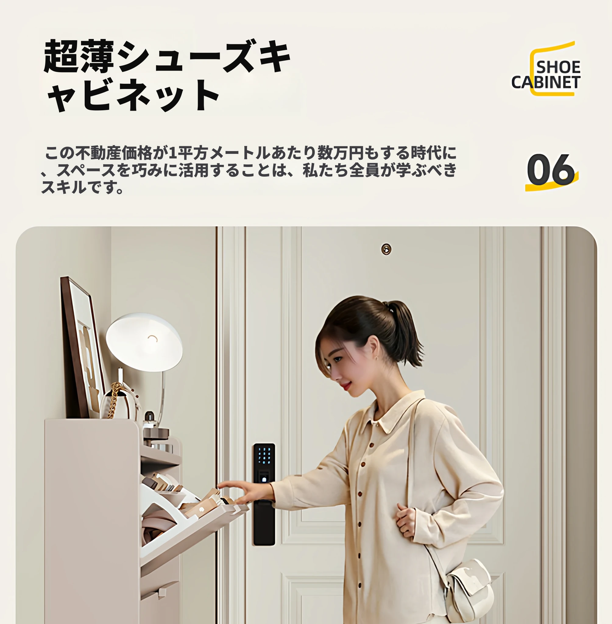 2025年新作!おしゃれな無垢材の超薄型翻斗シューズキャビネット - 家庭用玄関収納、狭いスペースでもスマートに使える壁付けデザイン!お玄関を美しく整頓しましょう!