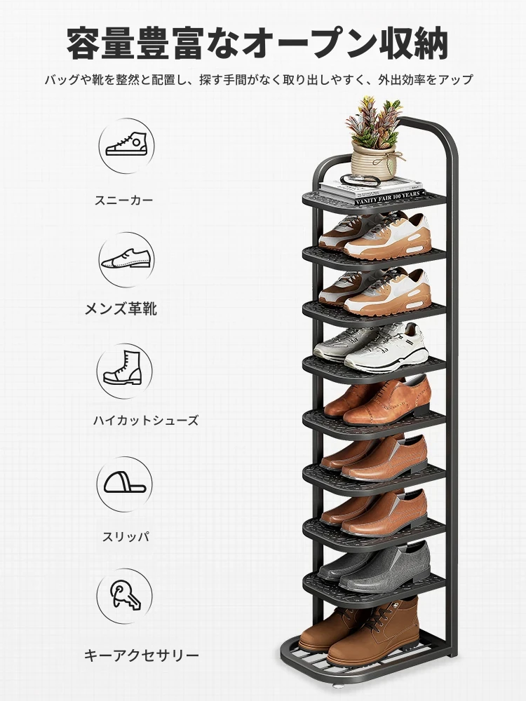 2025年新作!折りたたみ式シューズラック - スリムでスタイリッシュなデザイン、家庭用玄関に最適!省スペースで収納力抜群、シンプルな室内収納を実現する多層シューズキャビネット。あなたの靴を美しく整理整頓!