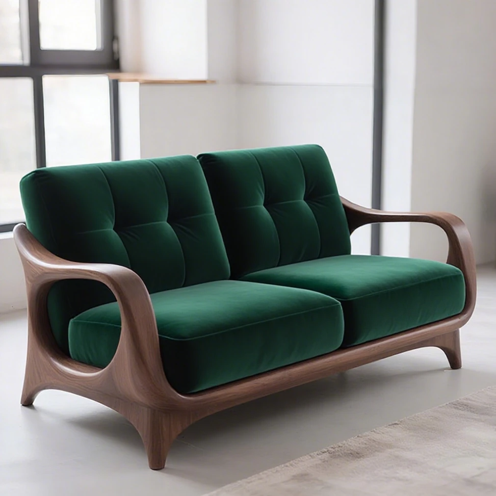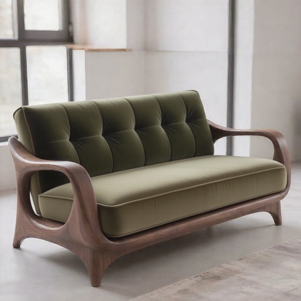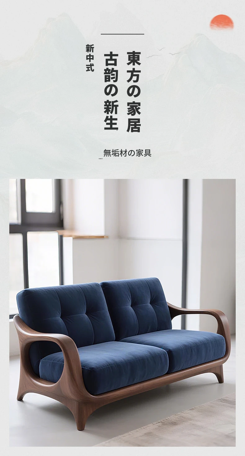 2025年新作!高級胡桃木製の無垢材ソファー - 中古風デザインで、客間やホテルの接待にも最適な布製ソファー。居心地抜群で、おしゃれな空間を演出します!