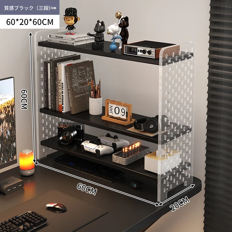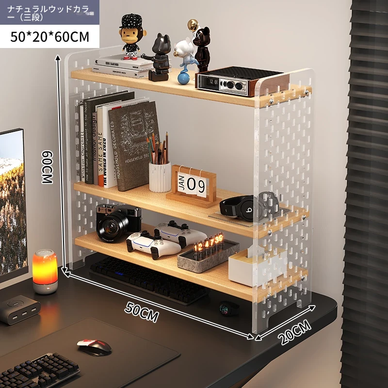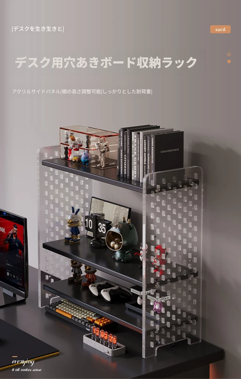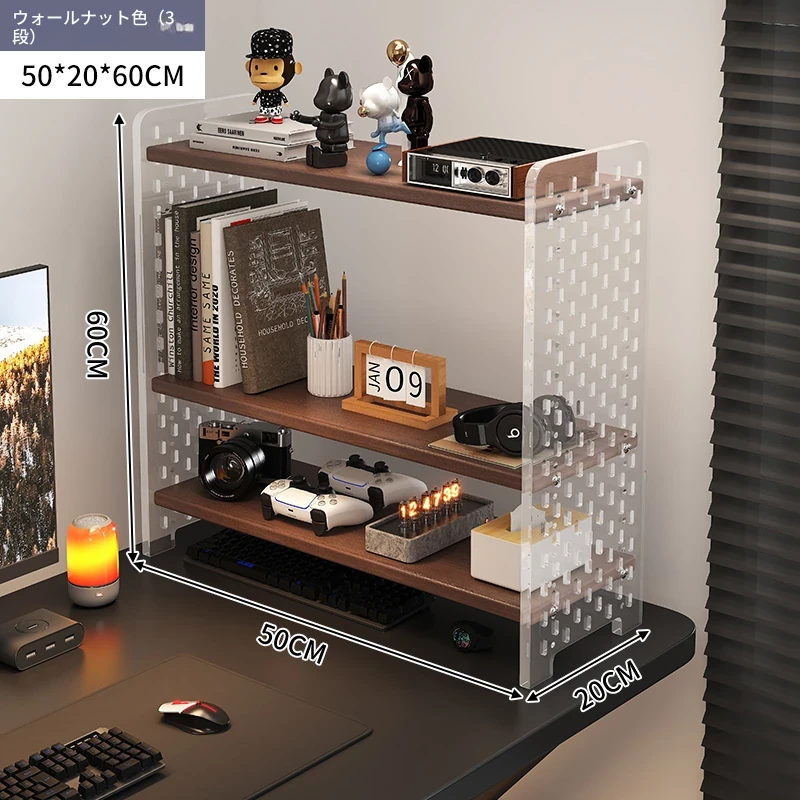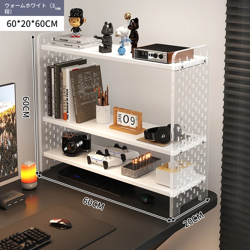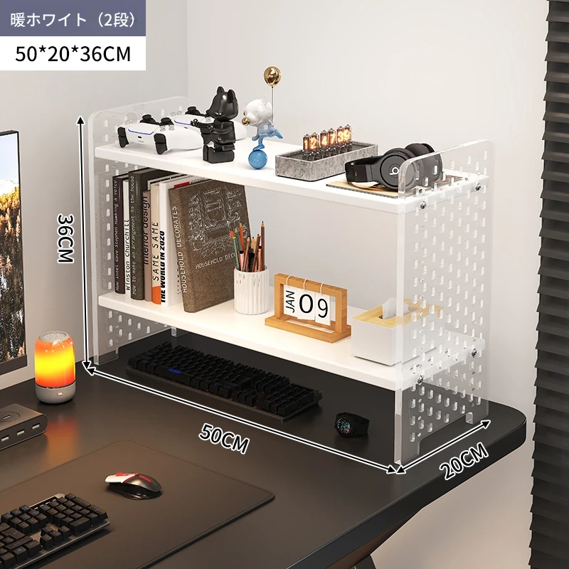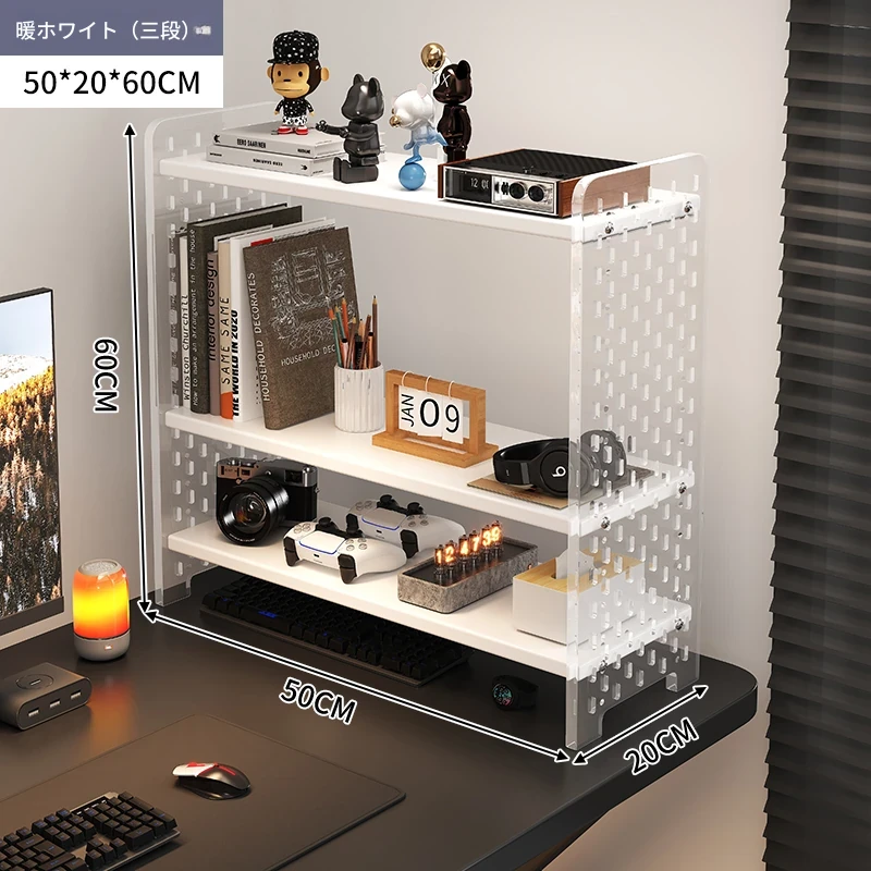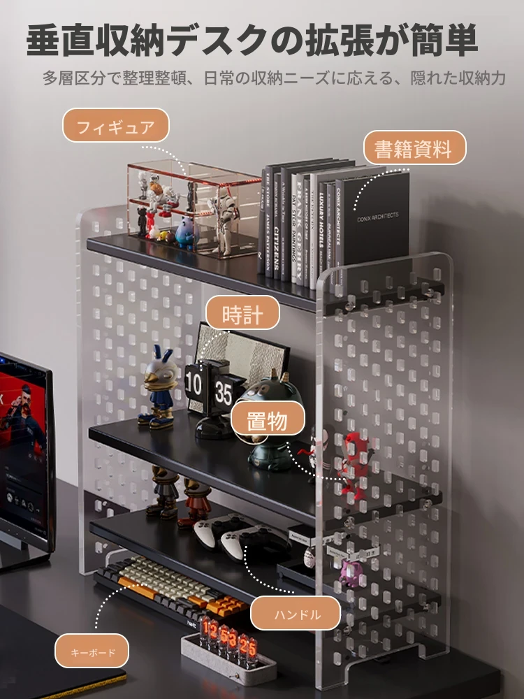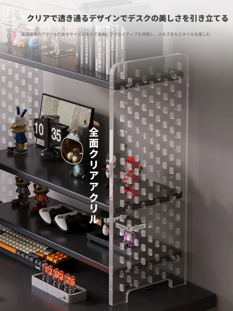 デスク用アクリル穴あきボード収納ラック - 多層型の書籍&デスク整理棚、作業スペースをスッキリ整頓!おしゃれで機能的なデザインで、あなたのデスクをスタイリッシュに演出します。