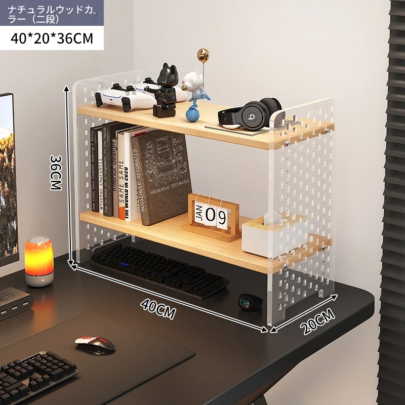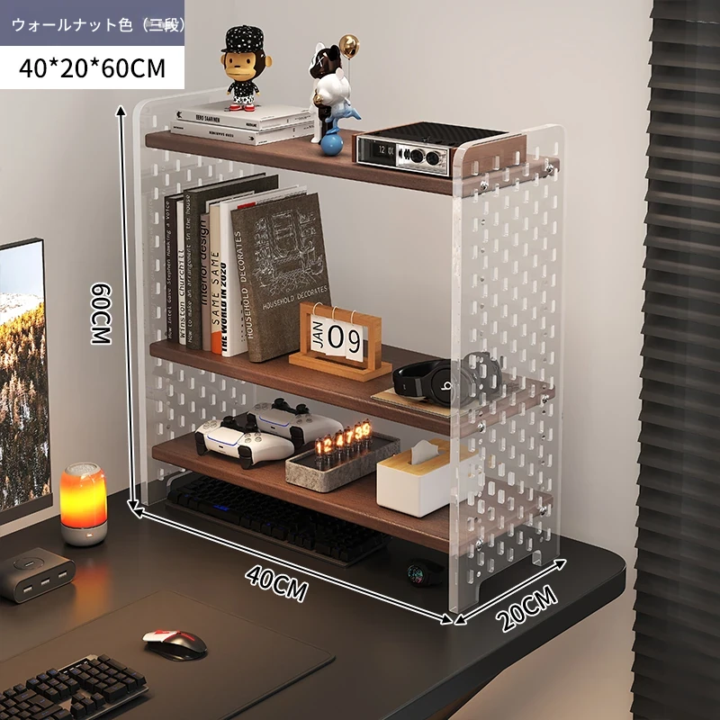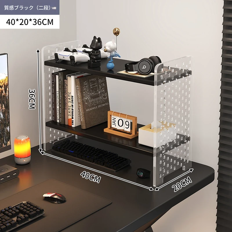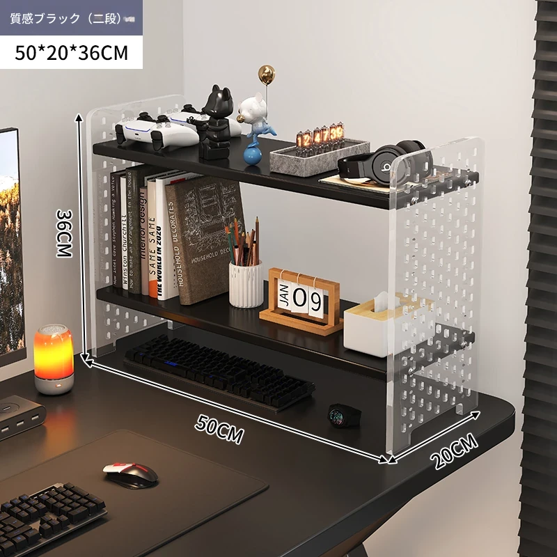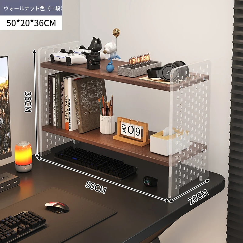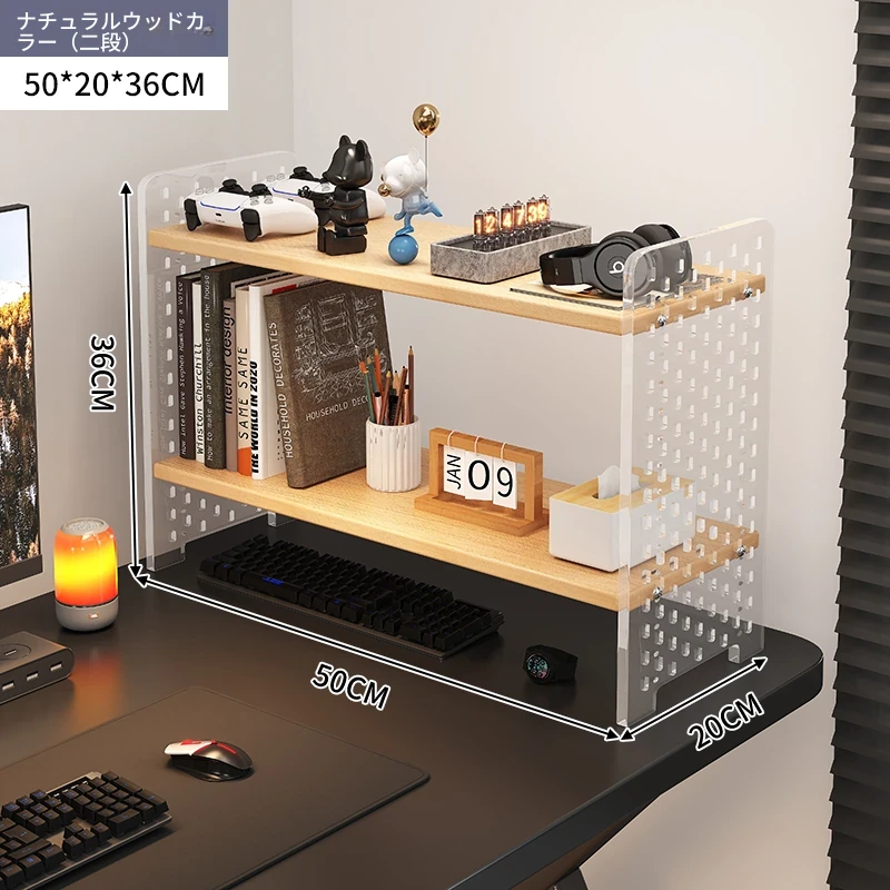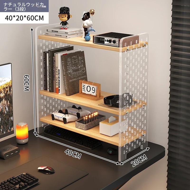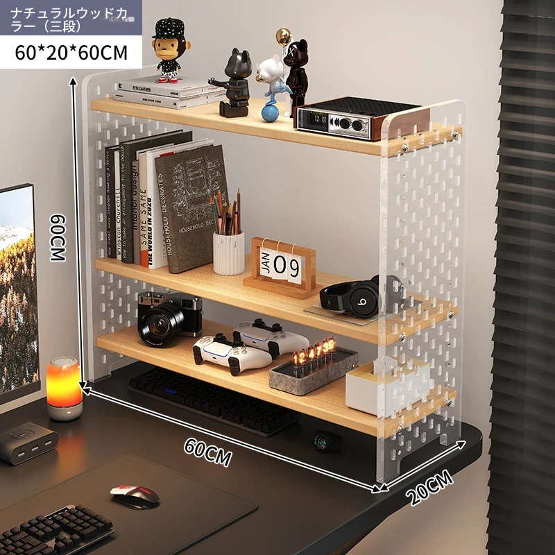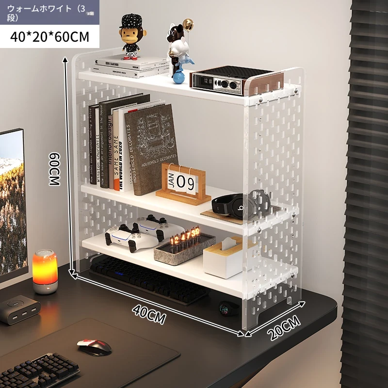 デスク用アクリル穴あきボード収納ラック - 多層型の書籍&デスク整理棚、作業スペースをスッキリ整頓!おしゃれで機能的なデザインで、あなたのデスクをスタイリッシュに演出します。