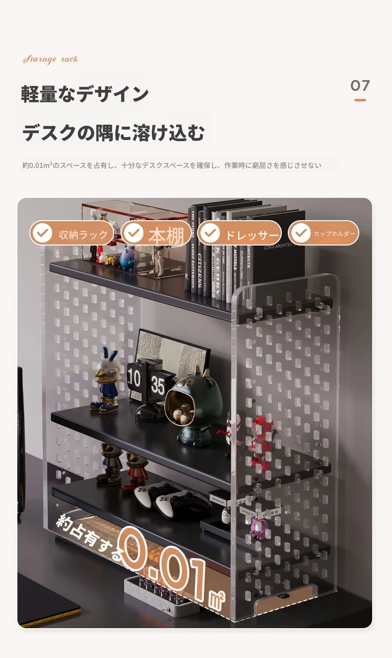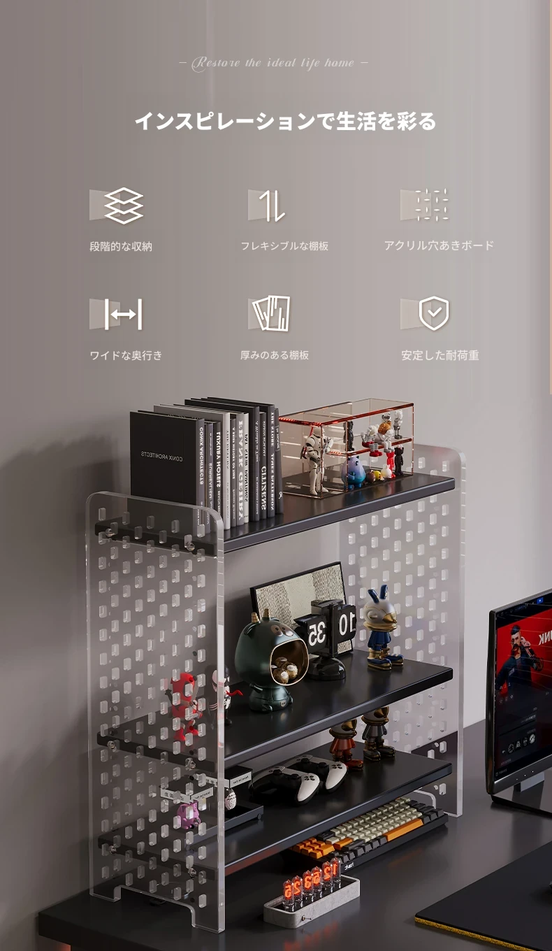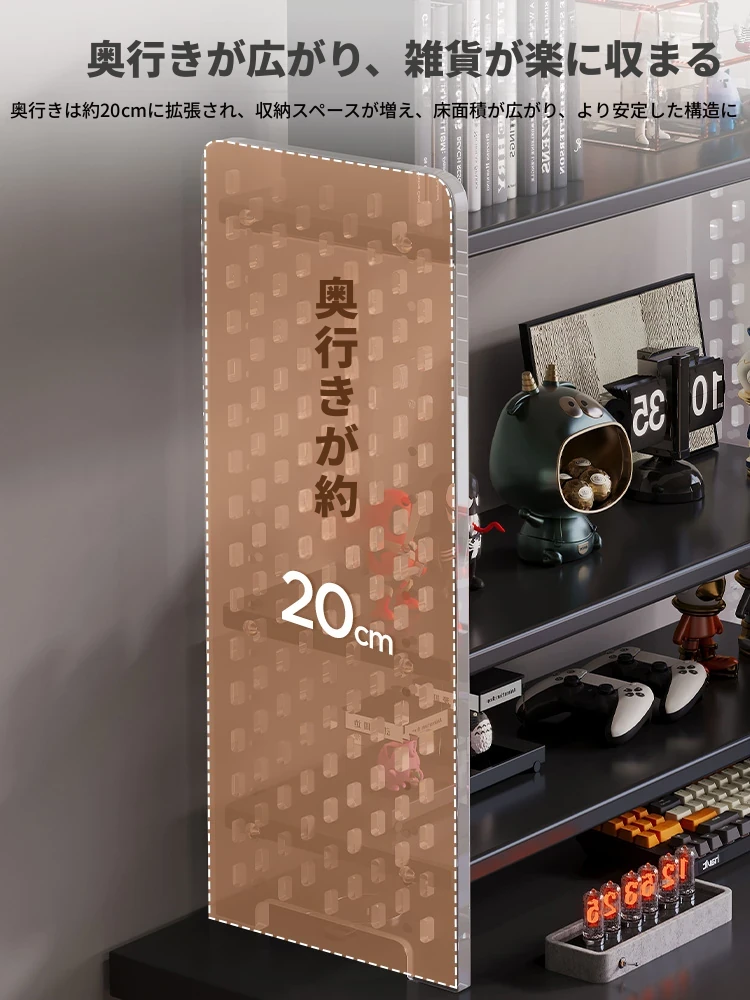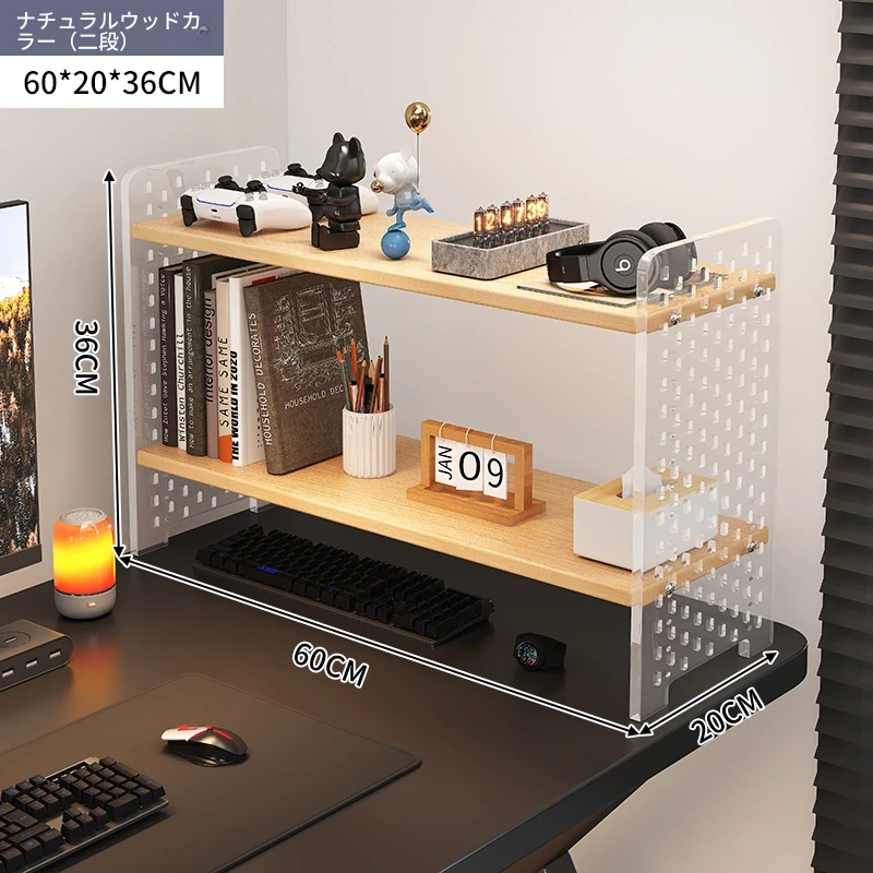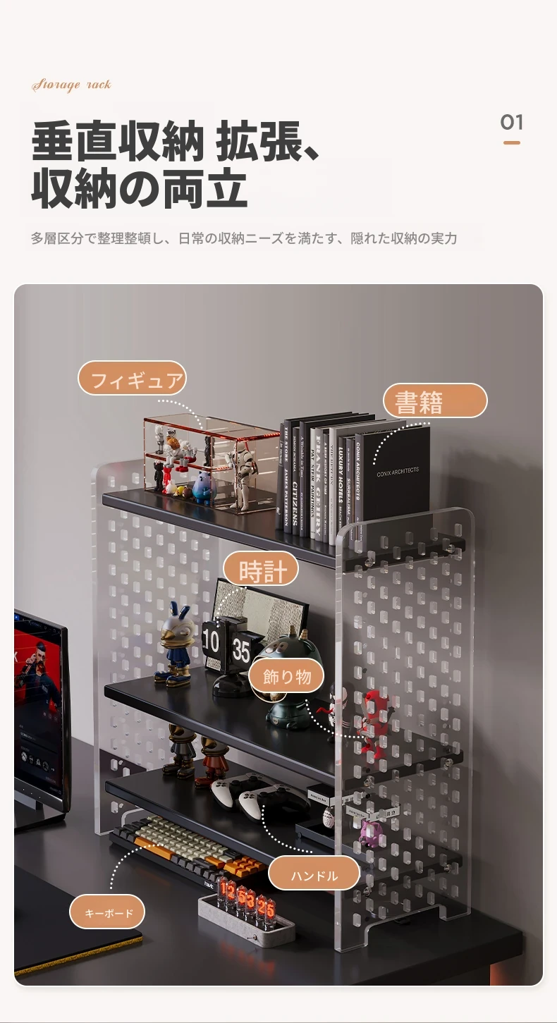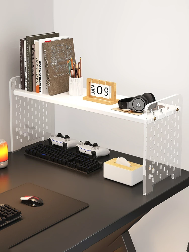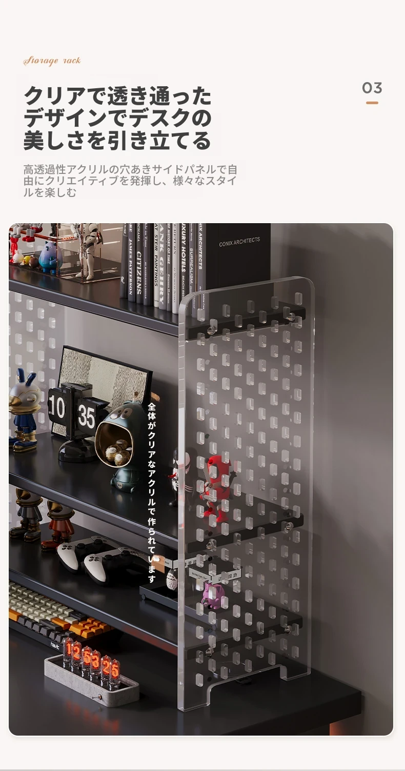 デスク用アクリル穴あきボード収納ラック - 多層型の書籍&デスク整理棚、作業スペースをスッキリ整頓!おしゃれで機能的なデザインで、あなたのデスクをスタイリッシュに演出します。