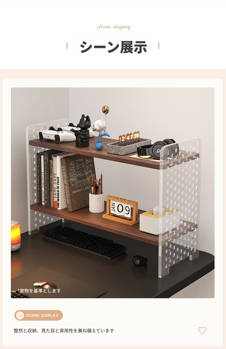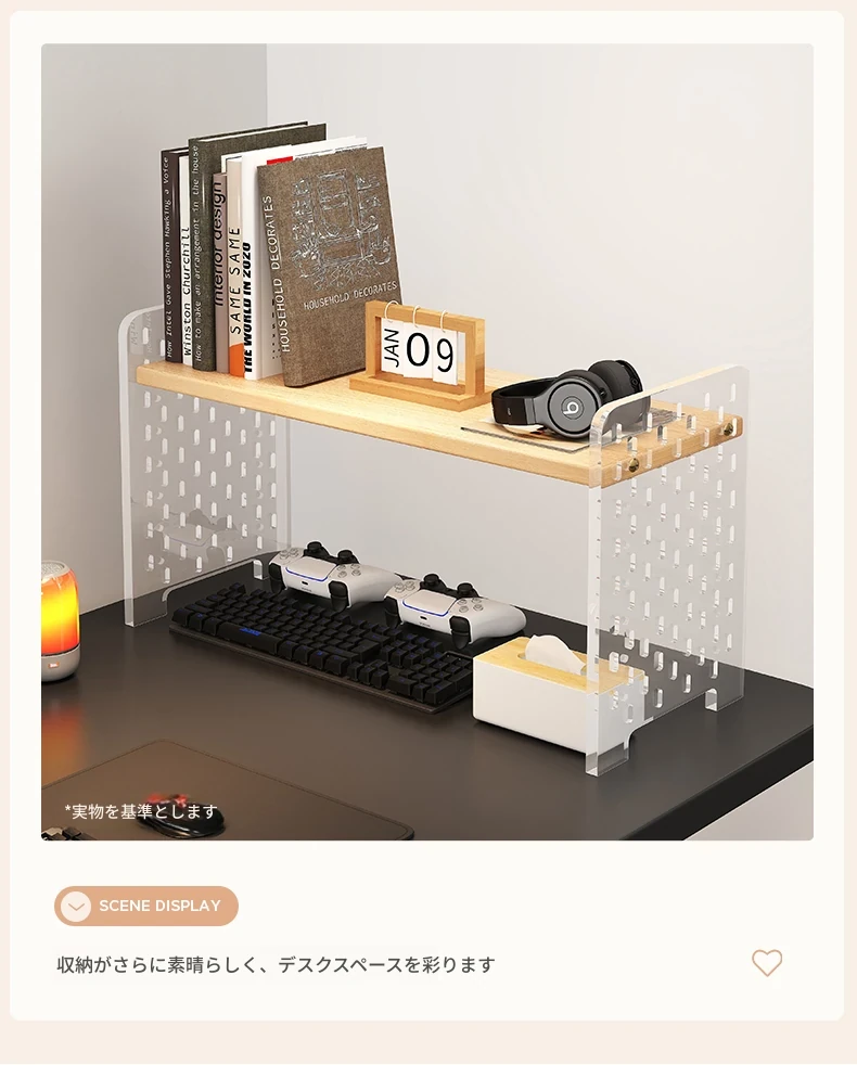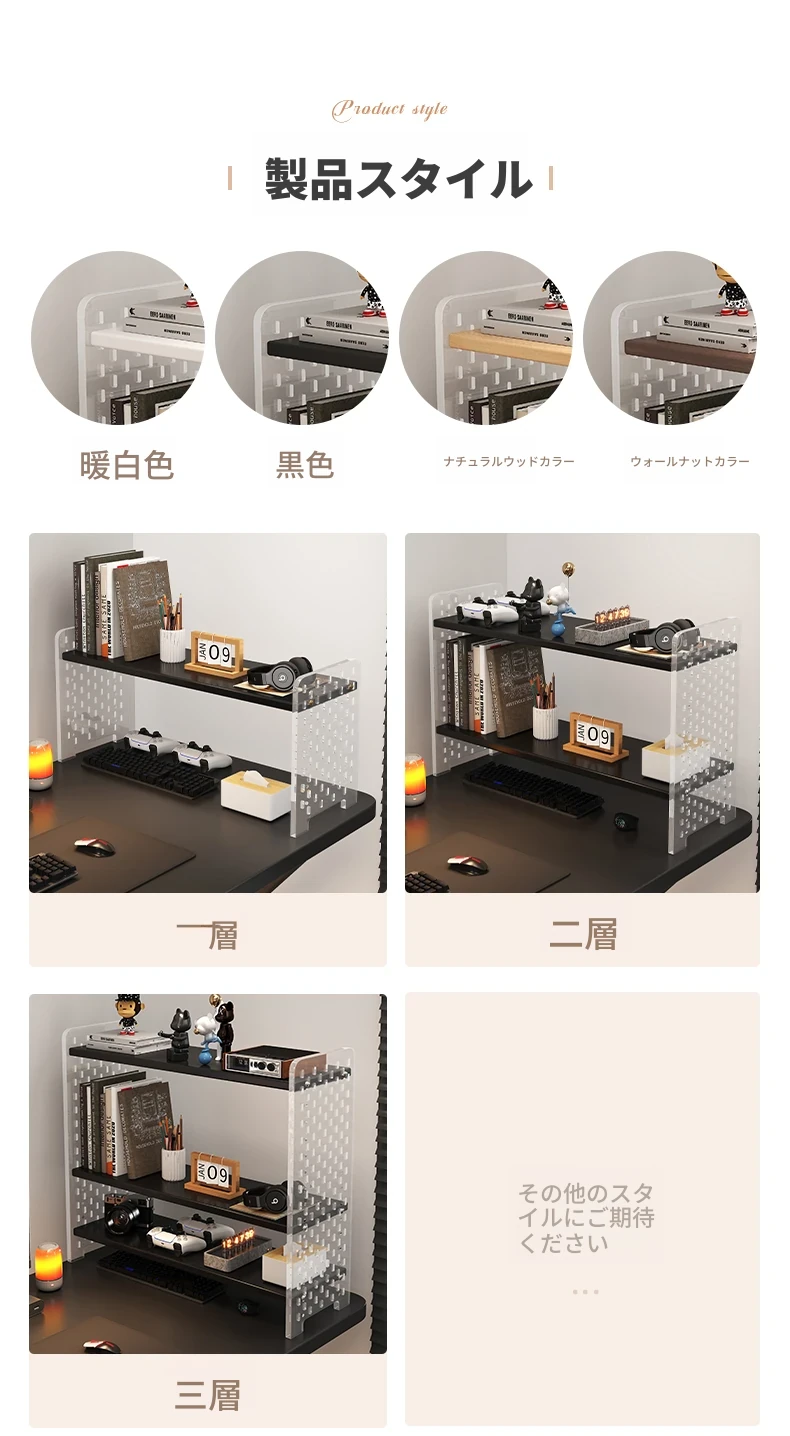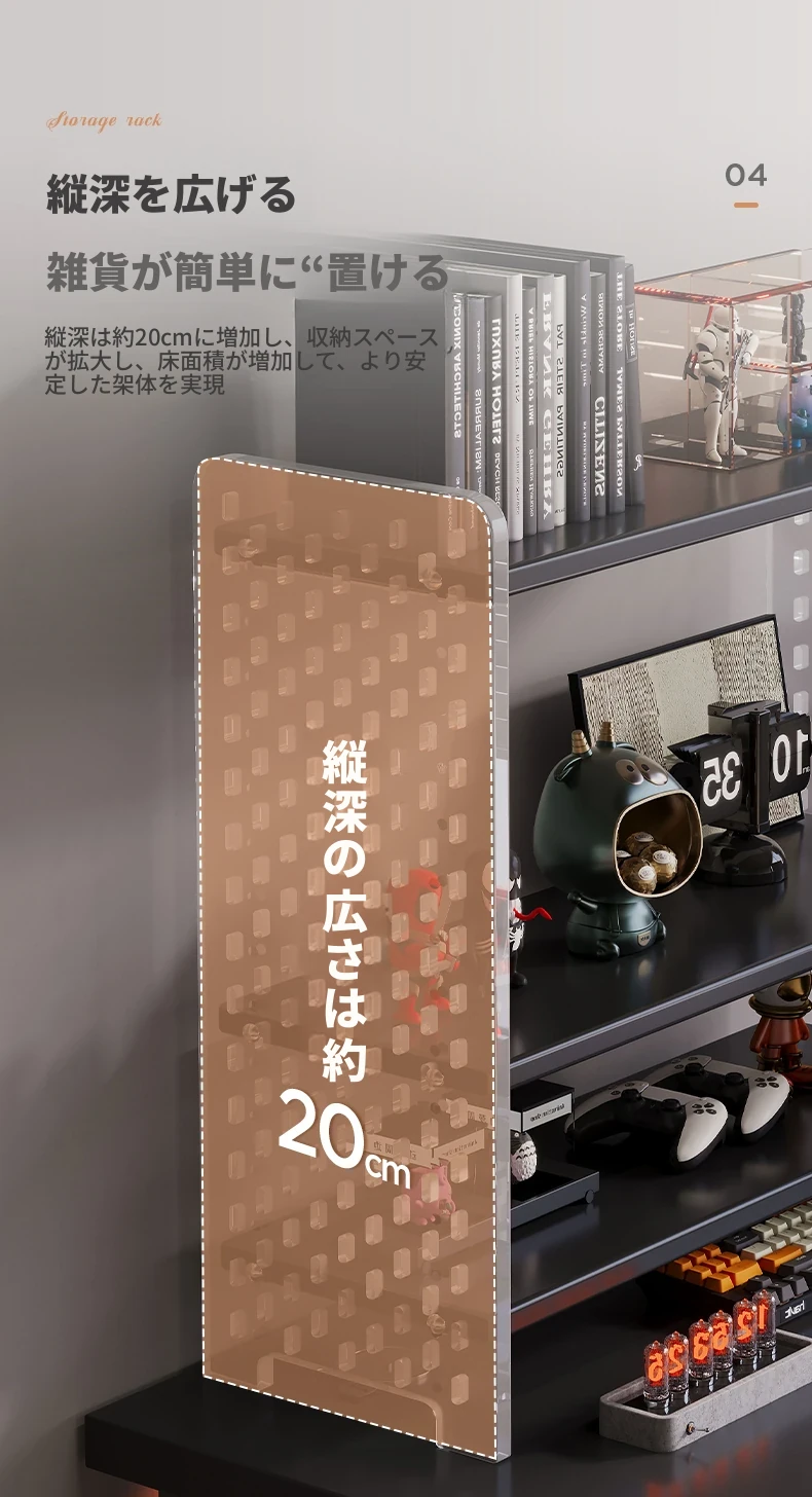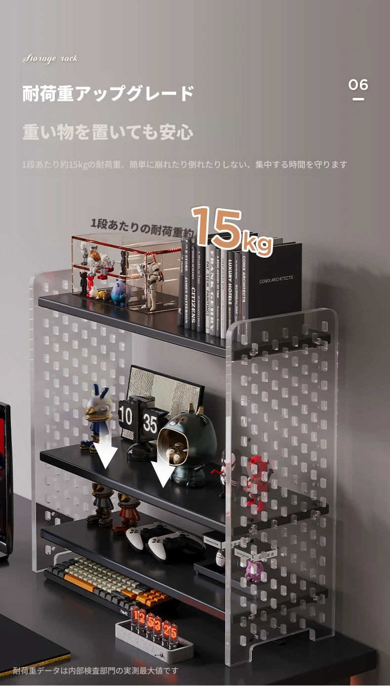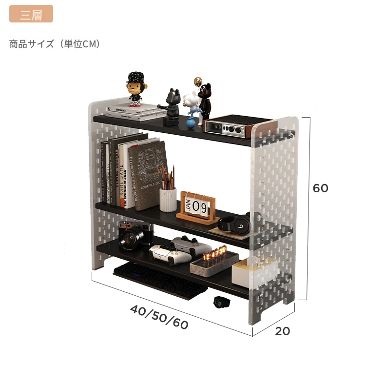 デスク用アクリル穴あきボード収納ラック - 多層型の書籍&デスク整理棚、作業スペースをスッキリ整頓!おしゃれで機能的なデザインで、あなたのデスクをスタイリッシュに演出します。
