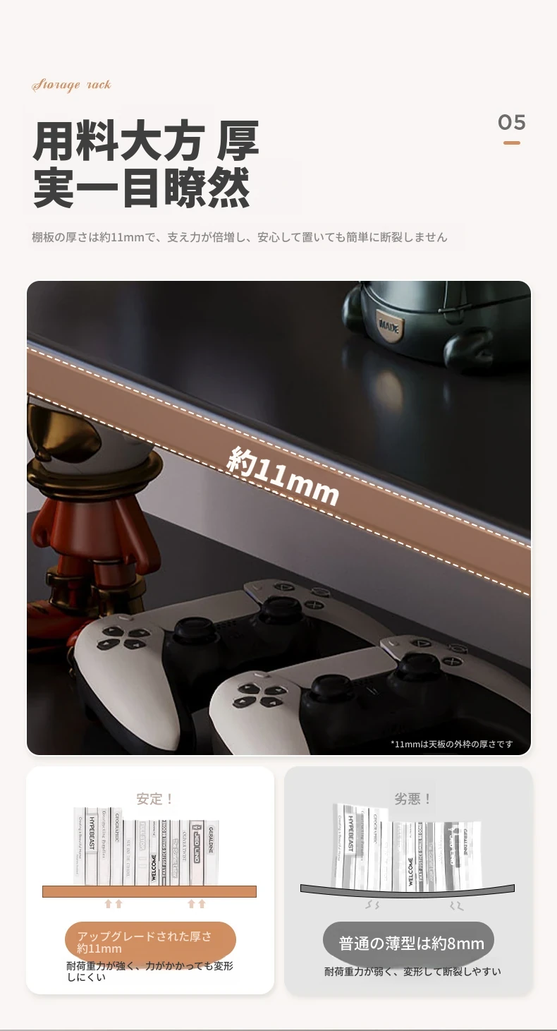 【2段】ナチュラルウッドカラー+アクリル穴あきボード50*20*36(フック+収納ボックス付き)