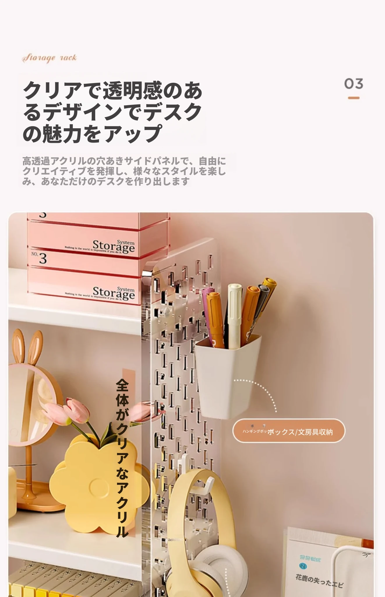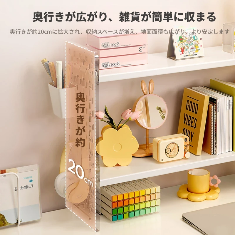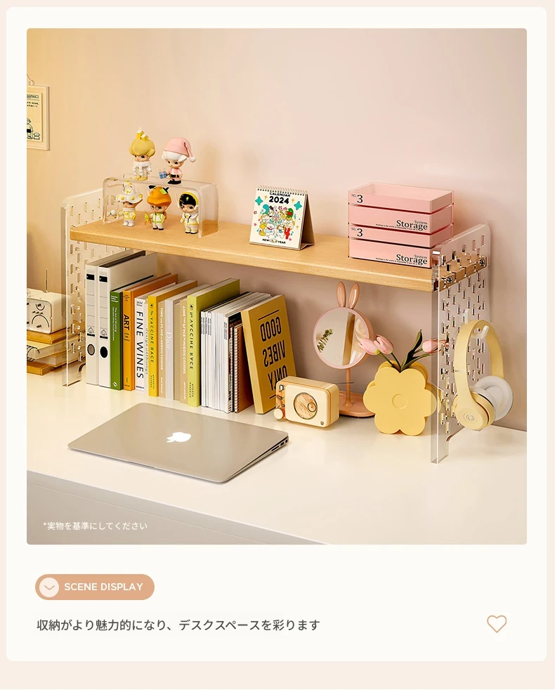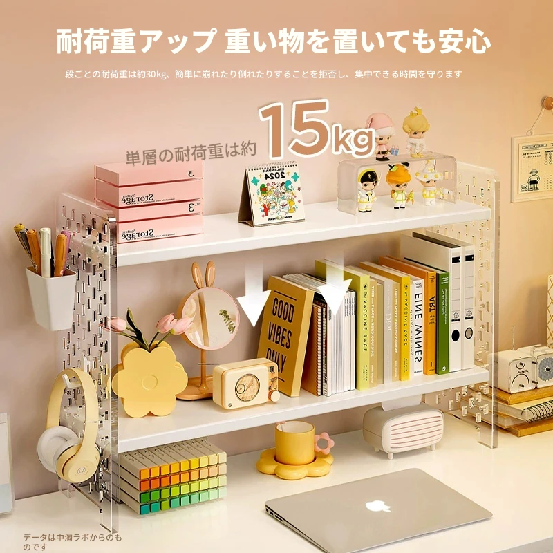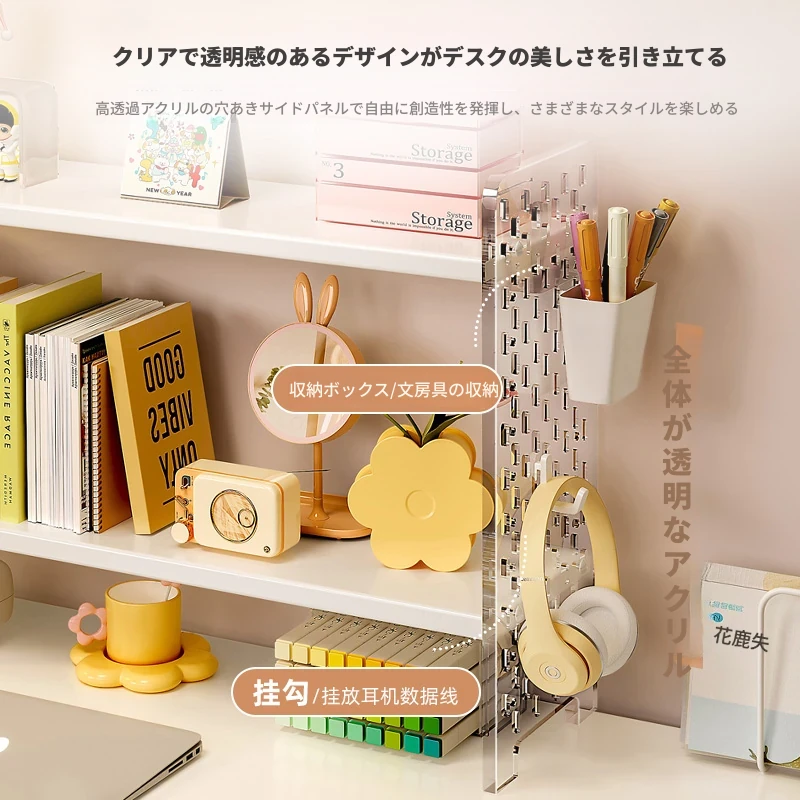 デスク上の便利なアクリルディスプレイスタンド!書籍や文房具を整理整頓できるおしゃれな収納ラック。オフィスや自宅の作業スペースをスッキリと整え、効率的な作業環境を実現します!