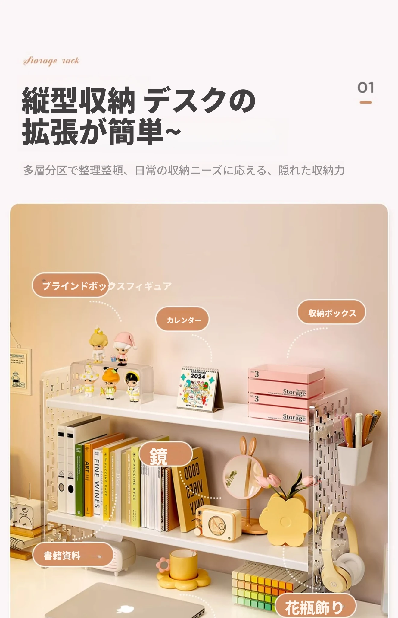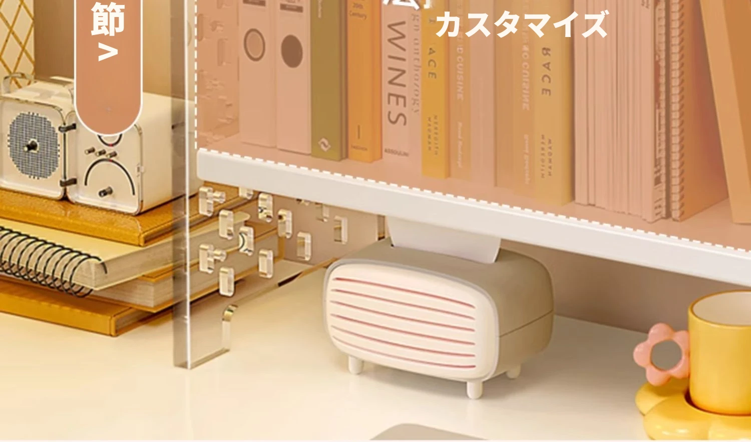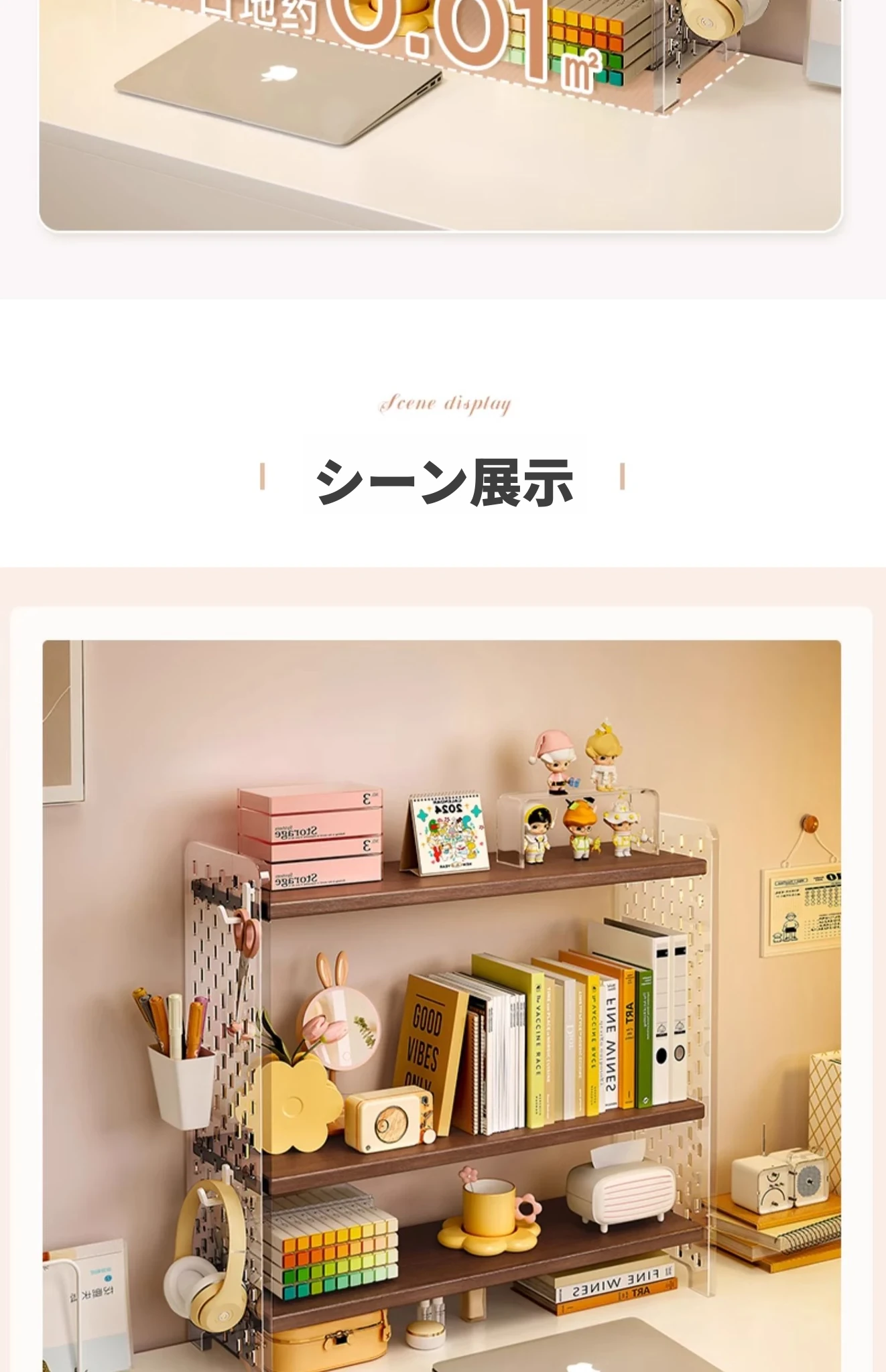 デスク上の便利なアクリルディスプレイスタンド!書籍や文房具を整理整頓できるおしゃれな収納ラック。オフィスや自宅の作業スペースをスッキリと整え、効率的な作業環境を実現します!