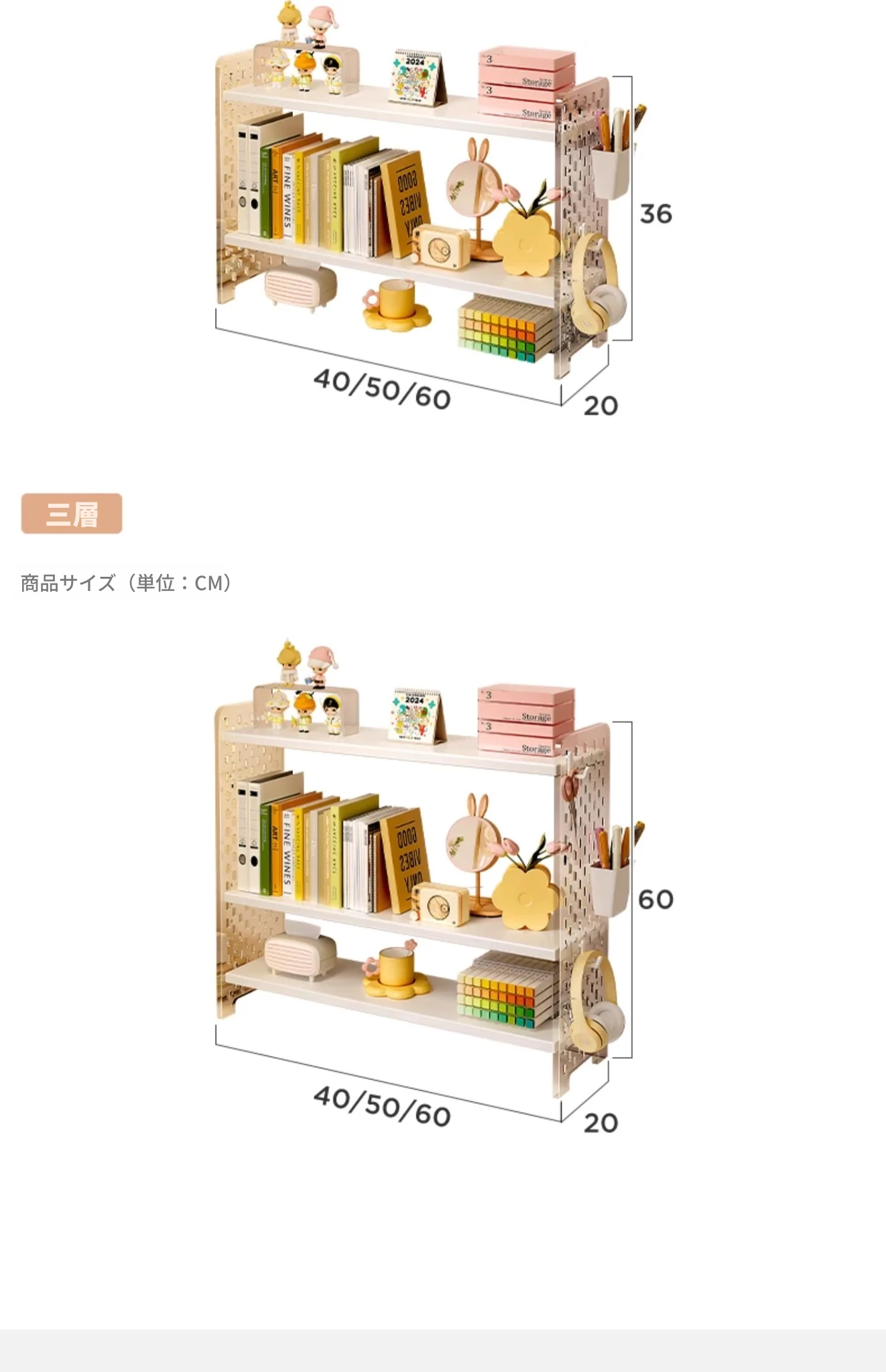 【3段】ウォームホワイト+アクリルドリルボード40*20*60(フック+収納ボックス付属)